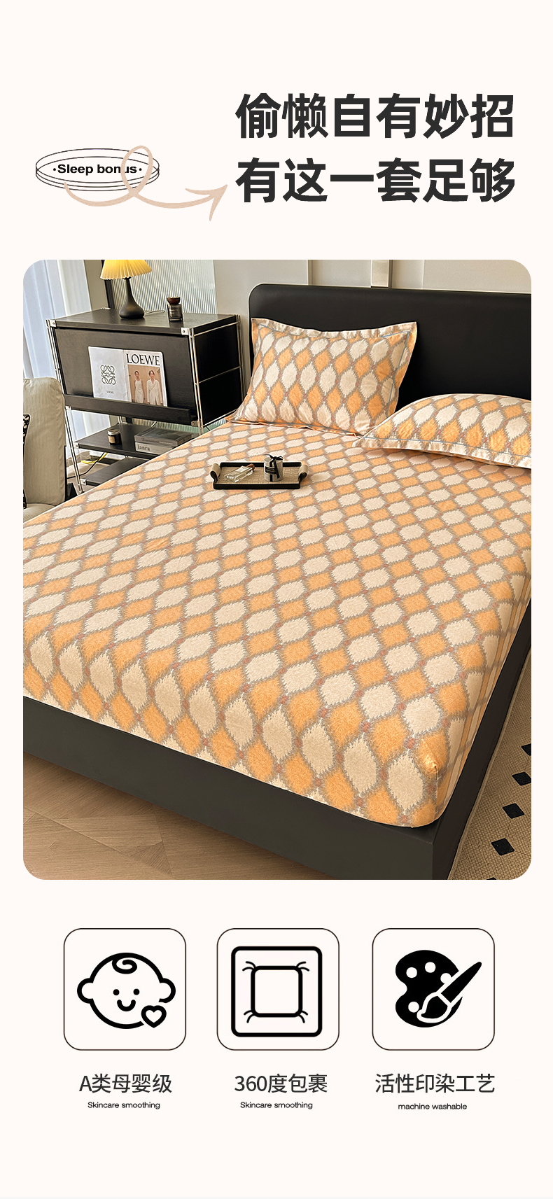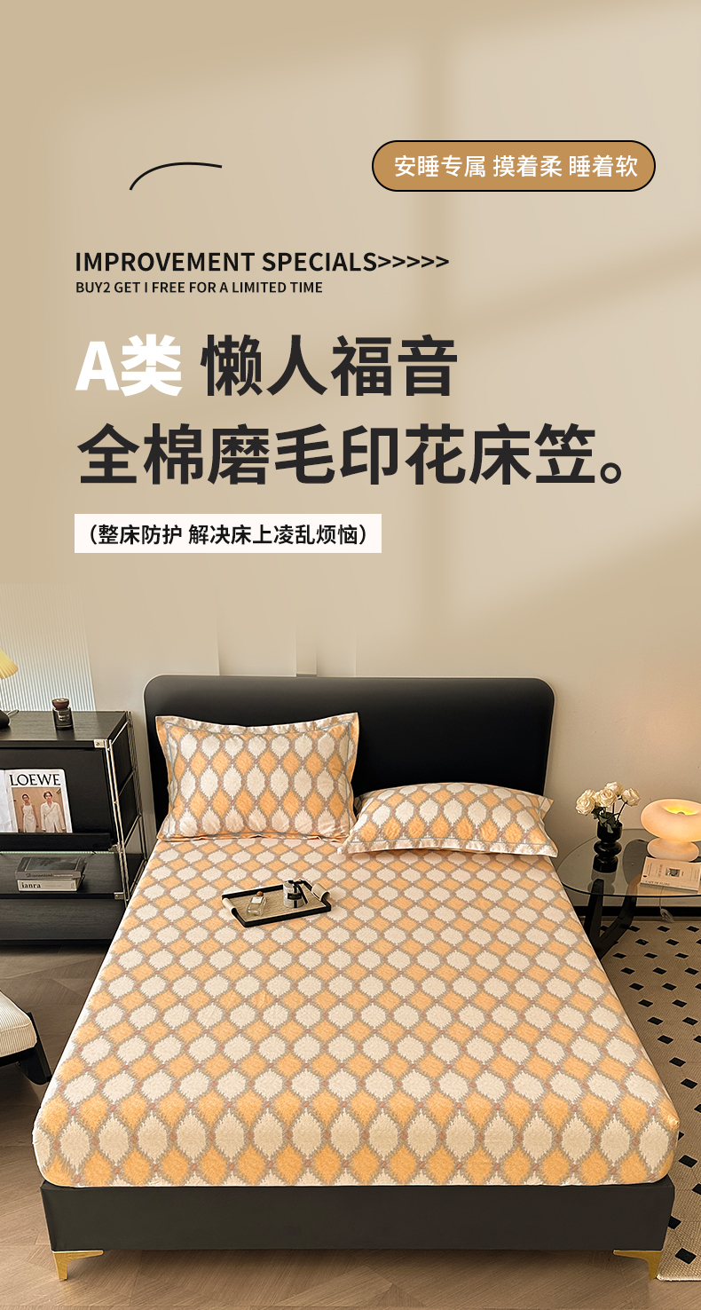 商品名称:大柏树 2025新款A类全棉磨毛印花单床笠 追光