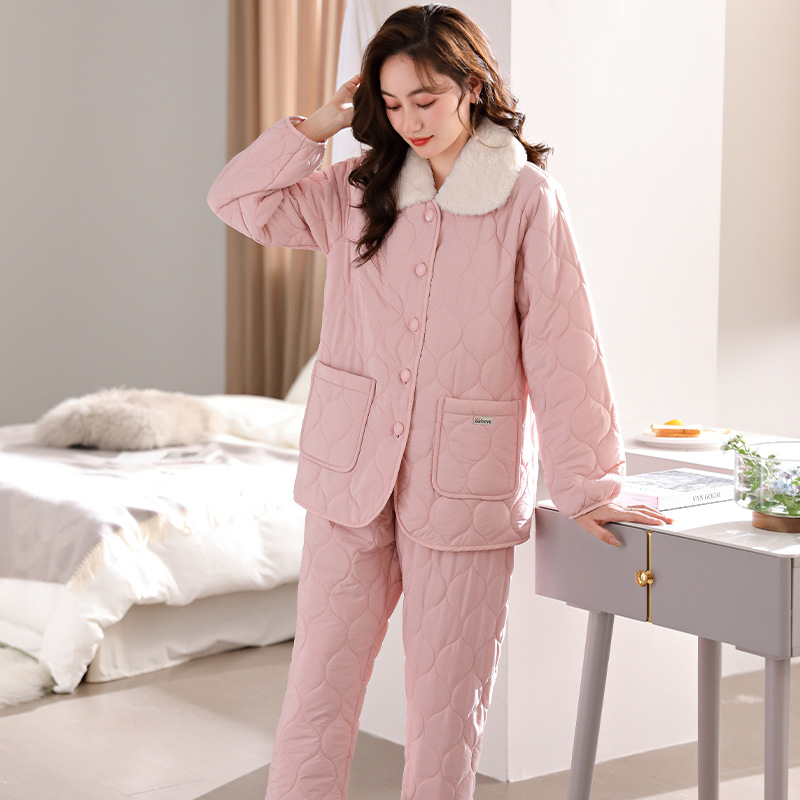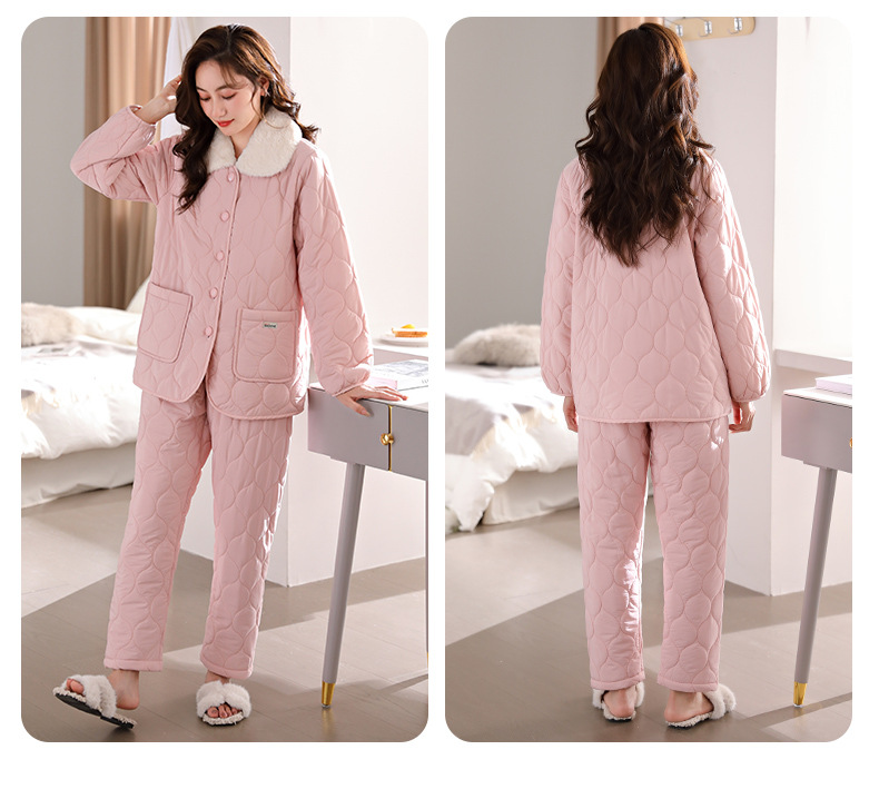 商品名称:(总)洛兰沙家居馆 2024新款秋冬季三层夹棉加厚加绒睡衣女士法兰绒套装珊瑚绒家居服一件代发