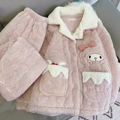 洛兰沙家居馆 2024新款公主风女秋冬季三层夹棉珊瑚绒加厚保暖两件套女士可外穿加绒家居服 L09