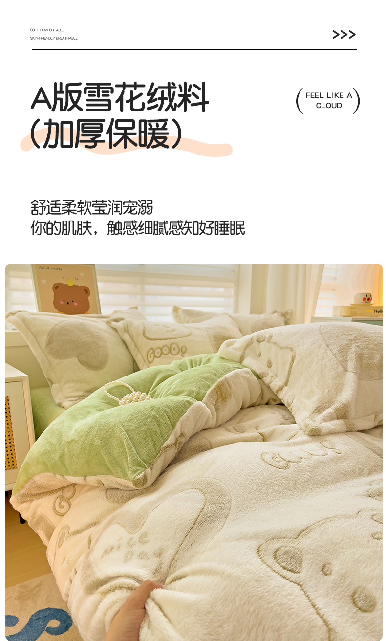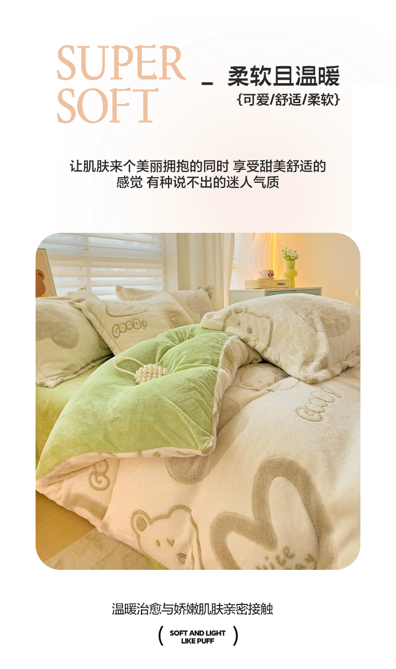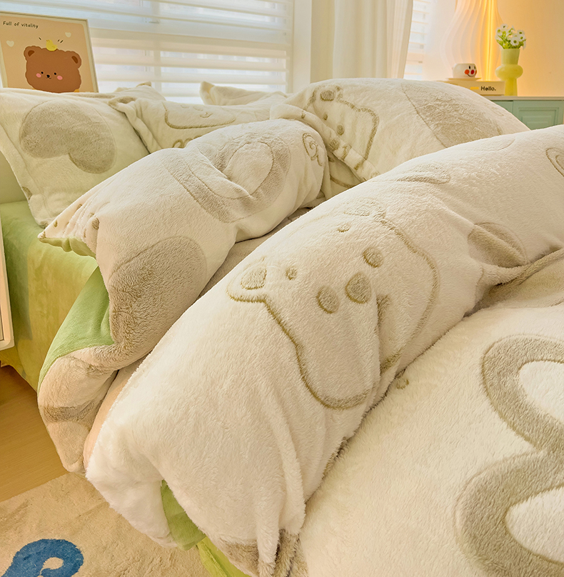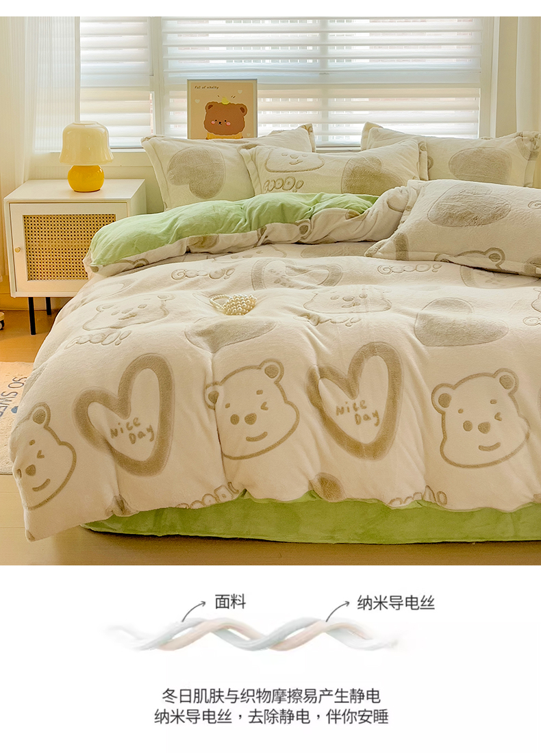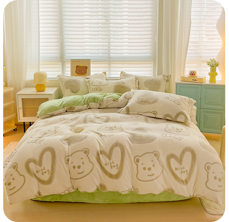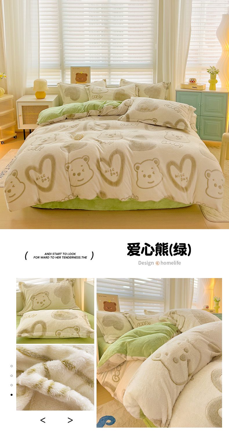 当前位置: 91家纺网 > 商品网购 > 床品套件 > 四件套 > 其它四件套 > 2024新款加厚雪花绒印花四件套-风格二(提供卖家秀) 爱心熊(绿)