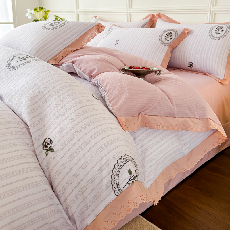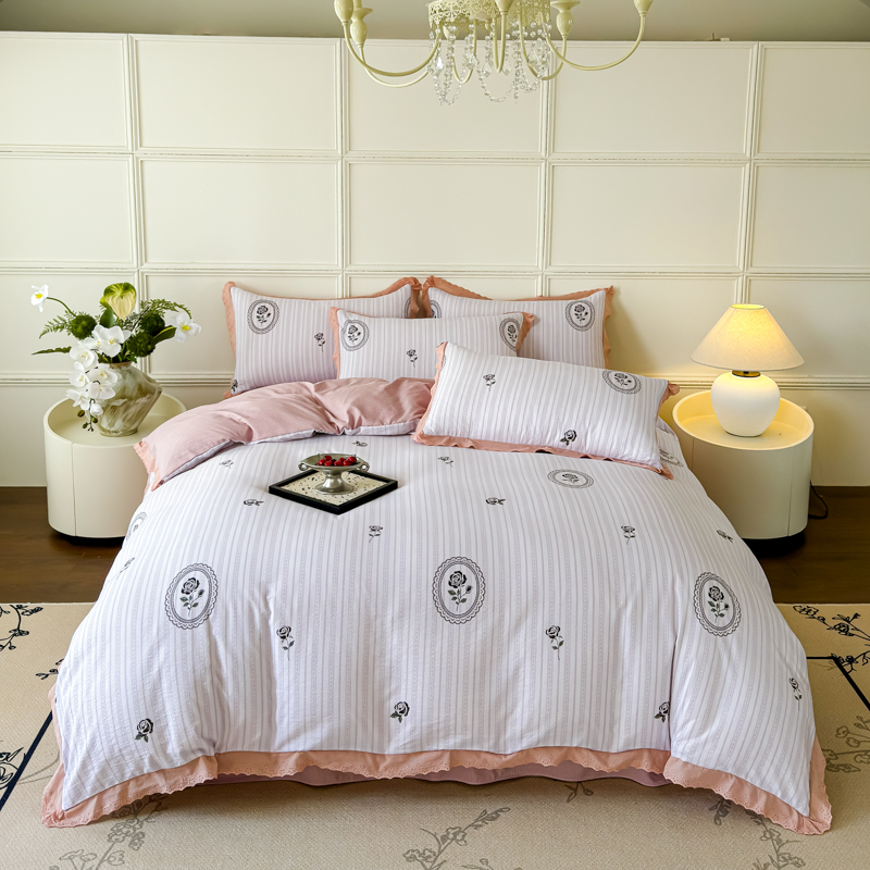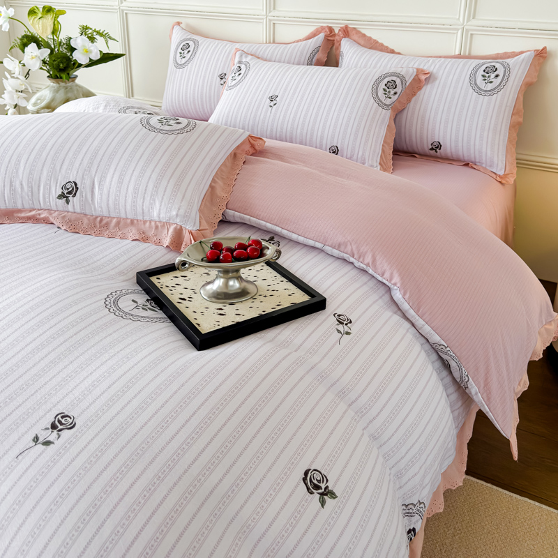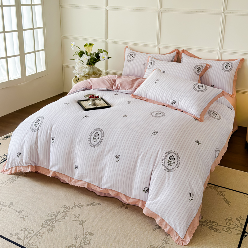 可思家纺 2024新款韩版花边木棉皱皱纱四件套系列 木棉-赫本花园