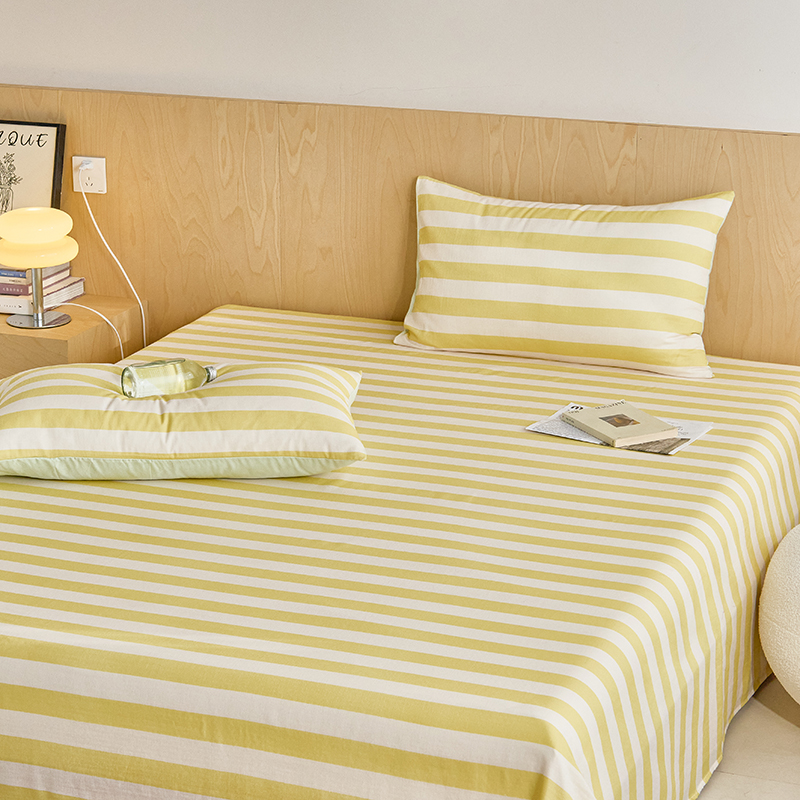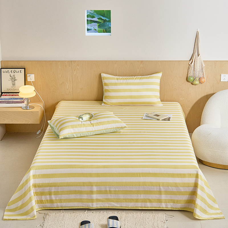 8小时家纺 2024新款40s双层纱单品四件套系列-床单 条纹奶黄