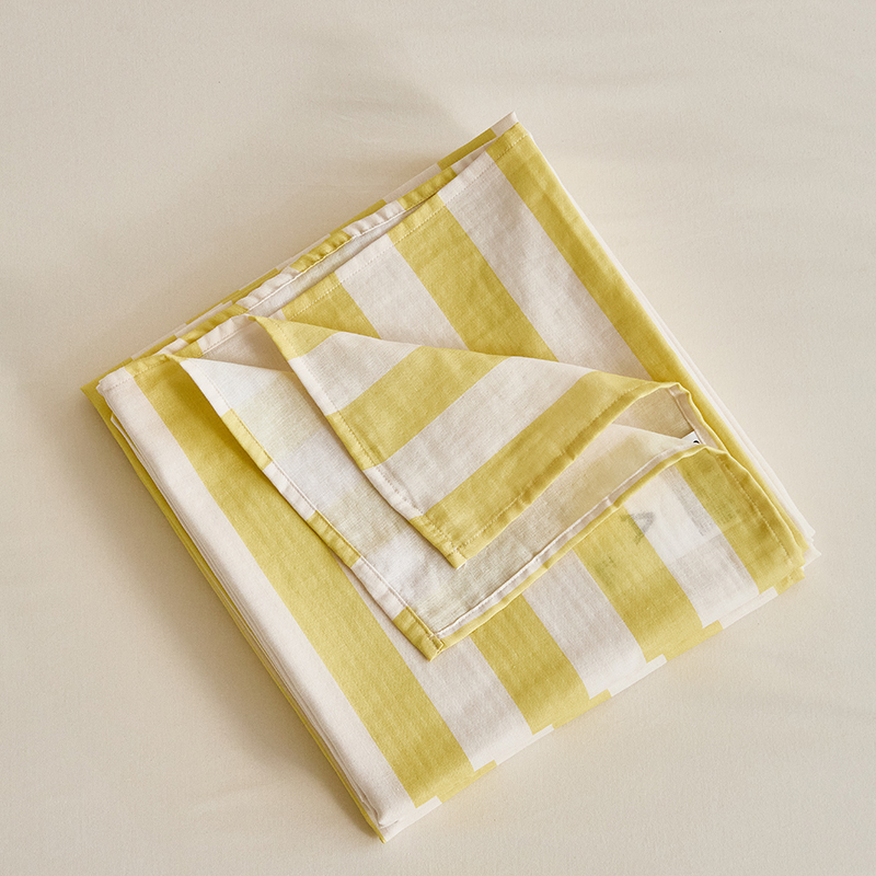 商品名称:8小时家纺 2024新款40s双层纱单品四件套系列-床单 条纹奶黄