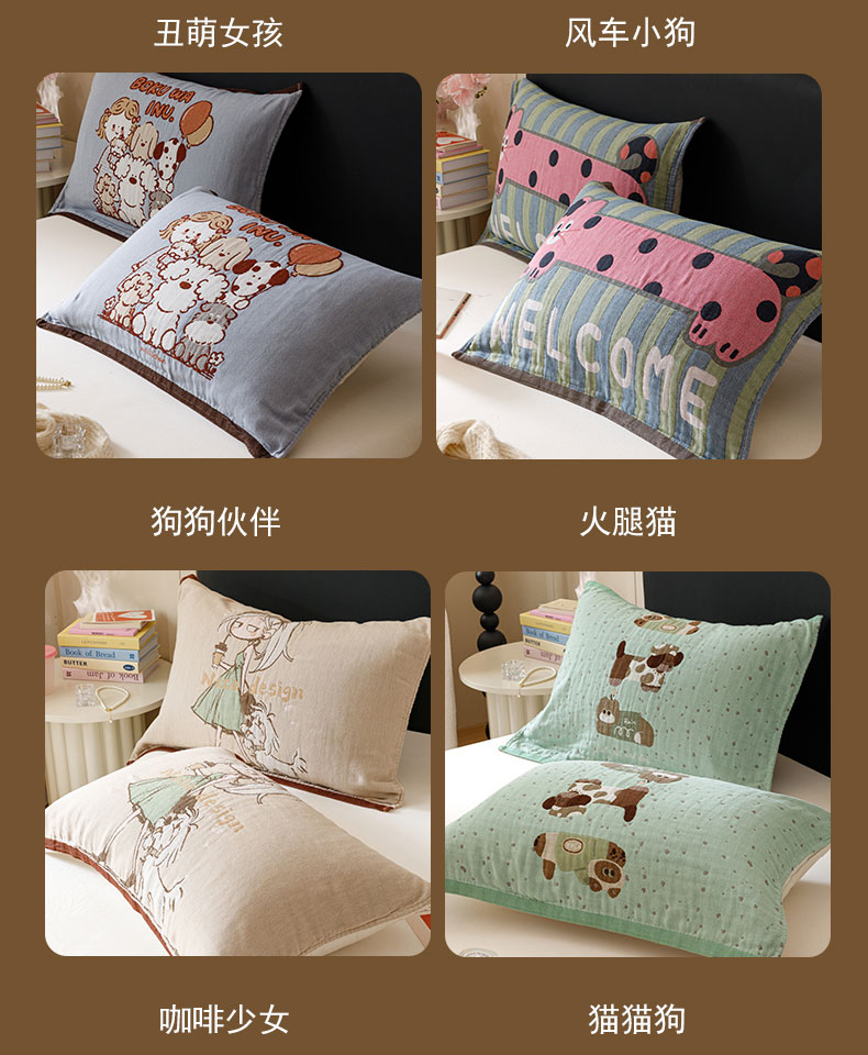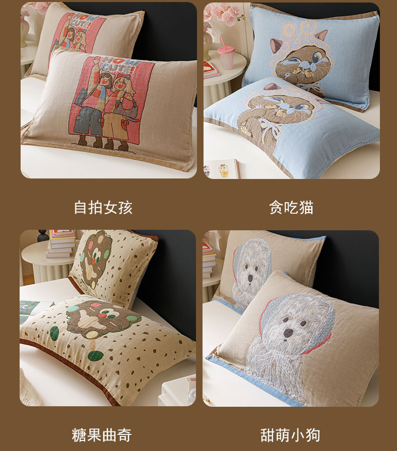 (总)麻依 2025新款治愈风全棉纯棉四层纱布枕巾,组合图仅供展示不可下单,KT时光,抱枕小熊,粉星KT,好多狗,花丛KT,可可小猫,亮晶晶,满心KT,暖心小狗,贴布猫,星星KT,星星人
