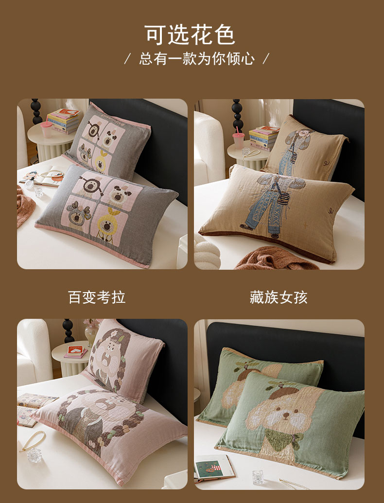 (总)麻依 2025新款安心棉枕巾四层全棉纱布枕头皮,布朗兔,彩虹点点,点点蝴蝶结-粉,点点蝴蝶结-米白,搞怪猫,韩系小樱桃,焦糖草莓,兰溪,漫语,木栖,天猫精灵,小波点,组合图
