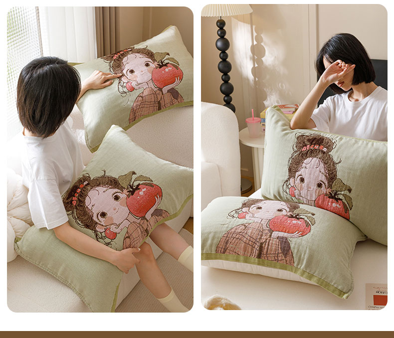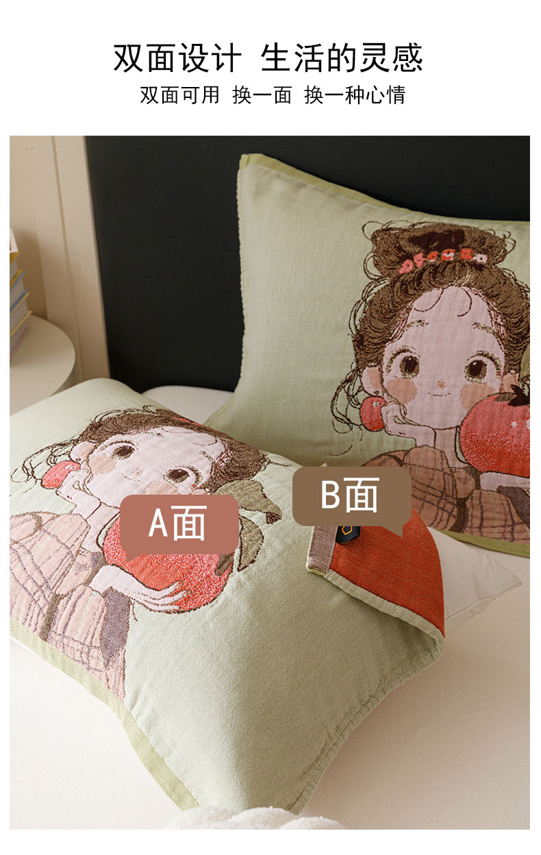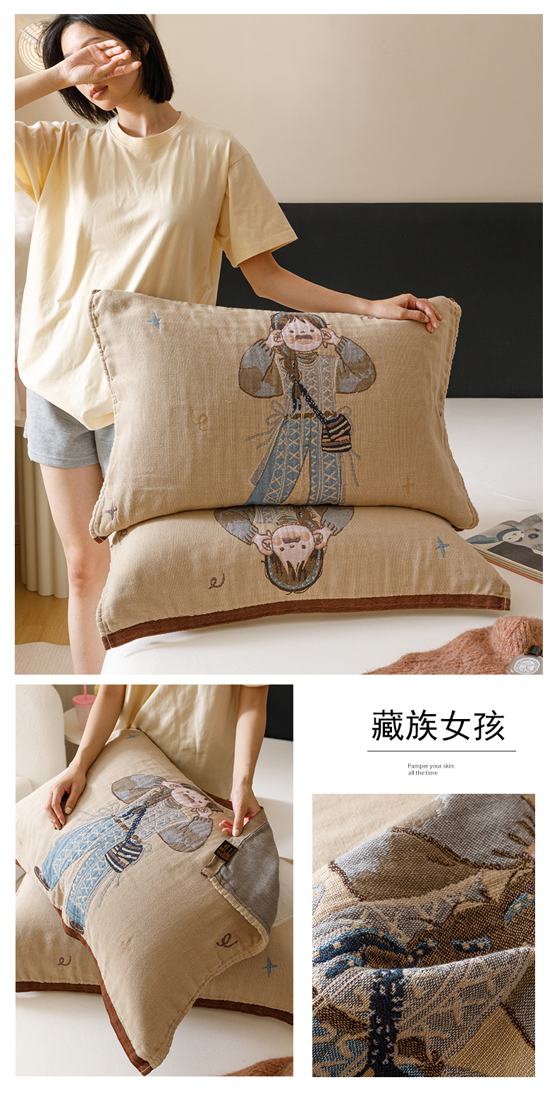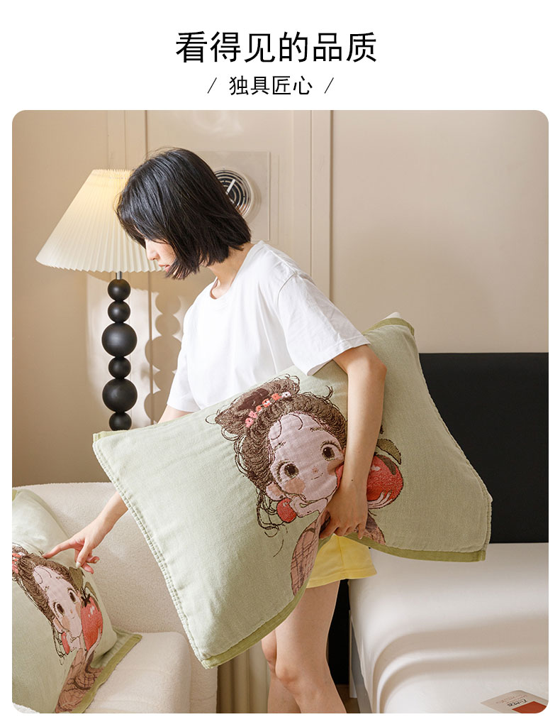当前位置: 91家纺网 > 商品网购 > 床上用品 > 枕巾 > 麻依 2024新款纯棉纱布枕巾一对装全棉四层纱布54*78cm/对 柿子女孩