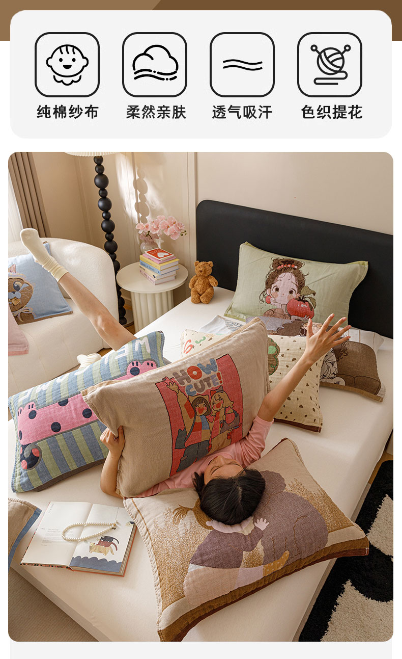 (总)麻依 2025新款安心棉枕套四层纱布枕套,组合图仅供展示不可下单,彩虹点点,点点蝴蝶结-白,点点蝴蝶结-粉,搞怪猫,韩系小樱桃,焦糖草莓,兰溪,漫语,梅屿-绿,梅屿-驼,木栖,小波点,伊慕,樱桃红了