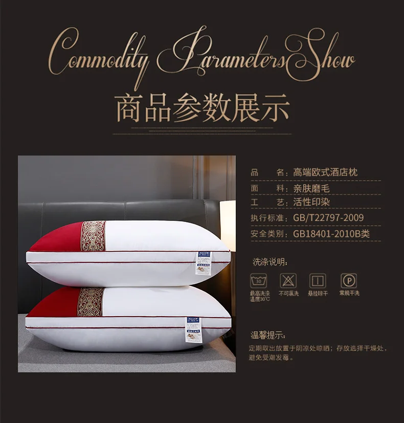 当前位置: 91家纺网 > 商品网购 > 枕头/枕芯/保健枕/颈椎枕 > 普通枕芯 > 佳尚枕芯 2025新款高端欧式酒店枕立体拼色刺绣羽丝绒酒店枕芯枕头 欧式酒红48x74cm高枕