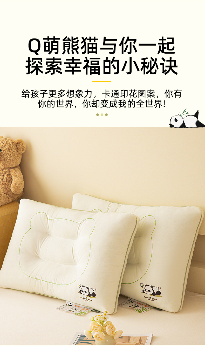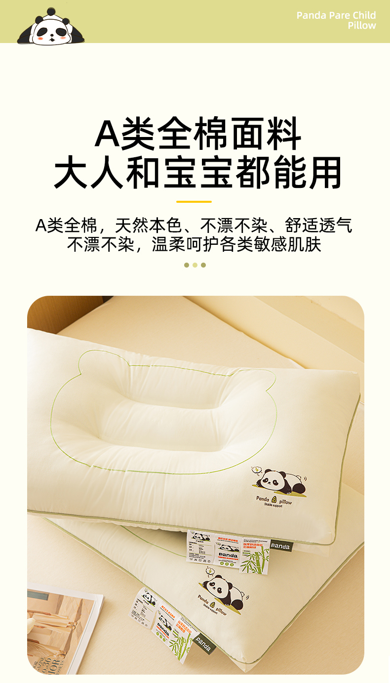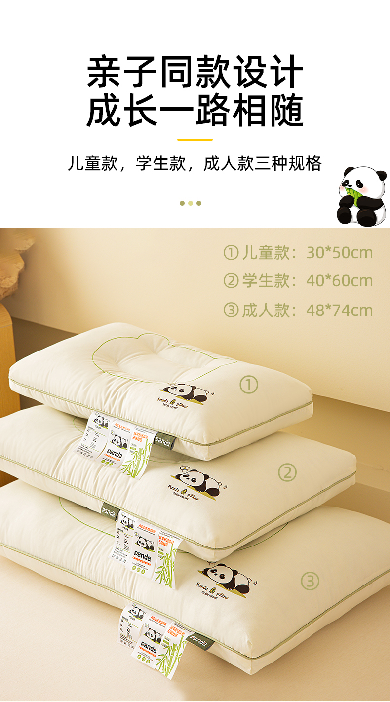 商品名称:(总)织布人 2024新款枕芯全棉A类熊猫亲子护颈枕儿童学生成人家用枕头枕芯