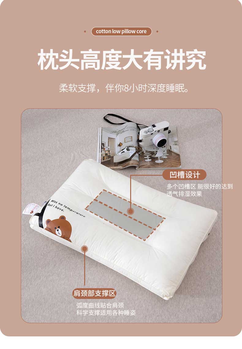 当前位置: 91家纺网 > 商品网购 > 枕头/枕芯/保健枕/颈椎枕 > 普通枕芯 > 佳尚枕芯 2025新款枕芯 A类无荧光全棉A+熊儿童酒店低枕头枕芯 全棉小熊成人款 48x74cm/只
