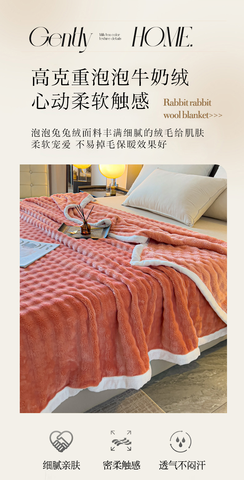 (总)慕克斯家纺 2024新款泡泡毯兔毛绒牛奶绒毛毯兔兔绒毛毯毯子