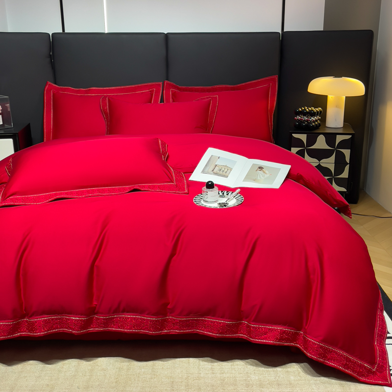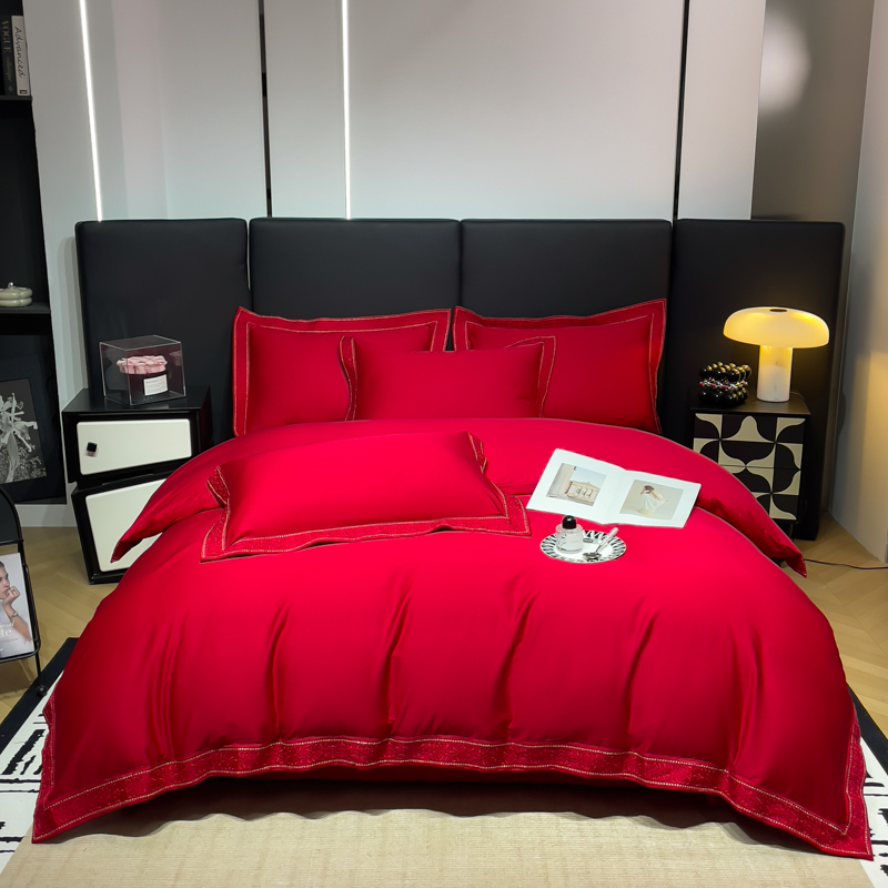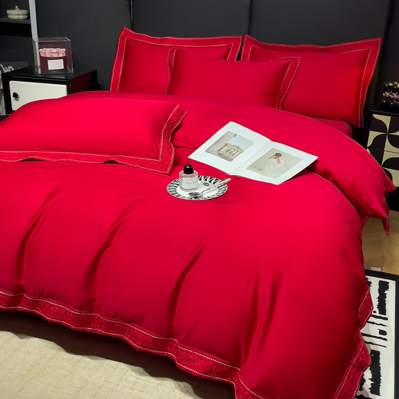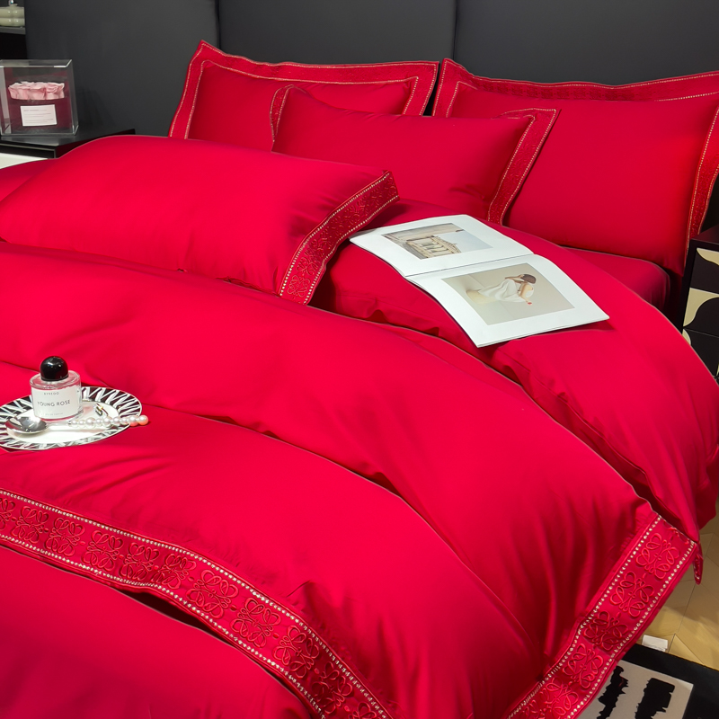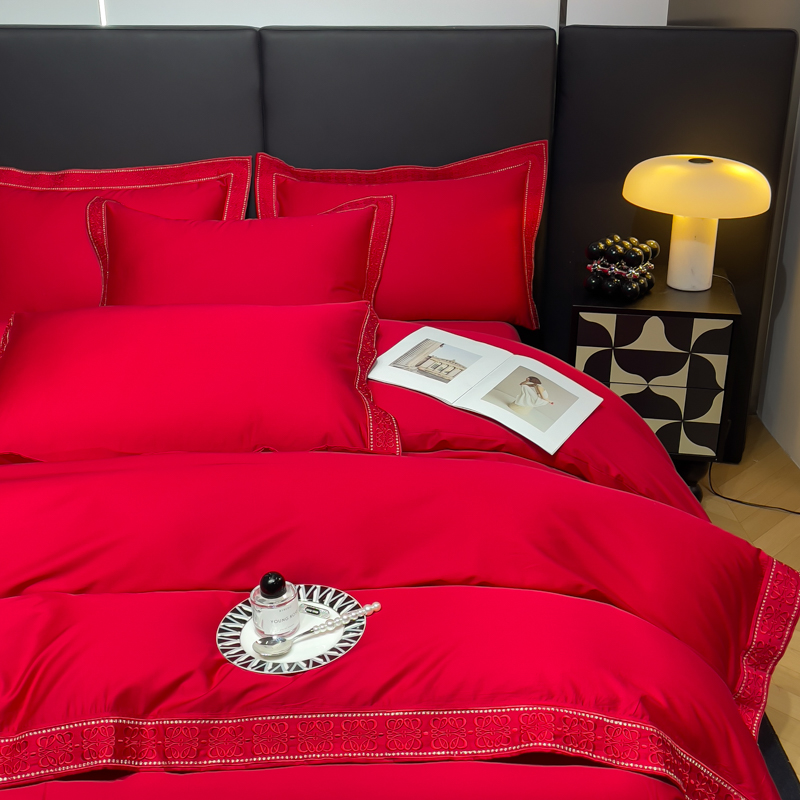 梧桐家居 2024新款50双股100支罗意威系列四件套 罗意威-大红