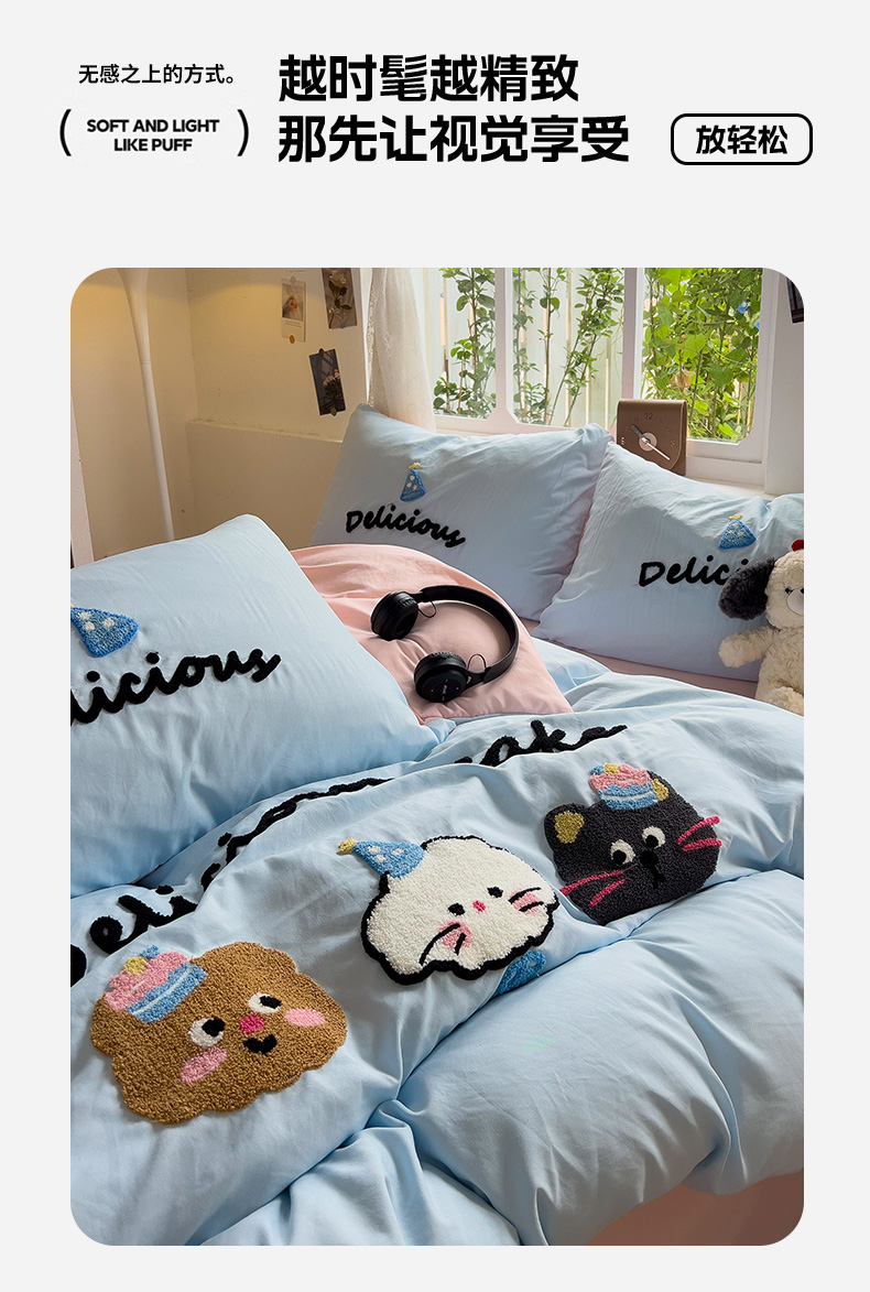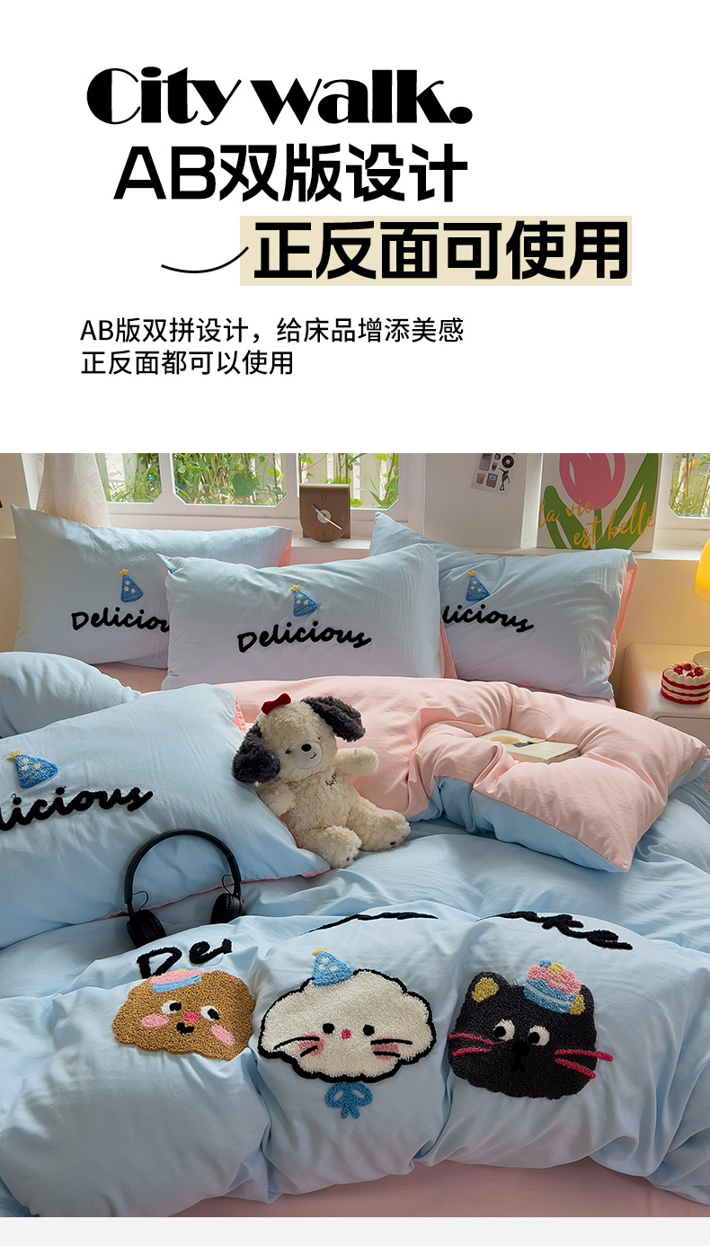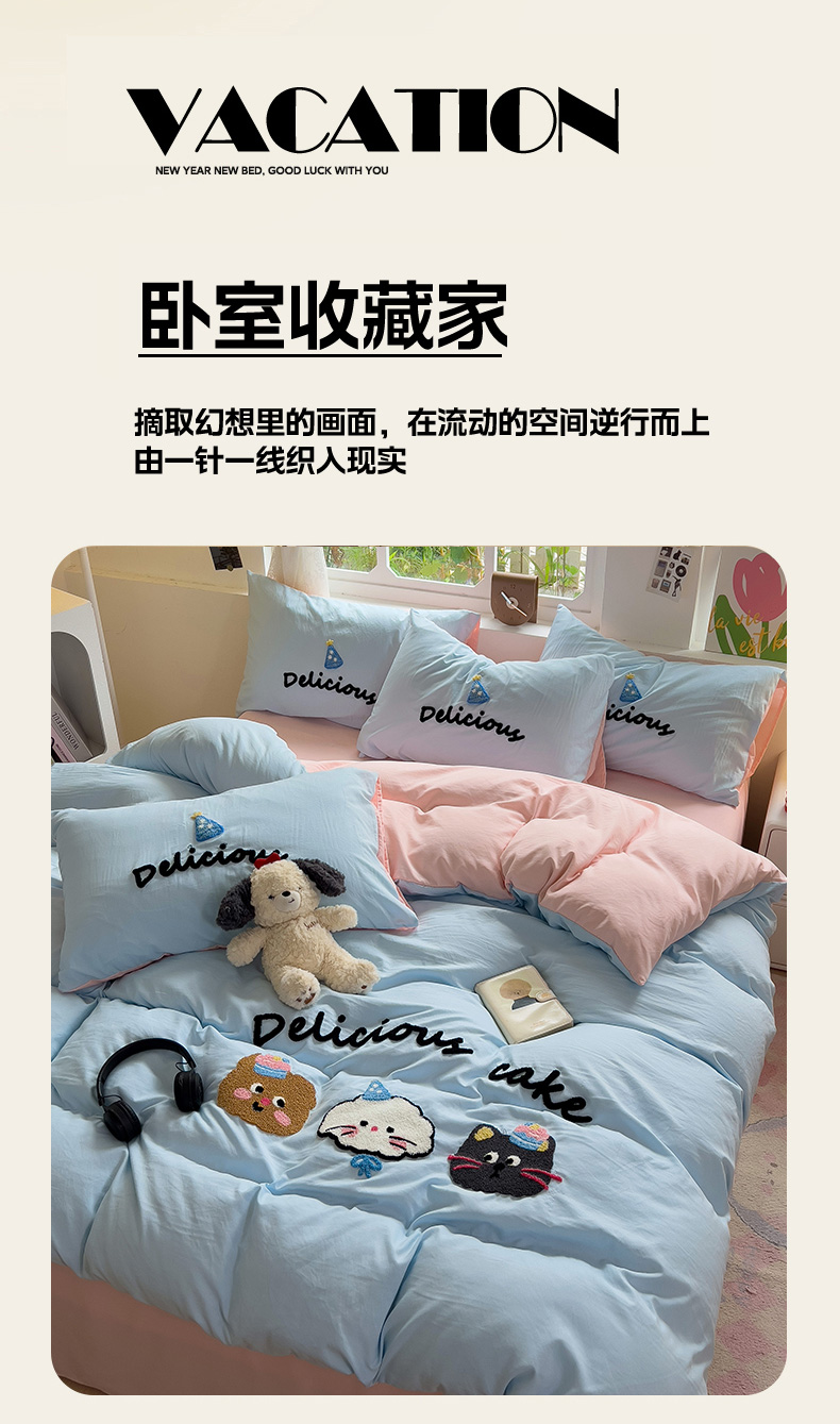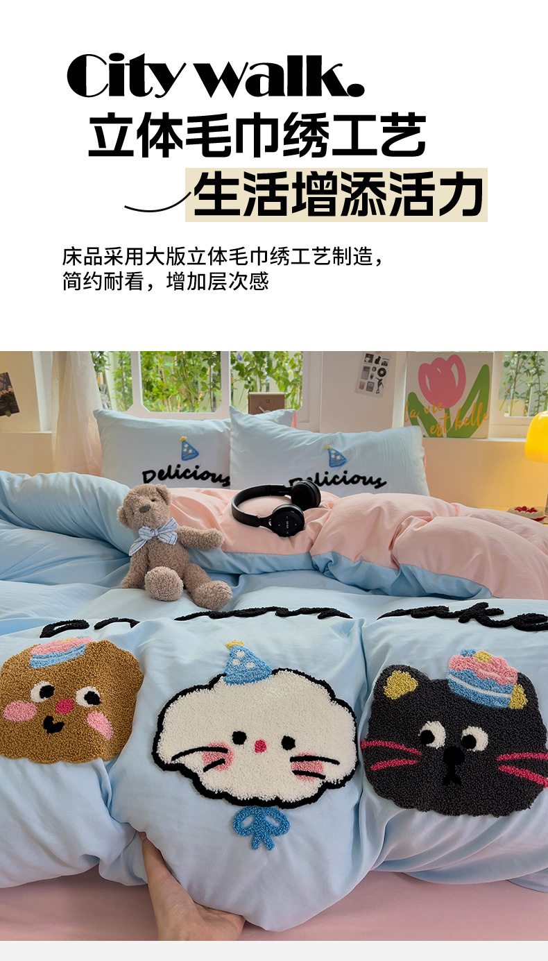 当前位置: 91家纺网 > 商品网购 > 床品套件 > 四件套 > 水洗棉四件套 > 眠帛家居 2024新款加厚磨毛水洗棉毛巾绣加印大版卡通四件套 花花