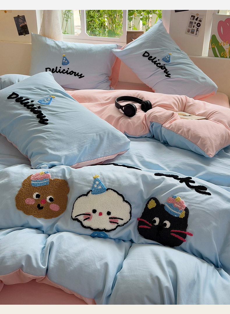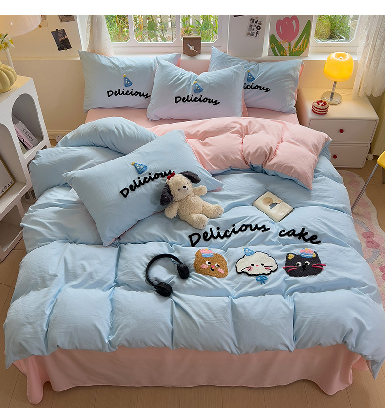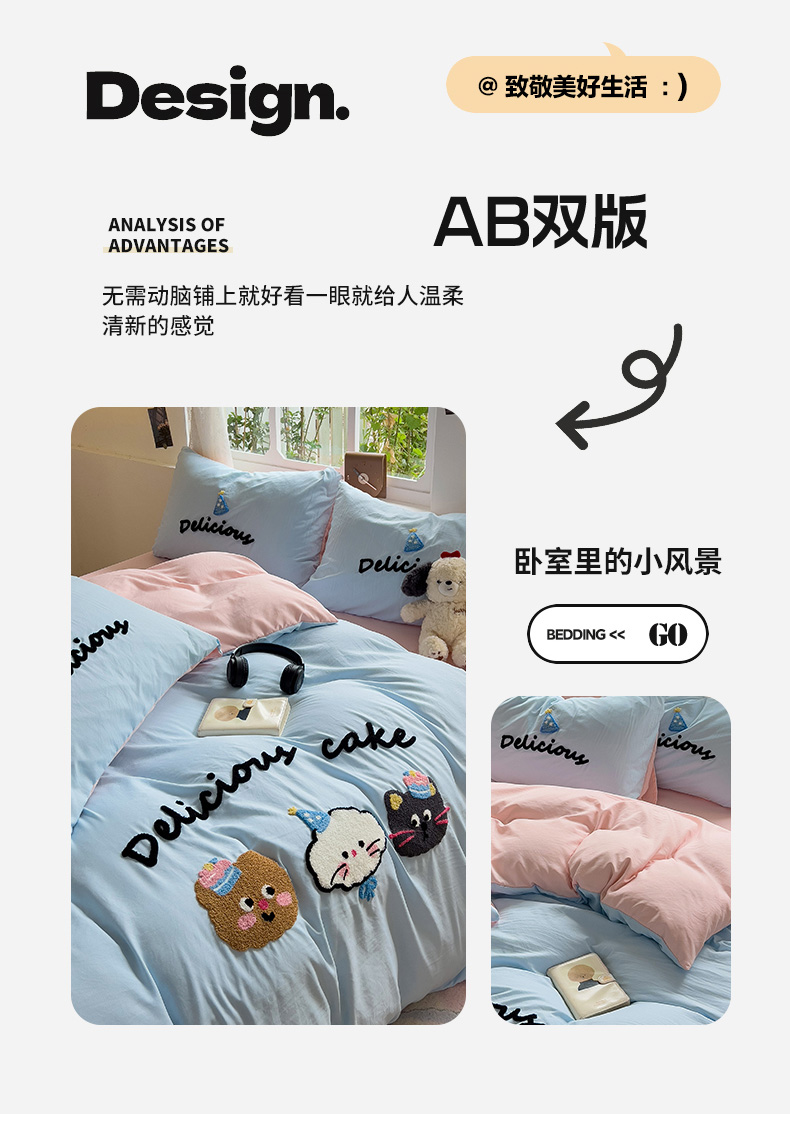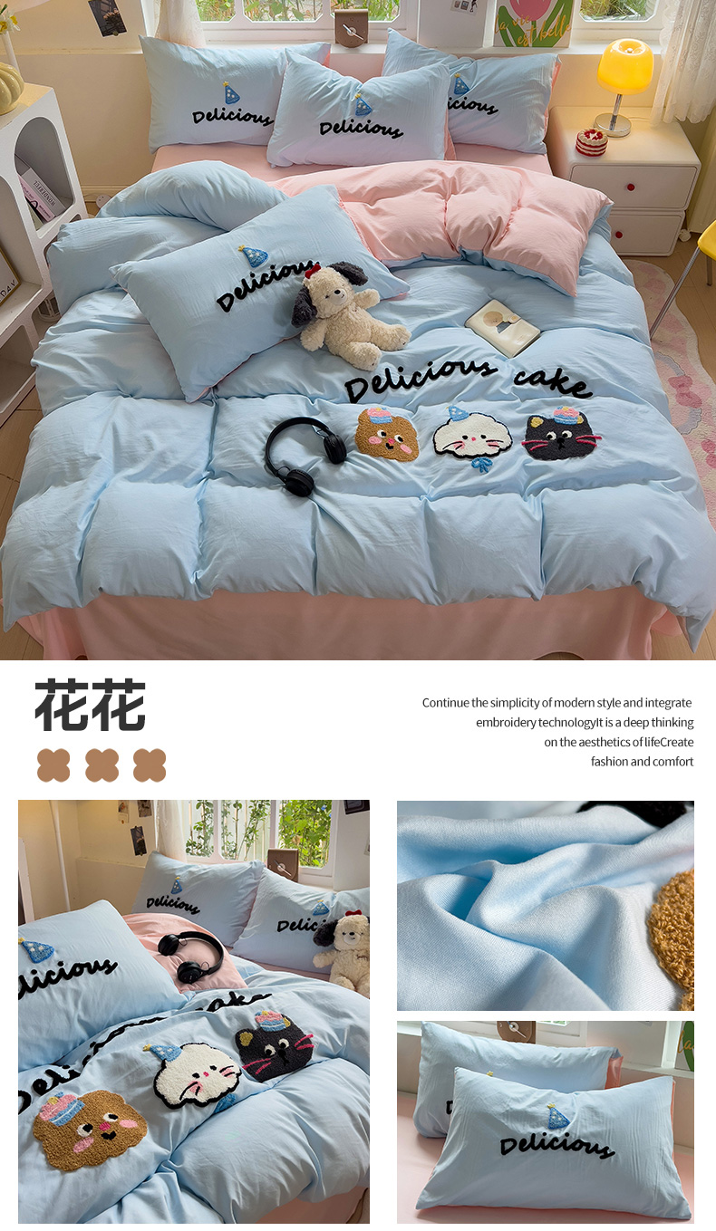 当前位置: 91家纺网 > 商品网购 > 床品套件 > 四件套 > 水洗棉四件套 > 眠帛家居 2024新款加厚磨毛水洗棉毛巾绣加印大版卡通四件套 花花