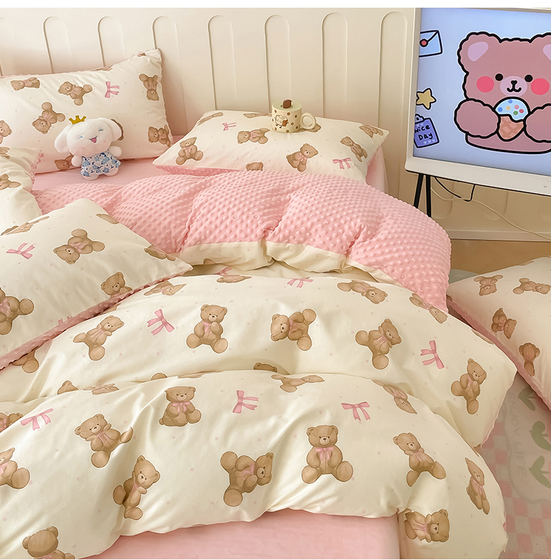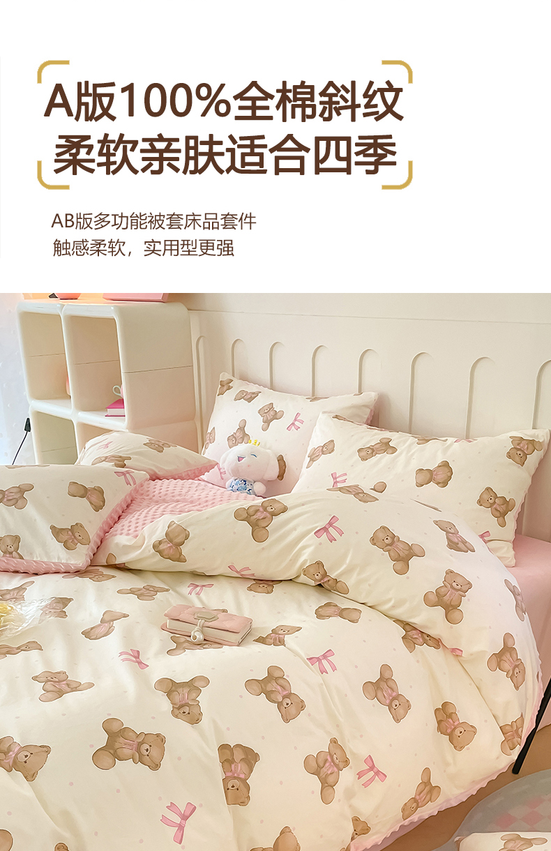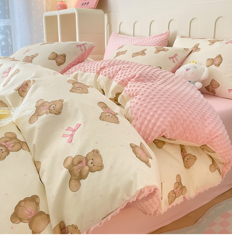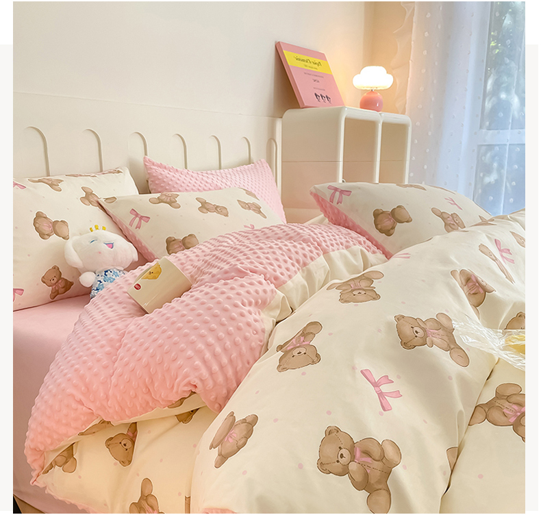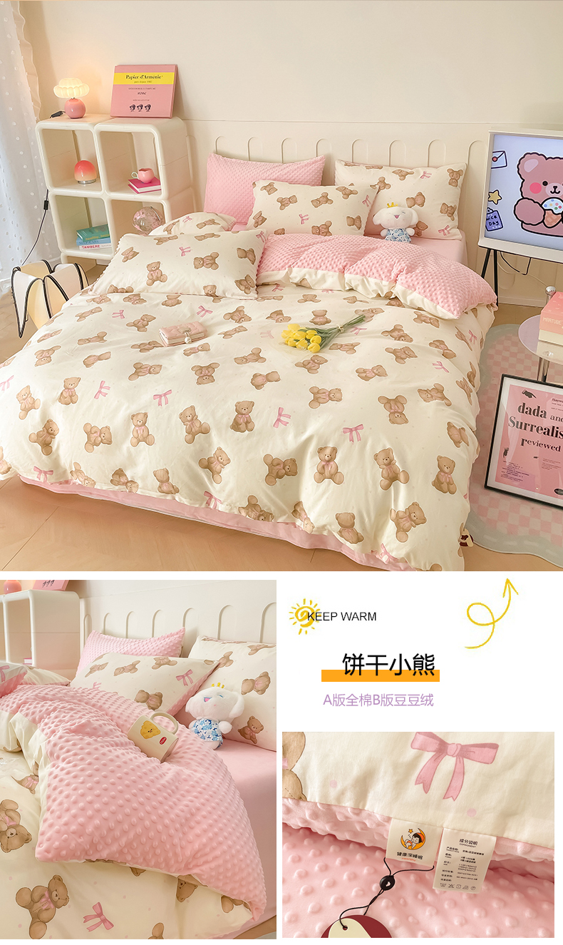 当前位置: 91家纺网 > 商品网购 > 床品套件 > 四件套 > 其它四件套 > 麦伦家居 2024秋冬新品 多功能床品全棉+豆豆绒四件套卡通小清新系列 饼干小熊粉