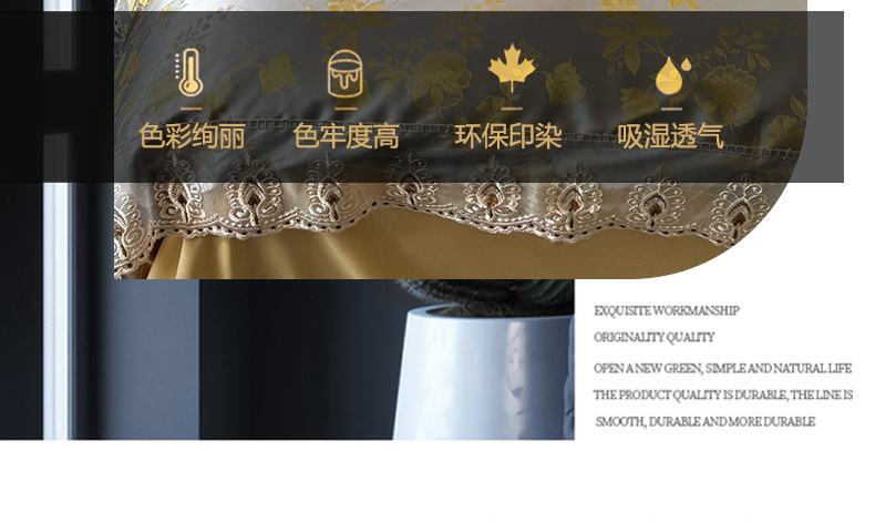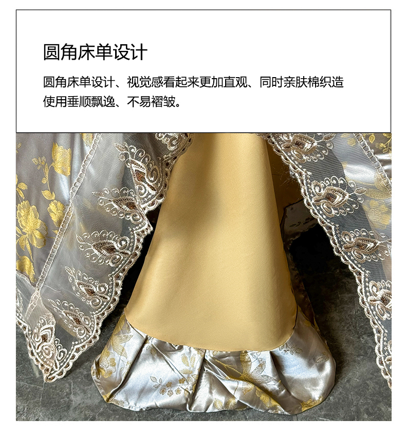商品名称:七夜居 2025新款蕾丝花边欧式贡缎提花四件套礼盒装 花漾-黄
