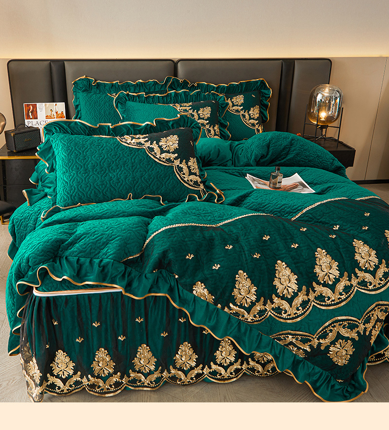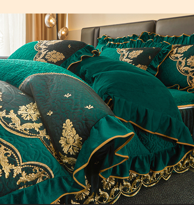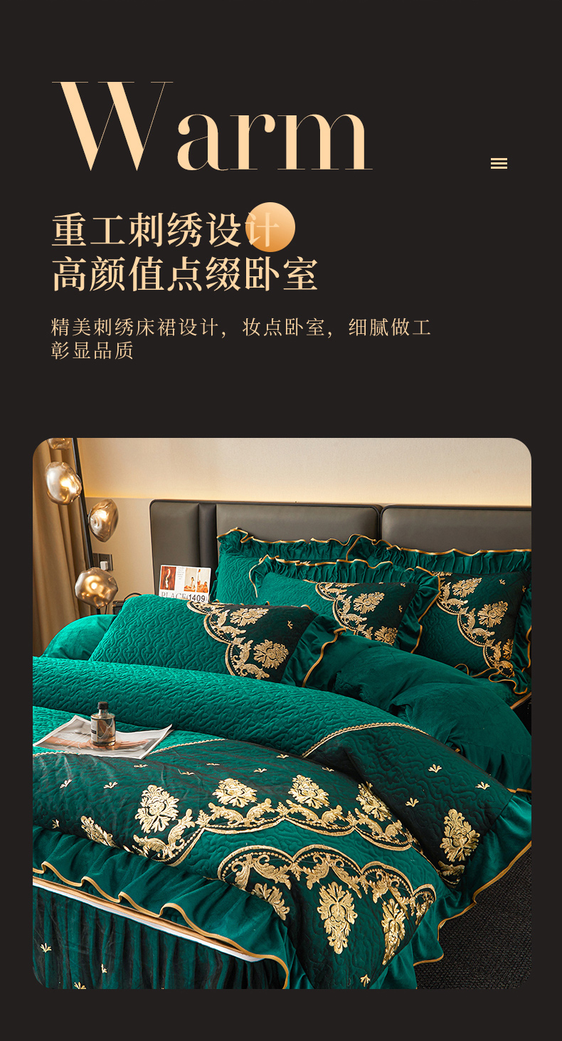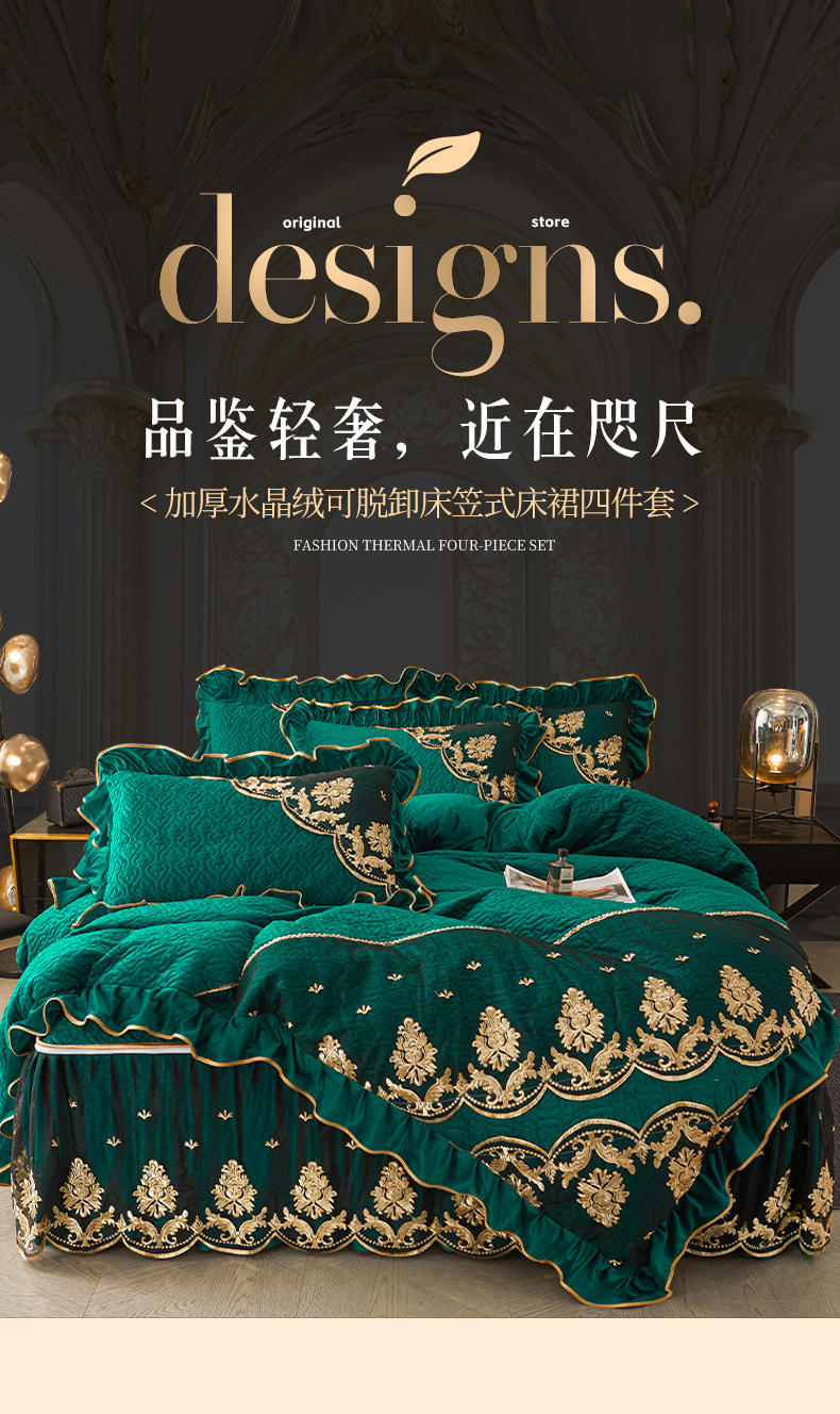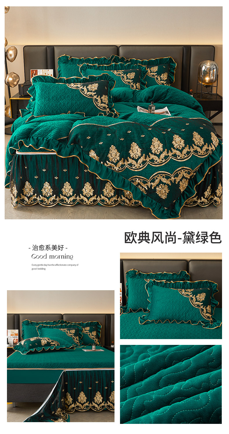 当前位置: 91家纺网 > 商品网购 > 床品套件 > 四件套 > 水晶绒四件套 > 罗艺轩 2024新款高克重水晶绒夹棉床裙四件套-欧典风尚 欧典风尚-黛绿色