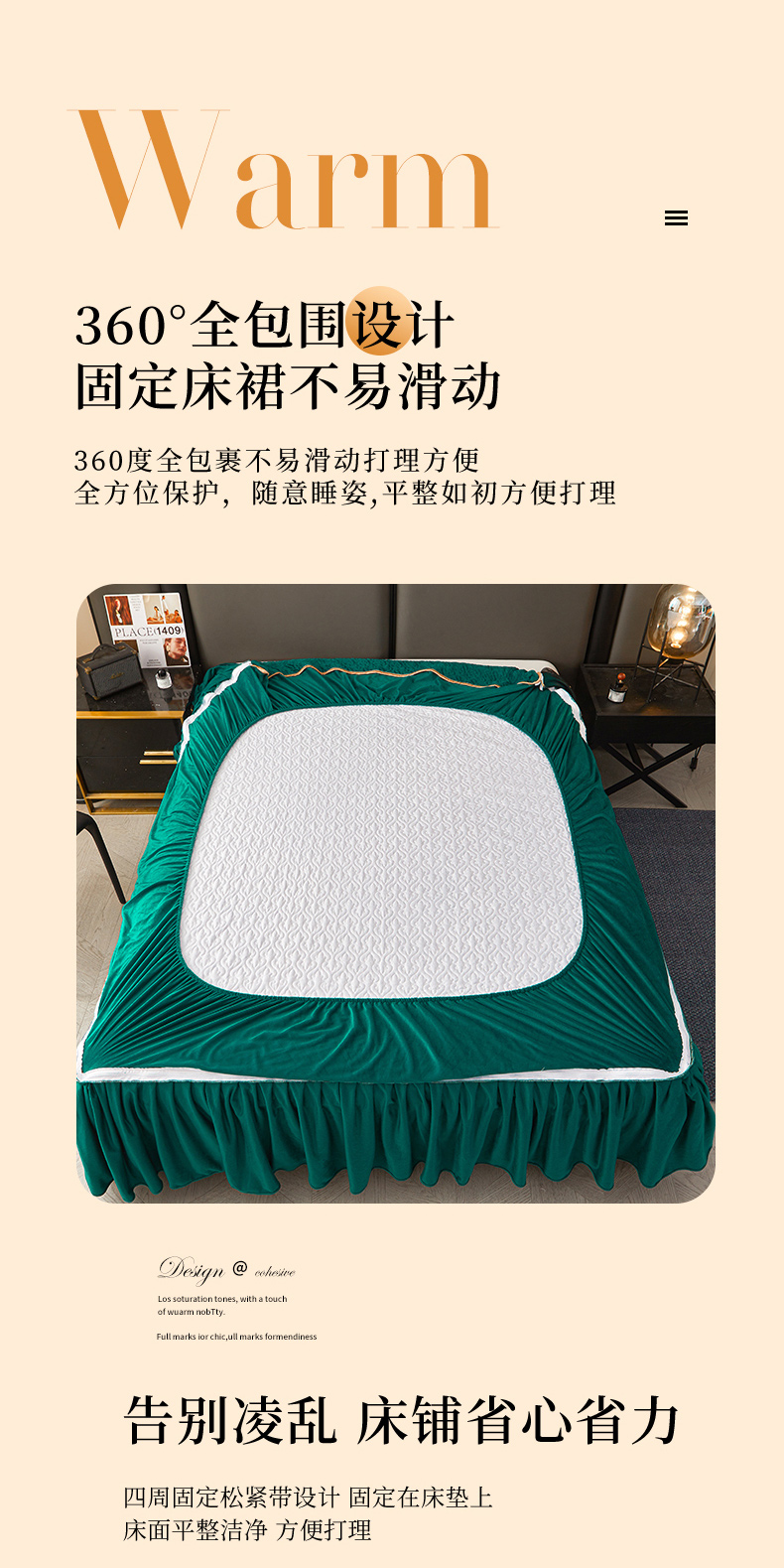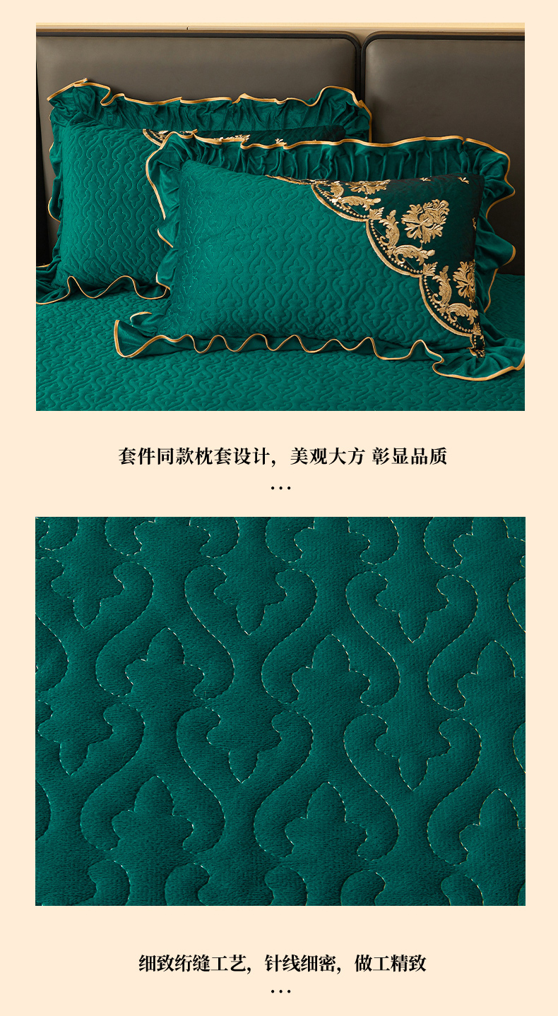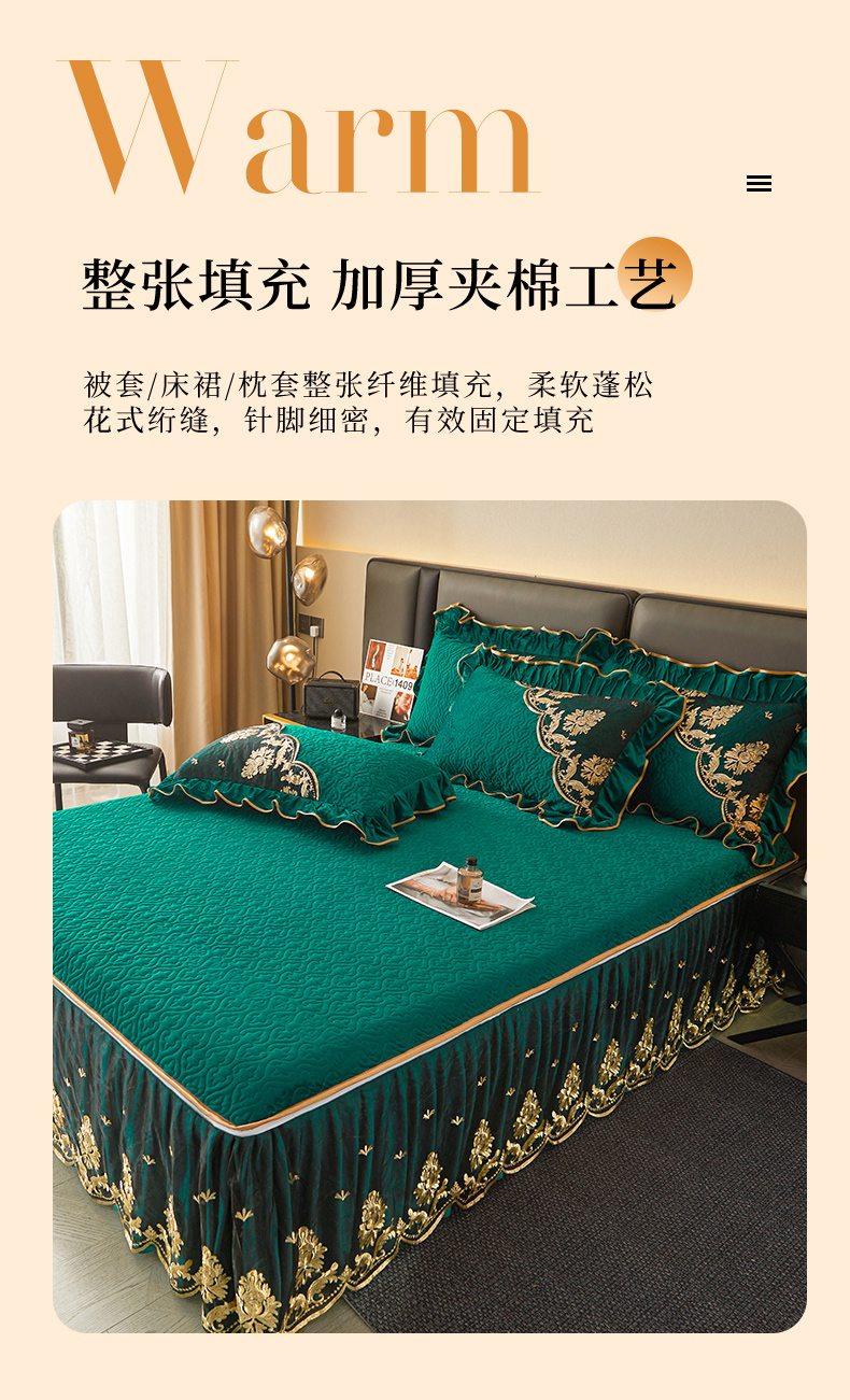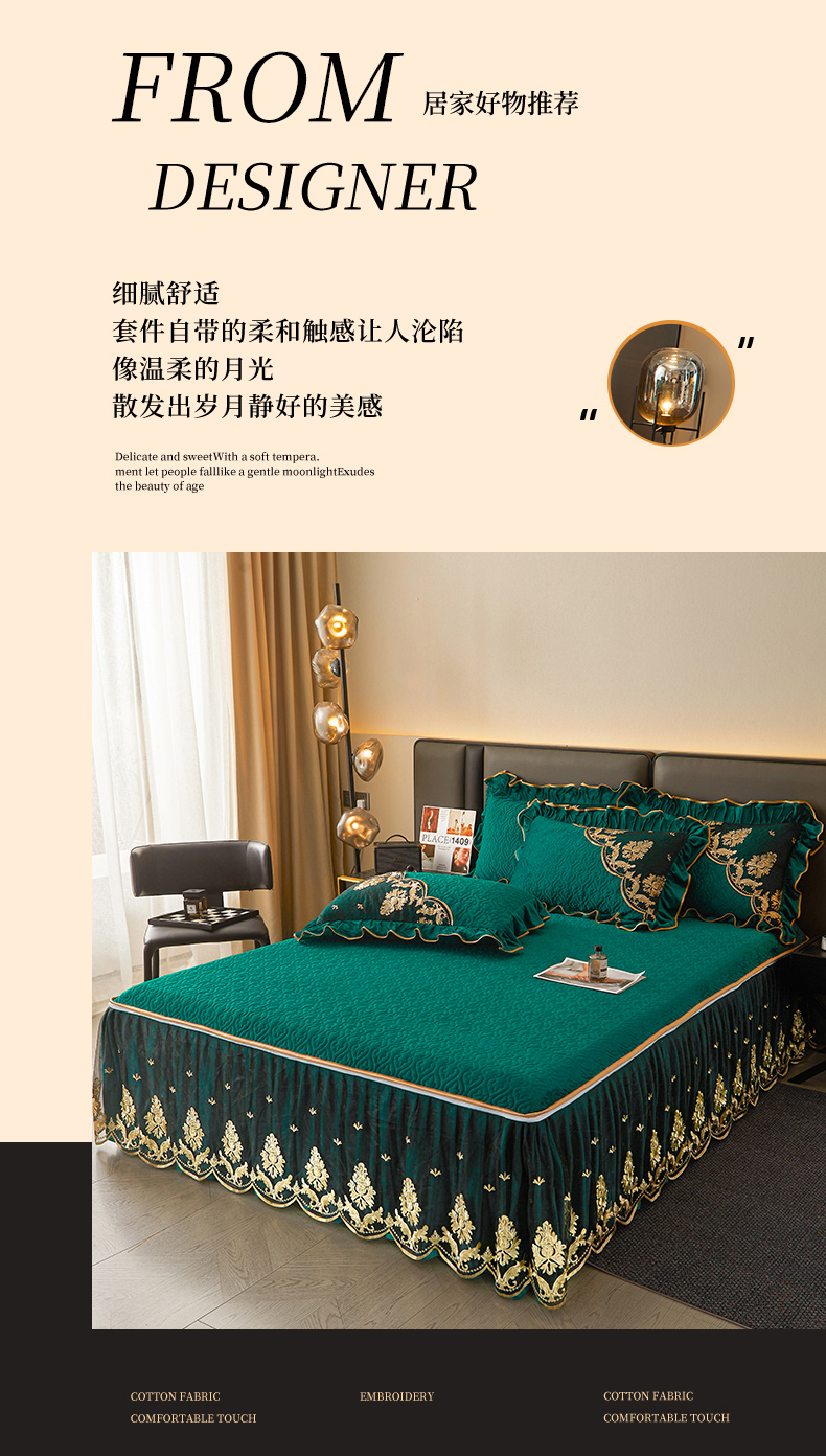 当前位置: 91家纺网 > 商品网购 > 床品套件 > 四件套 > 水晶绒四件套 > 罗艺轩 2024新款高克重水晶绒夹棉床裙四件套-欧典风尚 欧典风尚-黛绿色