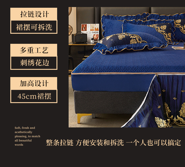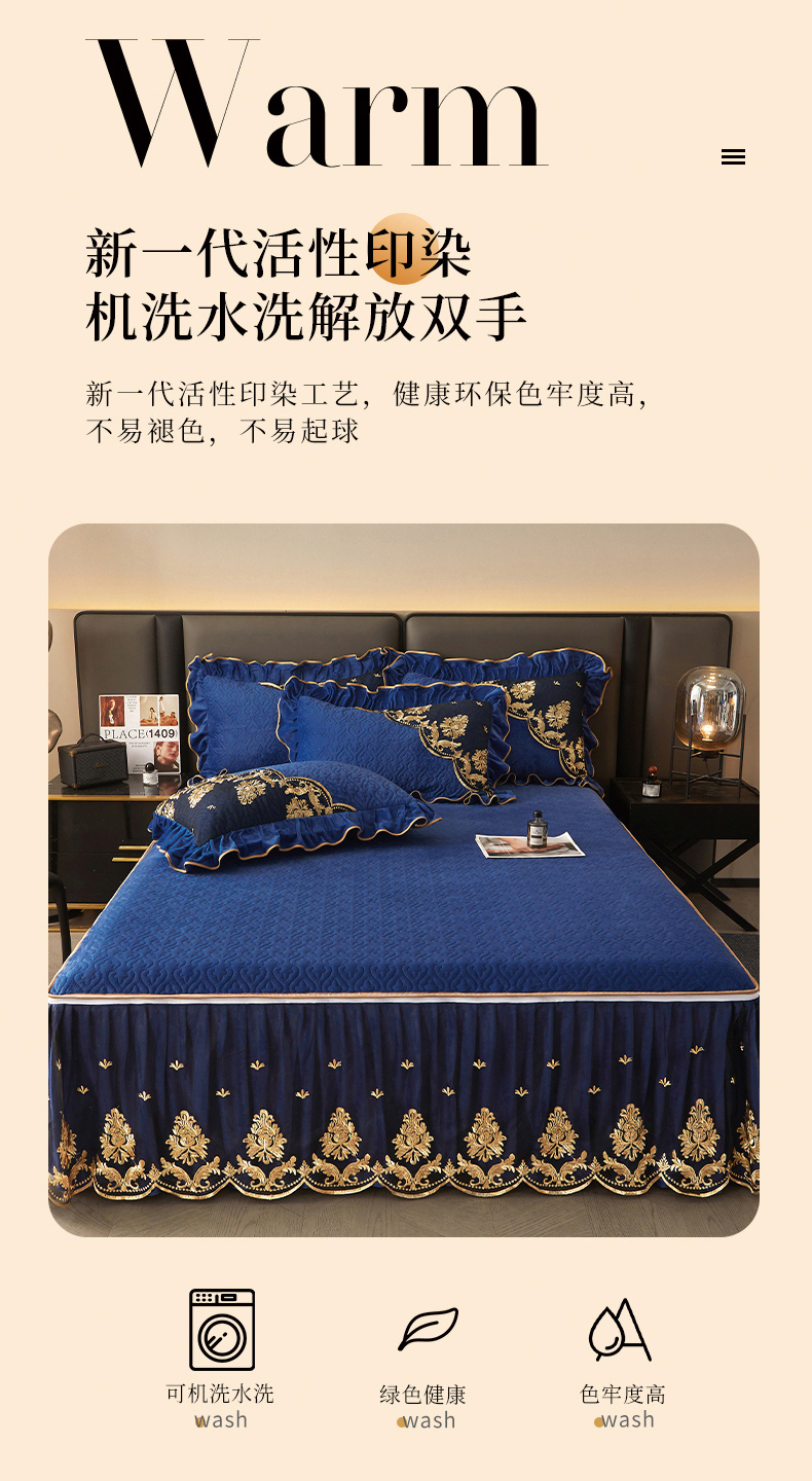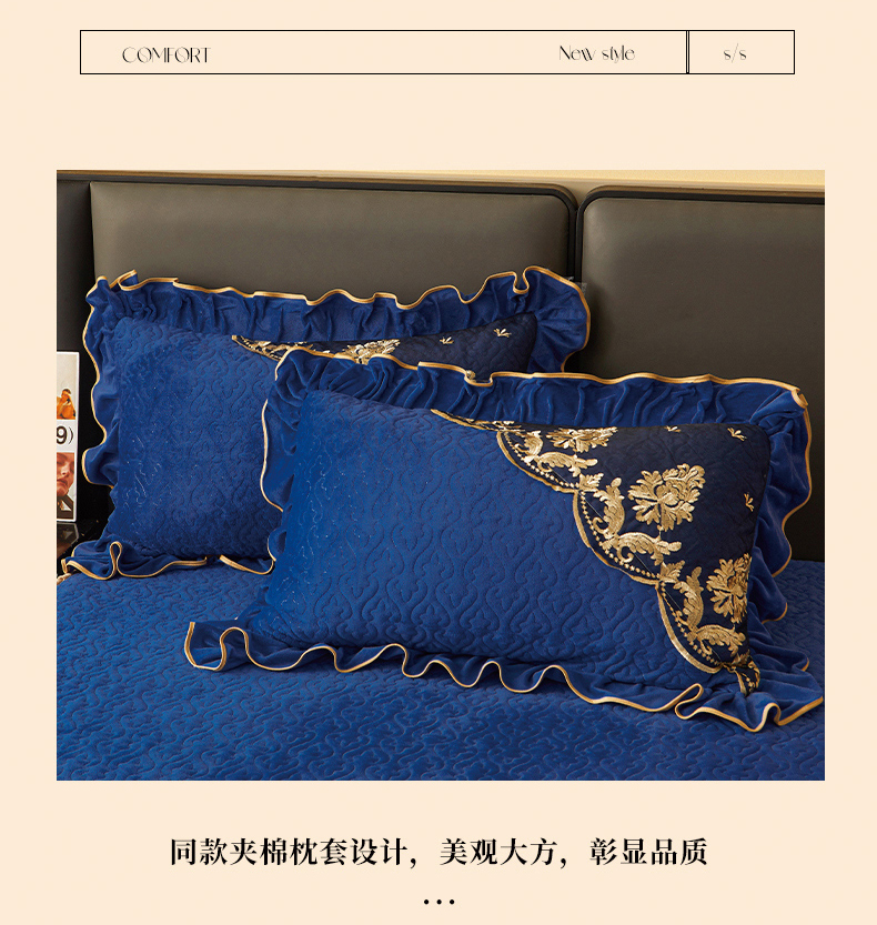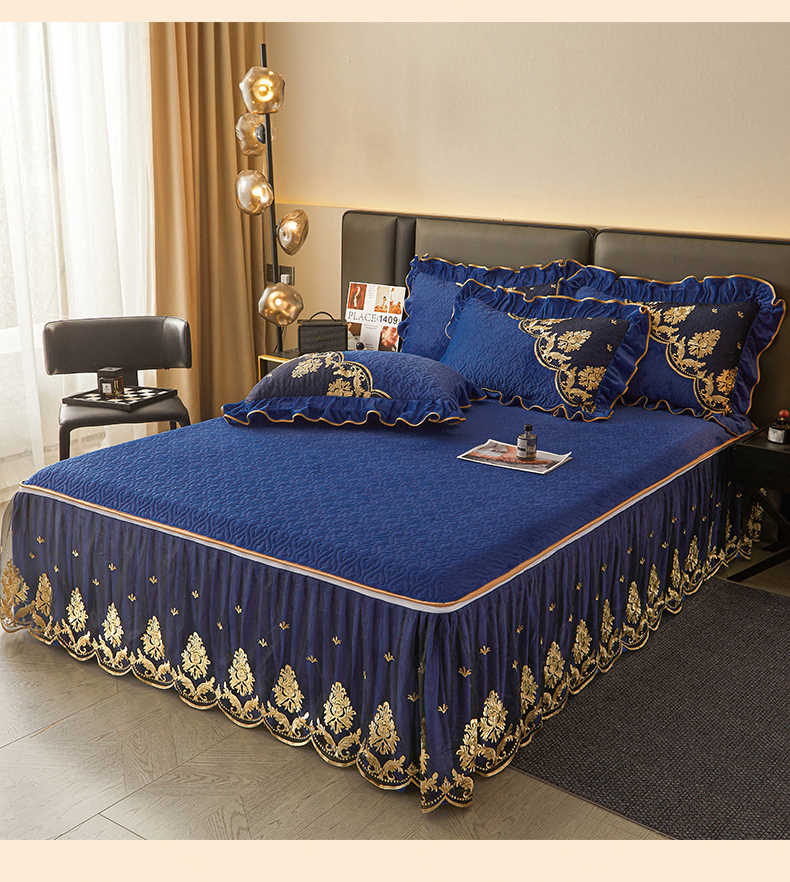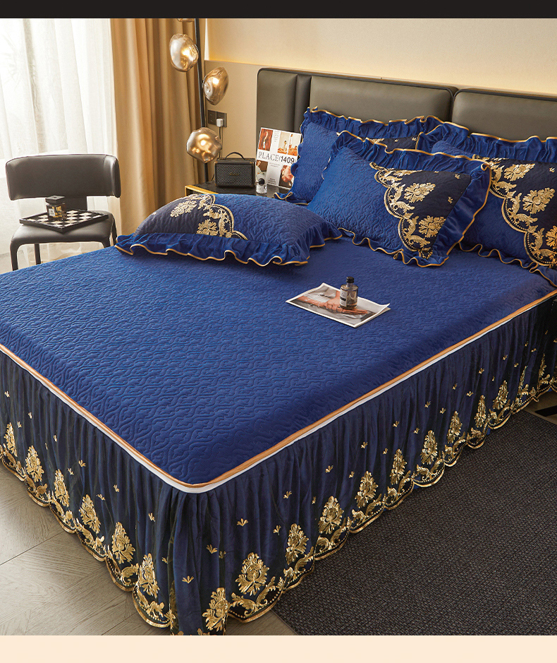 罗艺轩 2024新款高克重水晶绒夹棉床裙三件套-欧典风尚 欧典风尚-宝石蓝