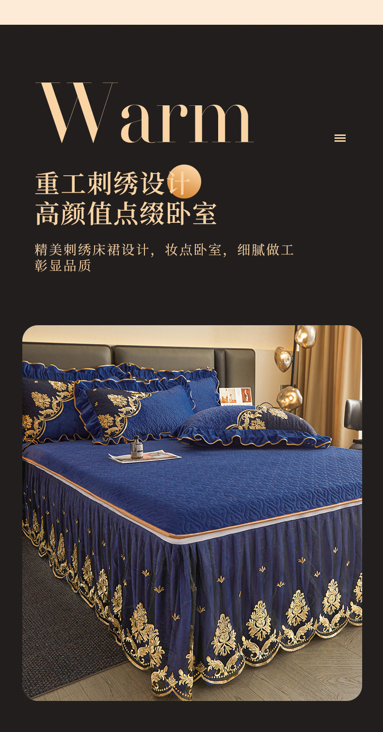 • 91家纺网 家纺一手货源 找家纺 罗艺轩 2024新款高克重水晶绒夹棉床裙三件套-欧典风尚 欧典风尚-宝石蓝