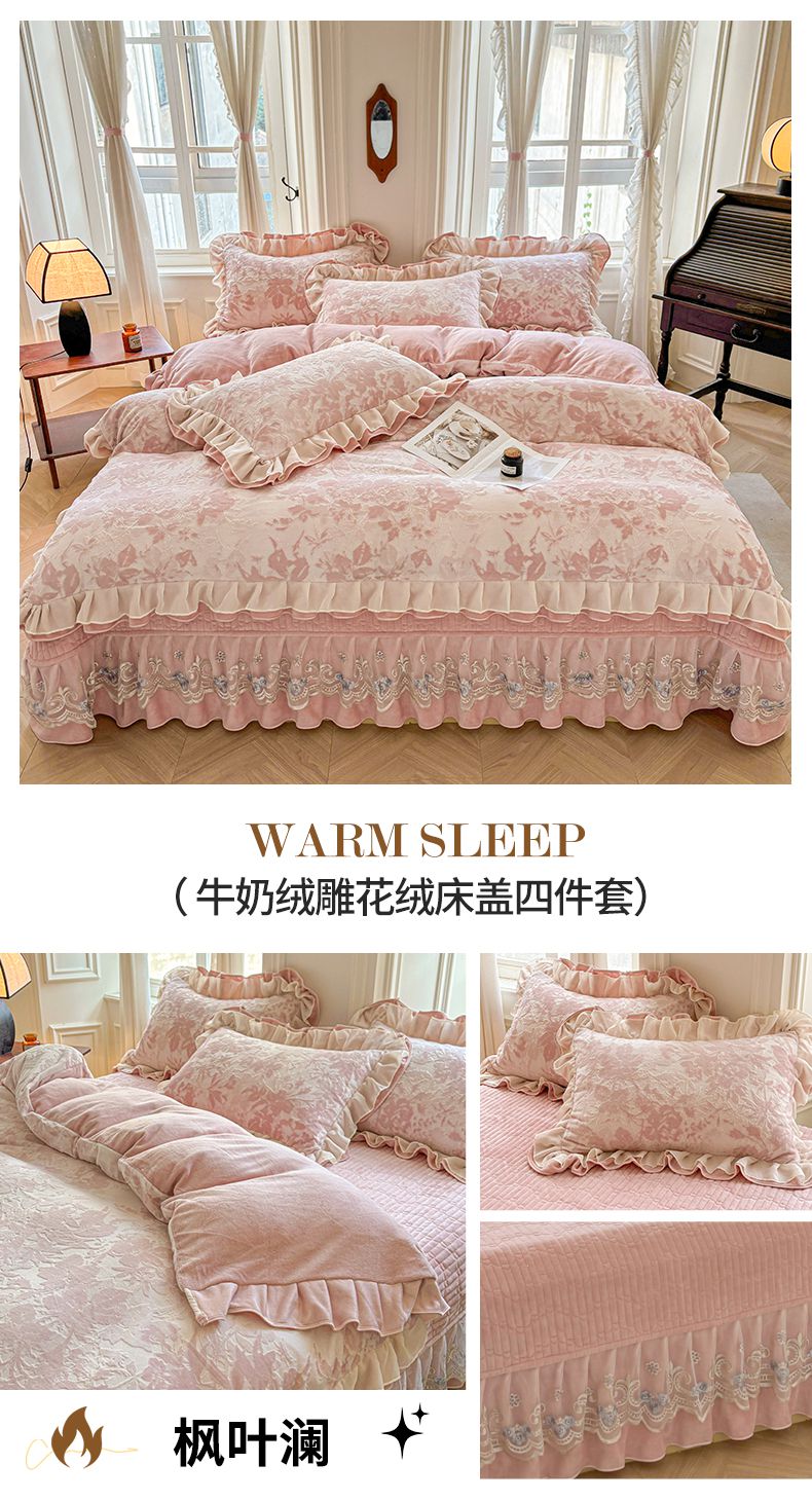 (总)宜凡家纺 2025新款兔绒提花牛奶绒夹棉床裙四件套,爱心 少女粉,爱心 粉紫,爱心 驼色,蝶舞 大红,蝶舞 米色,蝶舞 浅紫,蝶舞 玉色,简爱 苍青,简爱 豆沙紫,简爱 玉色,樱桃 苍青,樱桃 豆沙紫,樱桃 奶油白