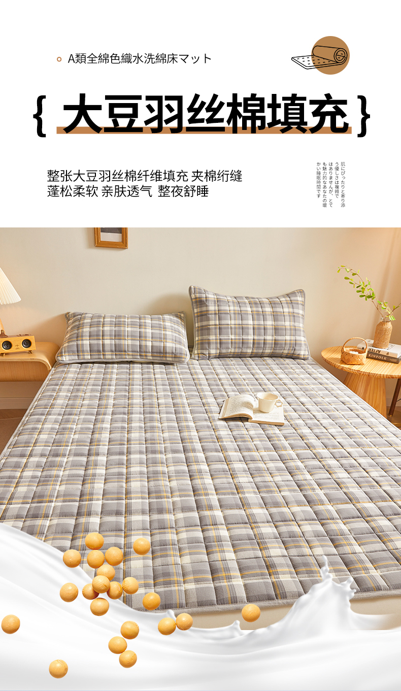 (总)伊人坊 2024新款原棉大豆床护垫,明月白,碧水青,布朗灰,玫瑰粉,米杏色,苹果绿