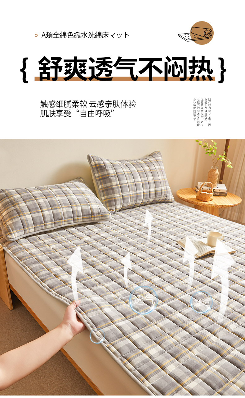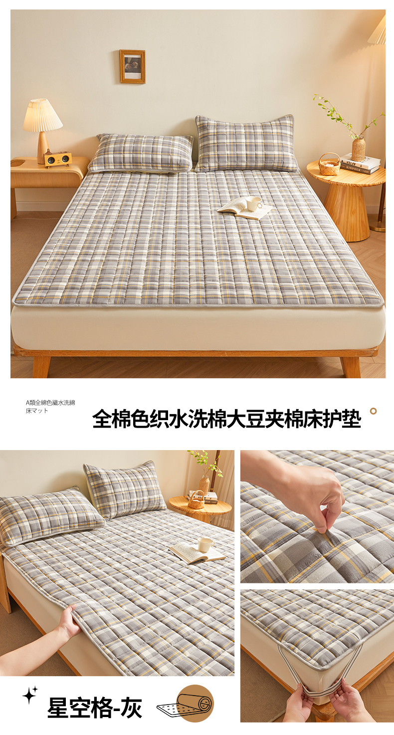 商品名称:伊人坊 2024新款全棉色织水洗棉床护垫 星空格-灰