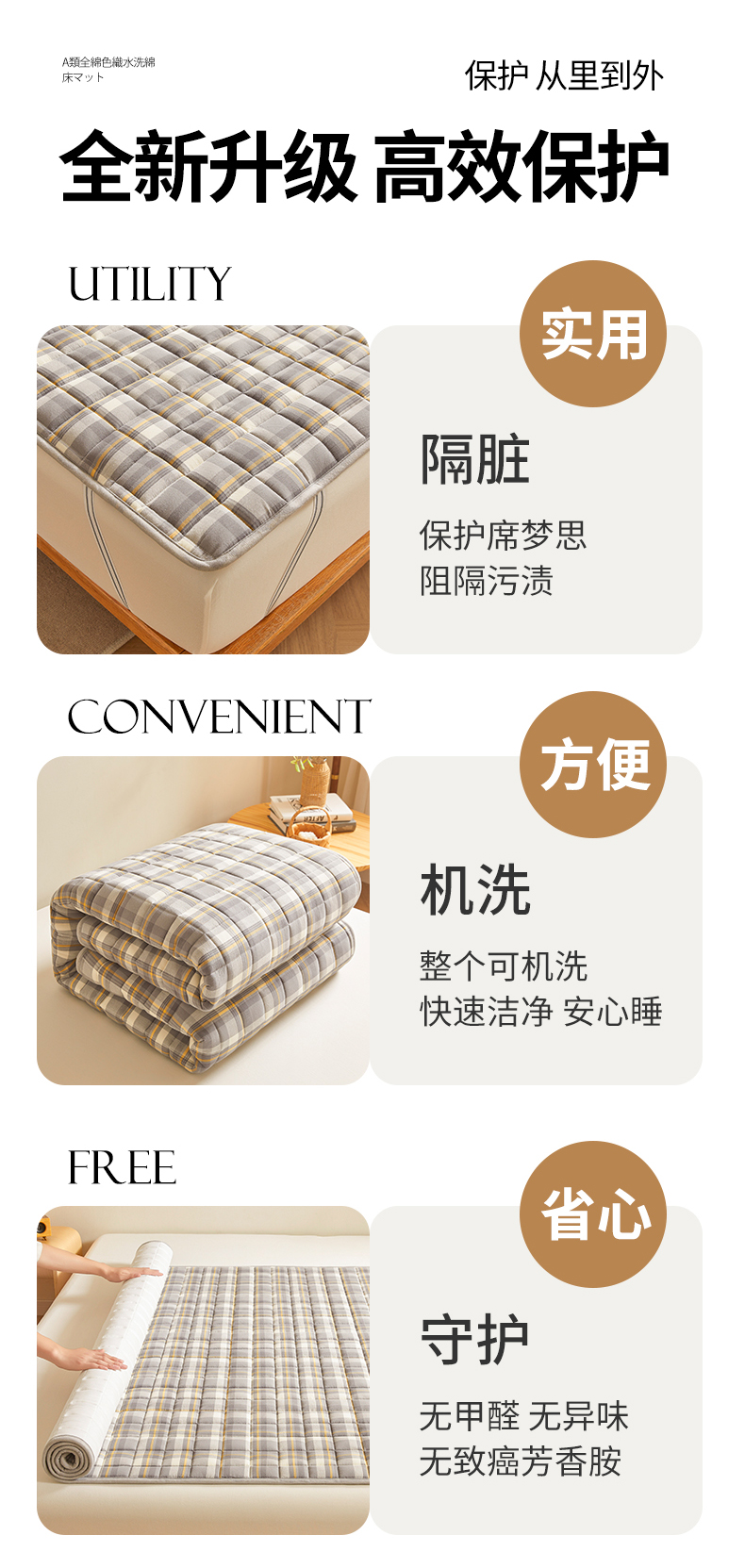 (总)伊人坊 2025新款A类全棉水洗棉六面全包夹棉床笠床垫保护套拉链床笠,云朵白,浅米驼,青果绿,时尚灰,天空蓝,樱花粉