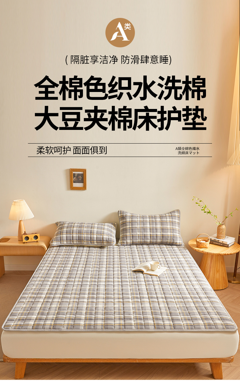 (总)伊人坊 2024新款原棉大豆防水床护垫,明月白,碧水青,布朗灰,玫瑰粉,米杏色,苹果绿