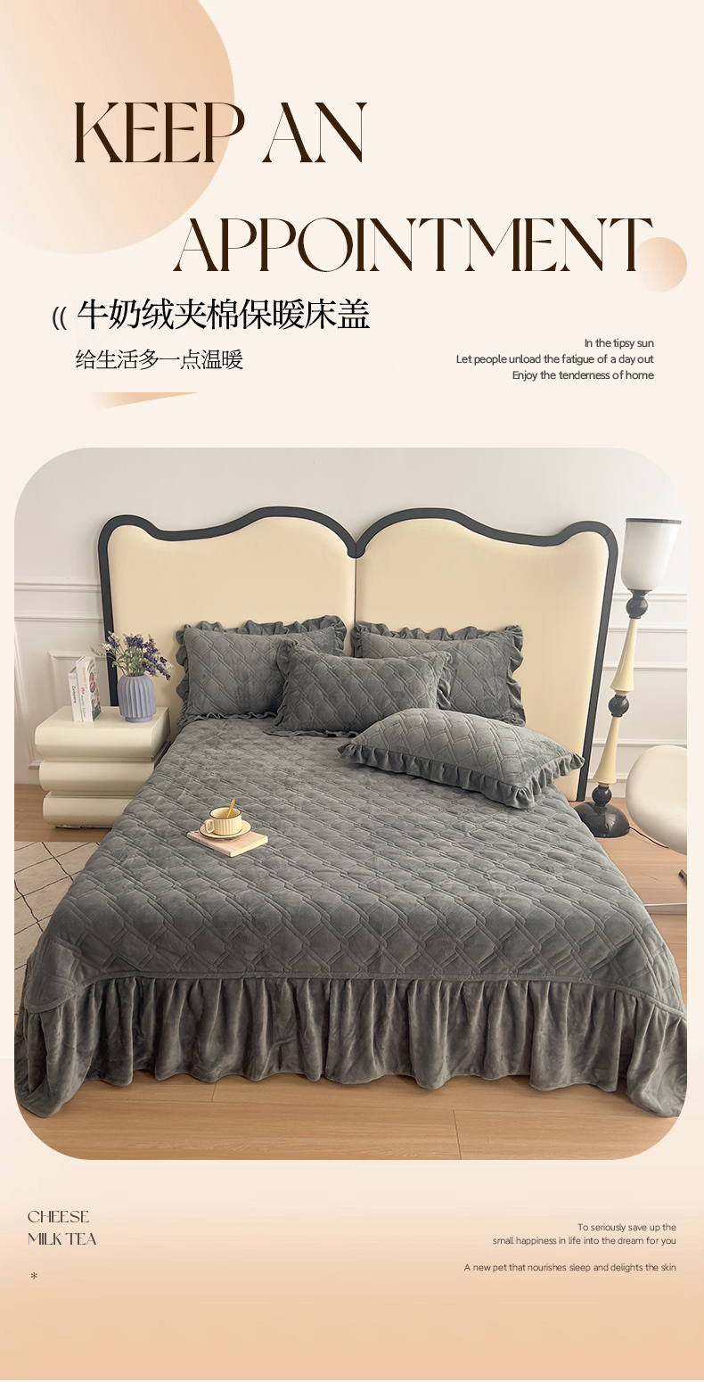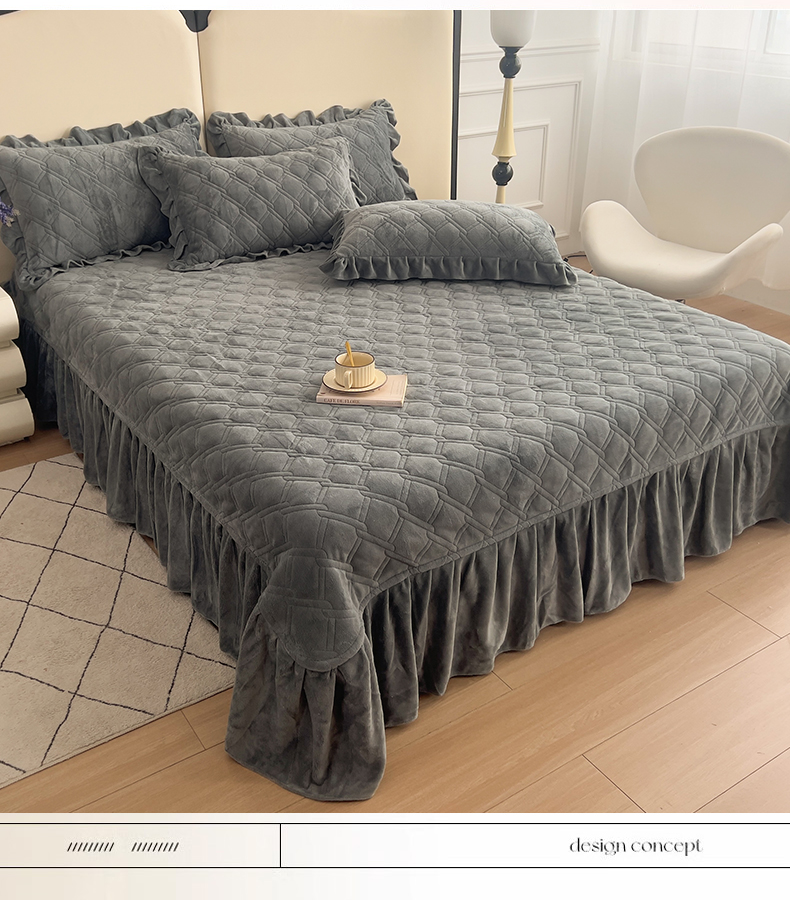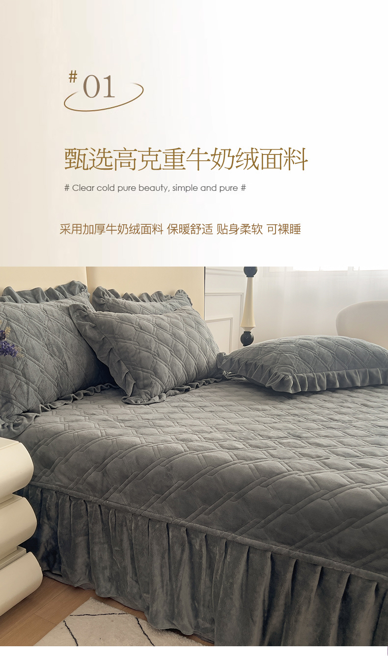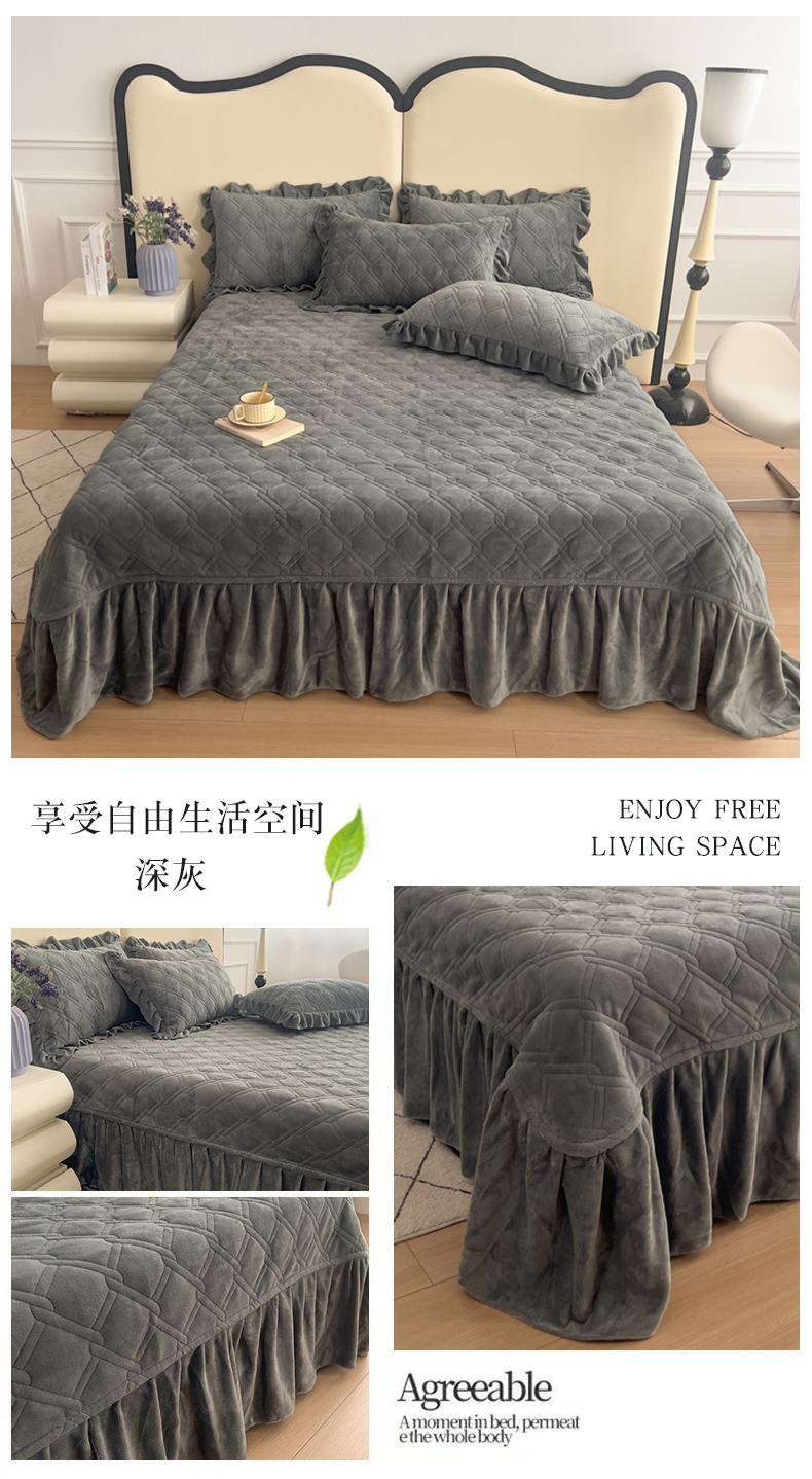 商品名称:十个点家纺 2024新款牛奶绒夹棉床盖三件套-唯美系列 唯美-深灰
