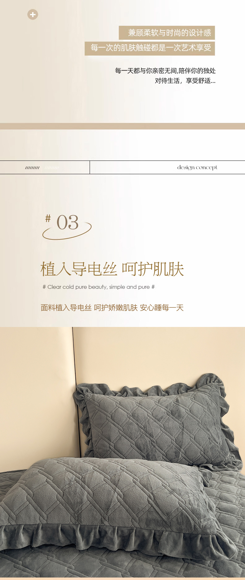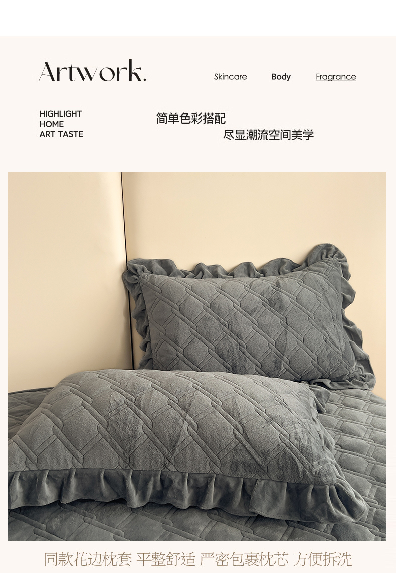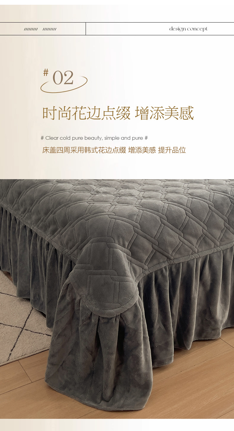 商品名称:十个点家纺 2024新款牛奶绒夹棉床盖三件套-唯美系列 唯美-深灰