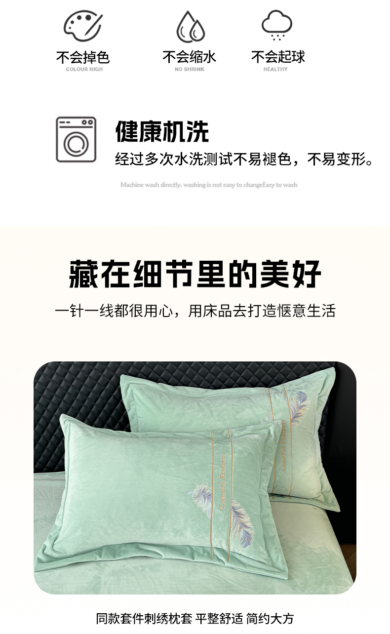 商品名称:(总)雪夫人 2024新款加厚宝宝绒刺绣床裙款四件套-羽毛