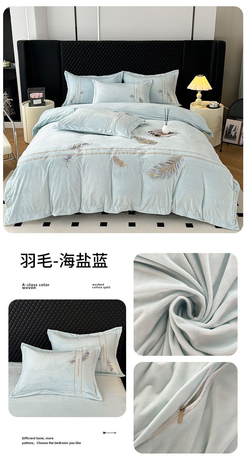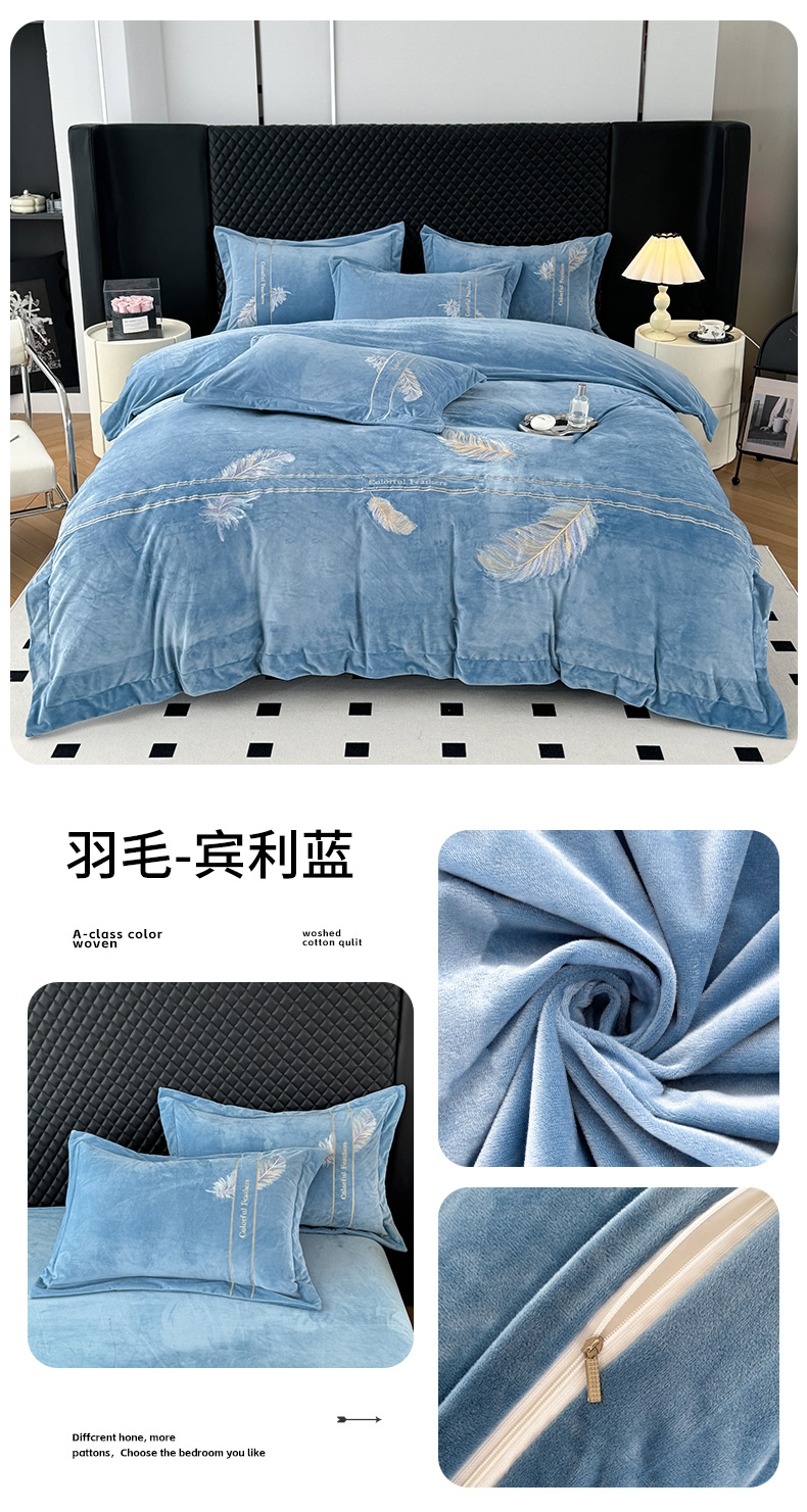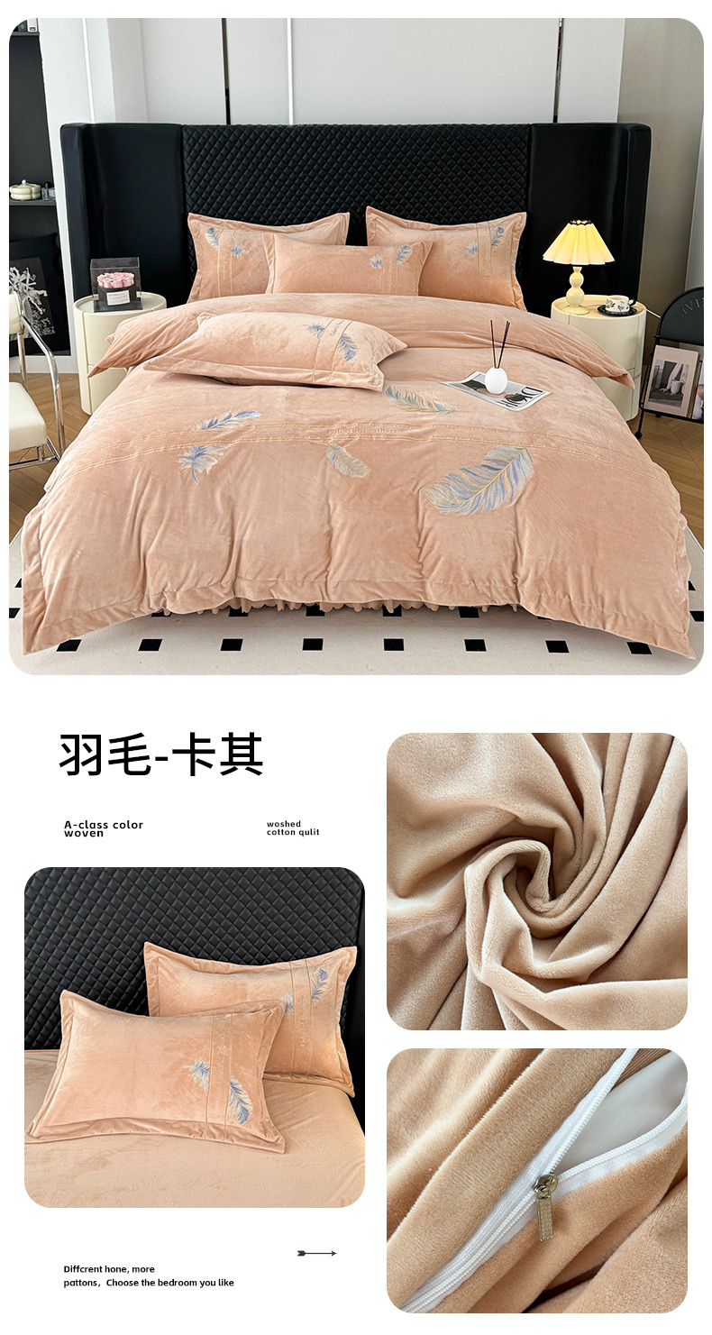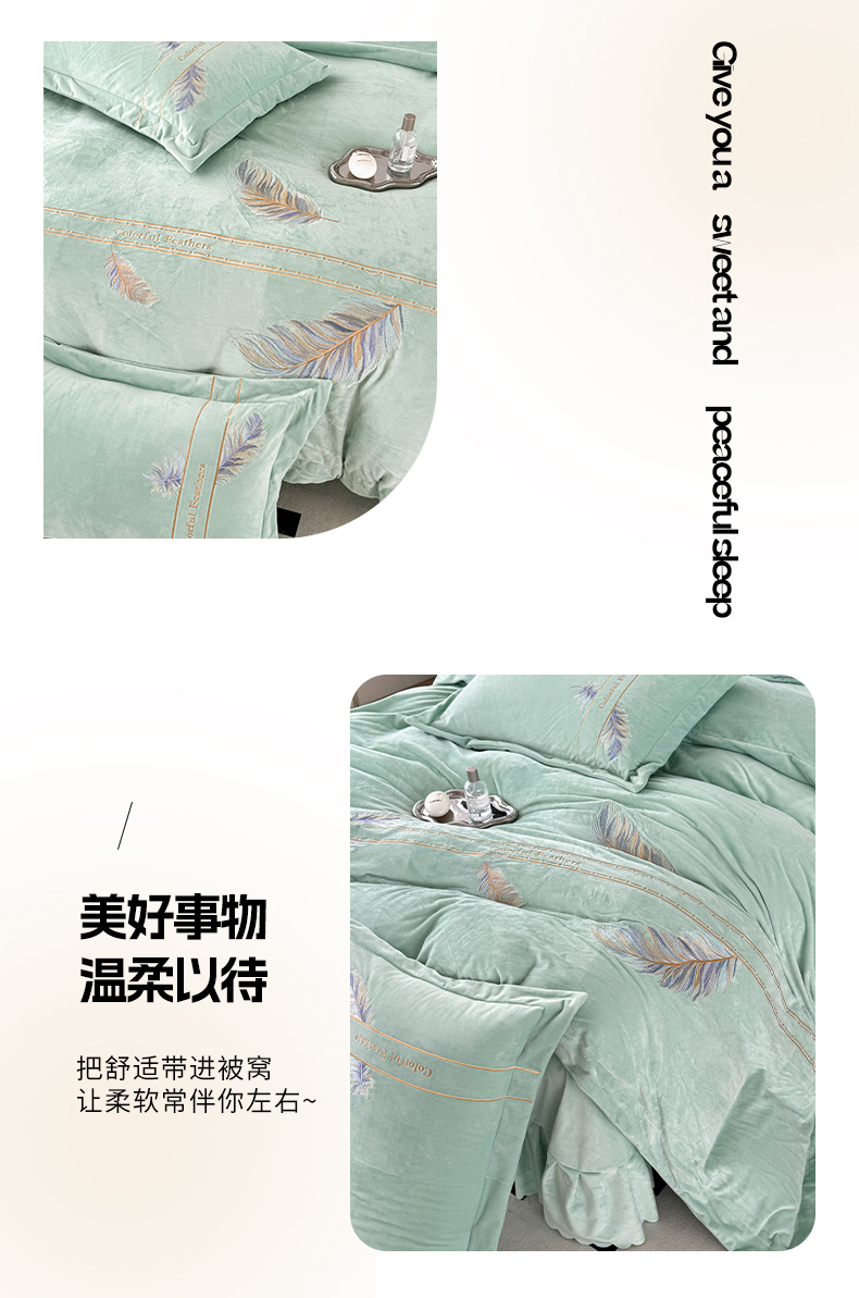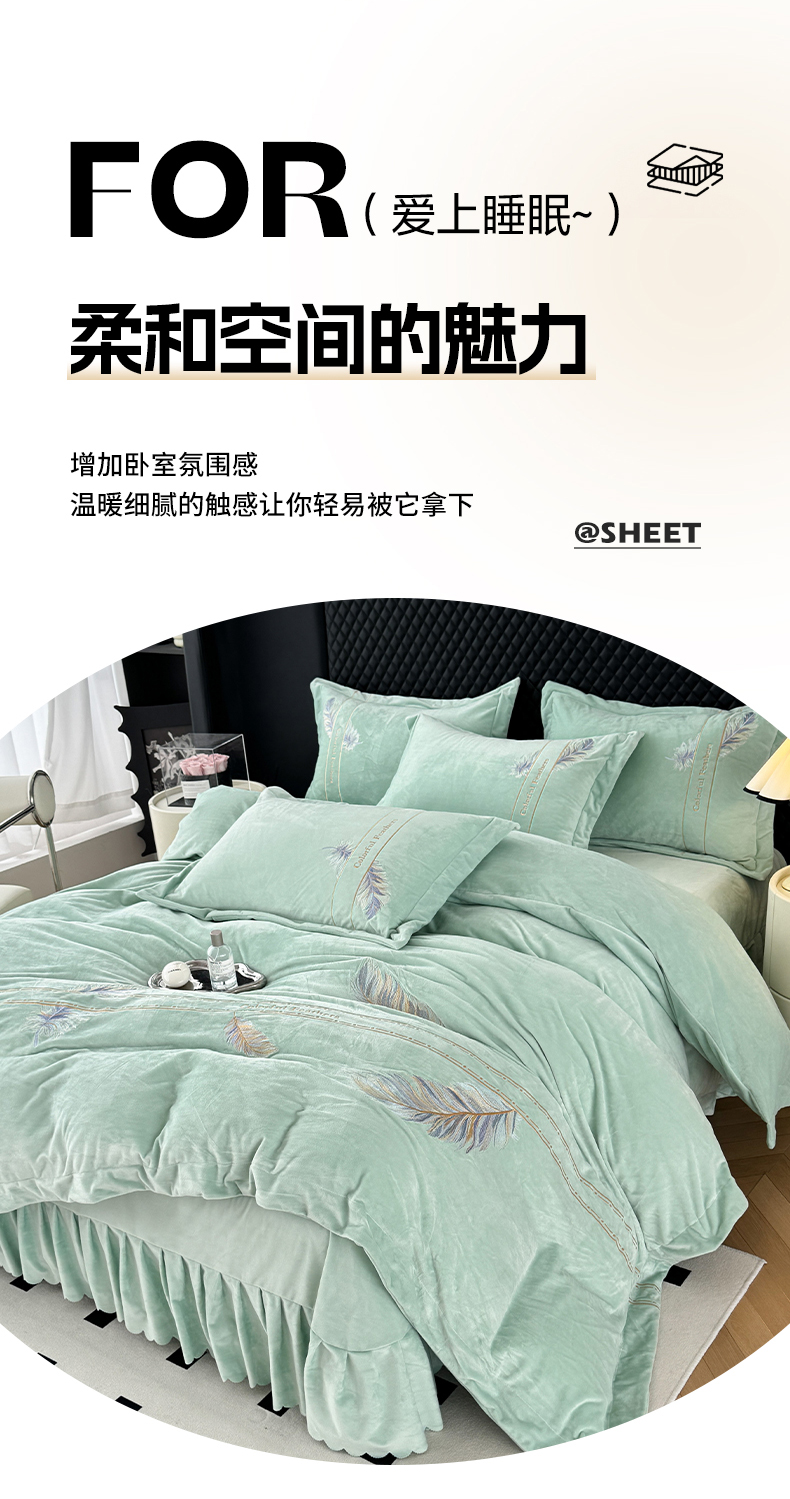 (总)雪夫人 2024新款加厚宝宝绒刺绣床裙款四件套-羽毛