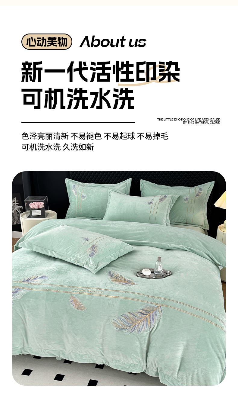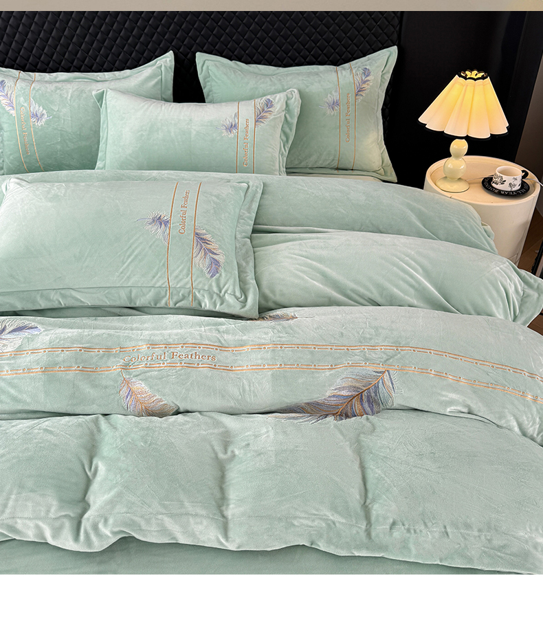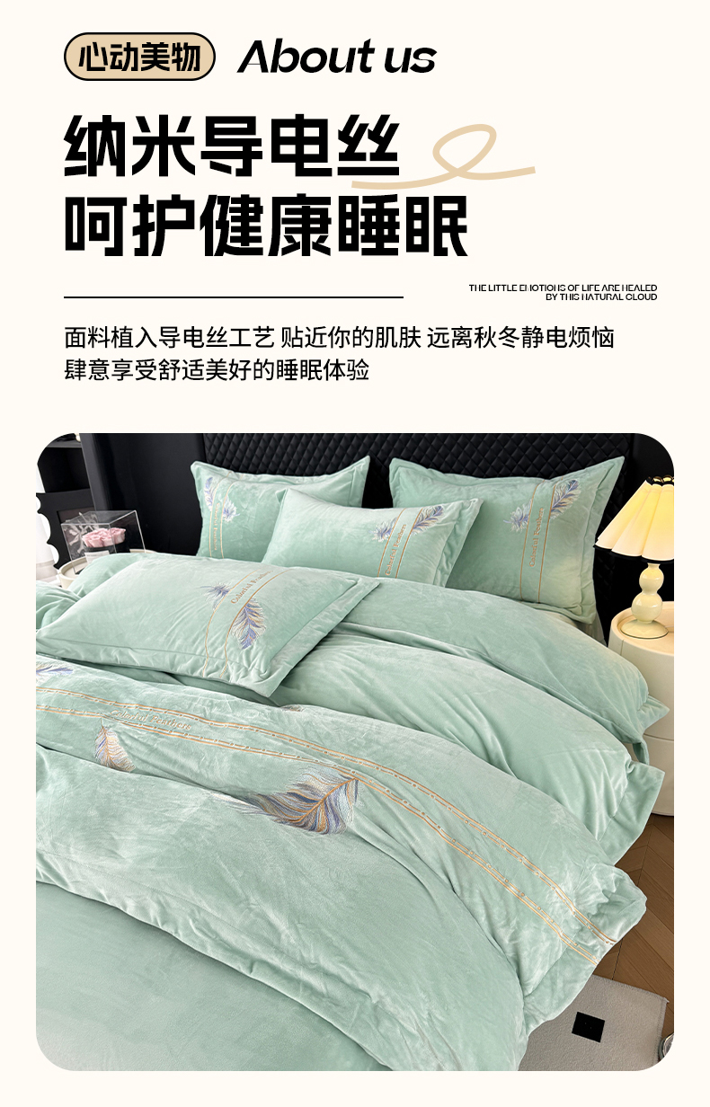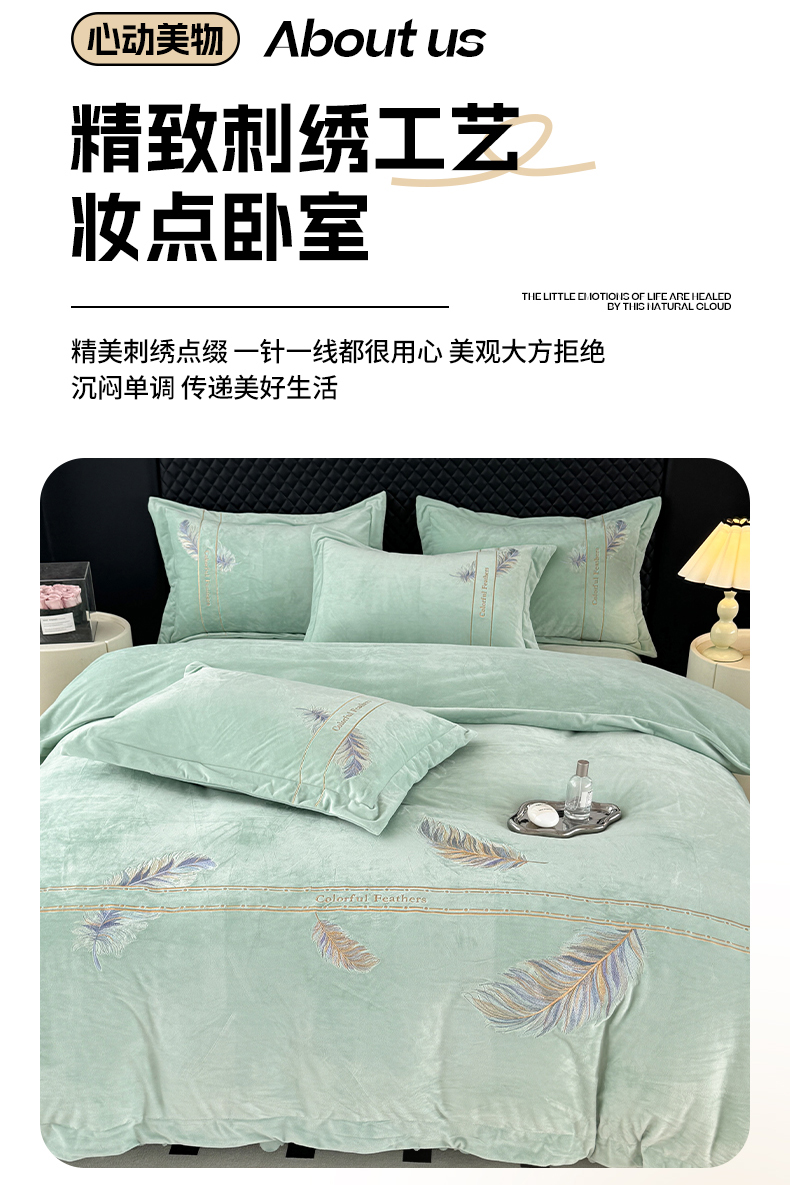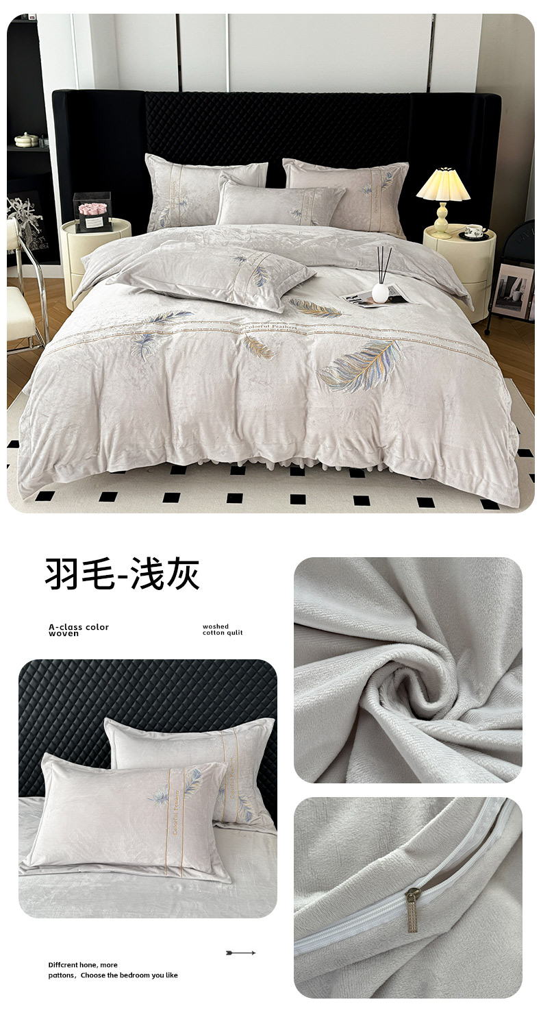 (总)雪夫人 2024新款加厚宝宝绒刺绣床裙款四件套-羽毛