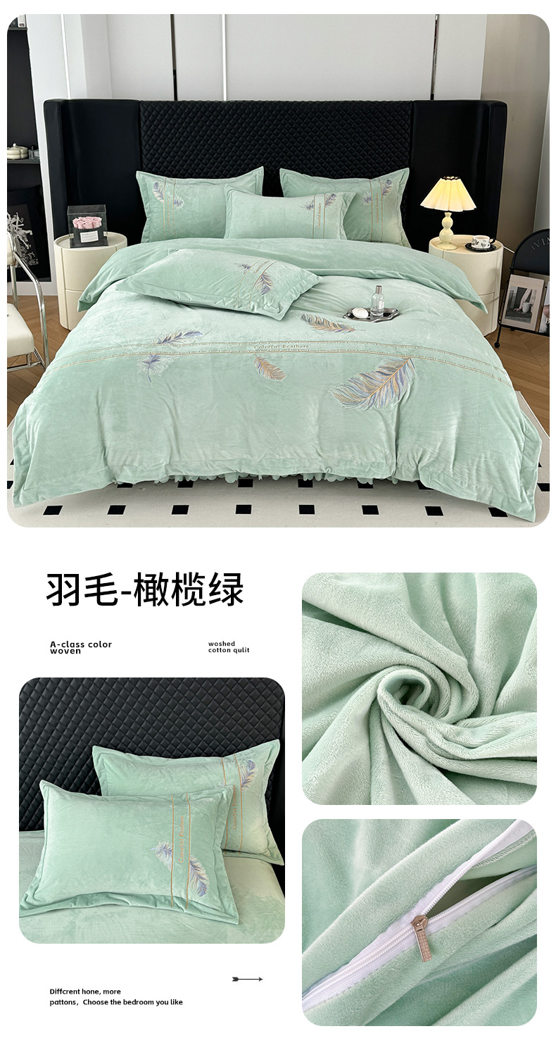(总)雪夫人 2024新款加厚宝宝绒刺绣床裙款四件套-羽毛,羽毛-宾利蓝,羽毛-橄榄绿,羽毛-海盐蓝,羽毛-卡其,羽毛-浅灰