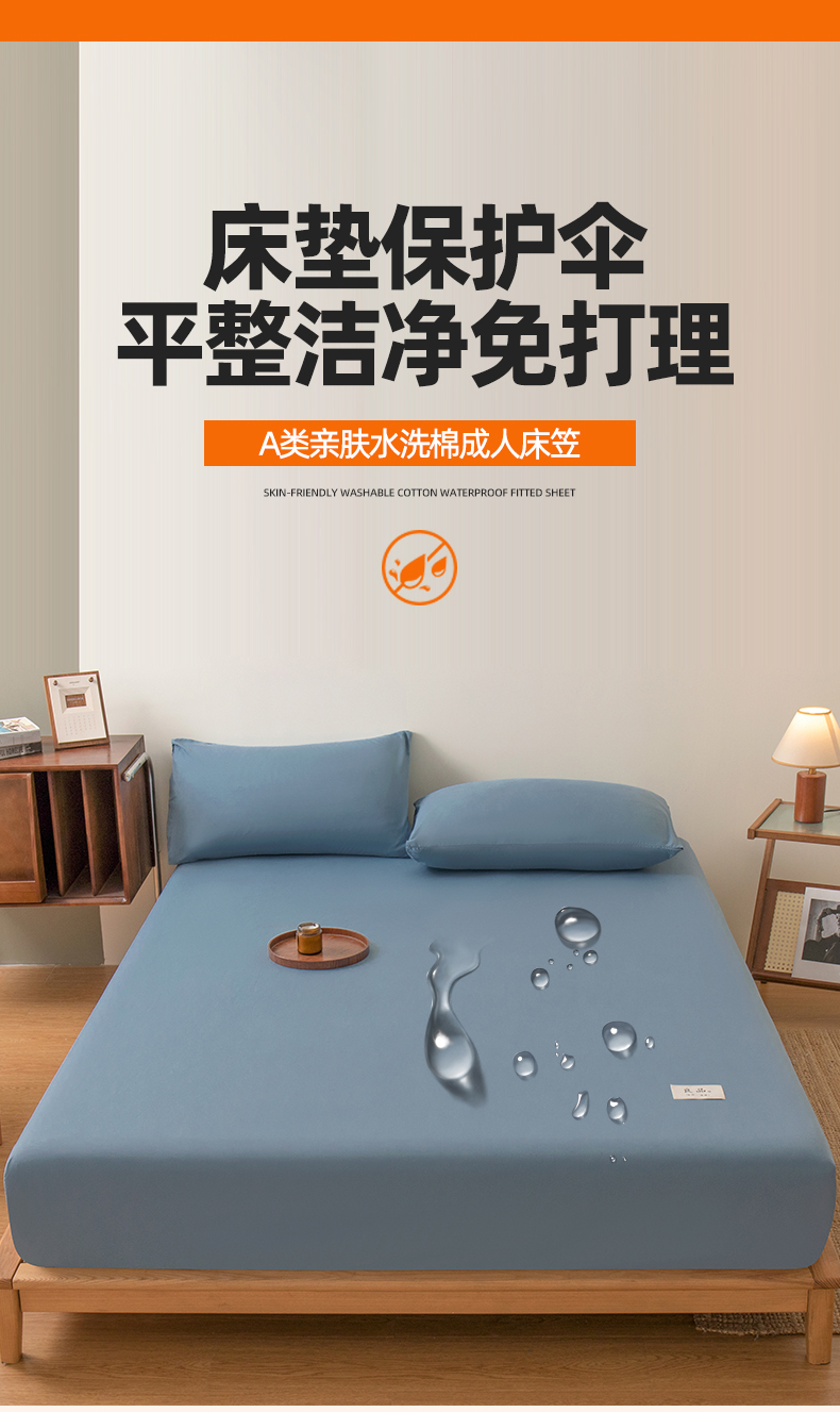 暖季家纺 2025新款单层无印风防水床笠 防水-海水蓝