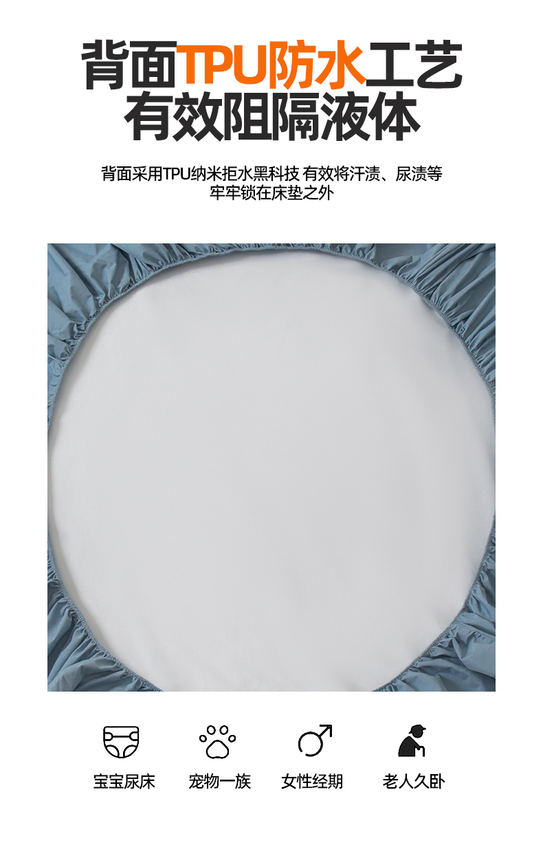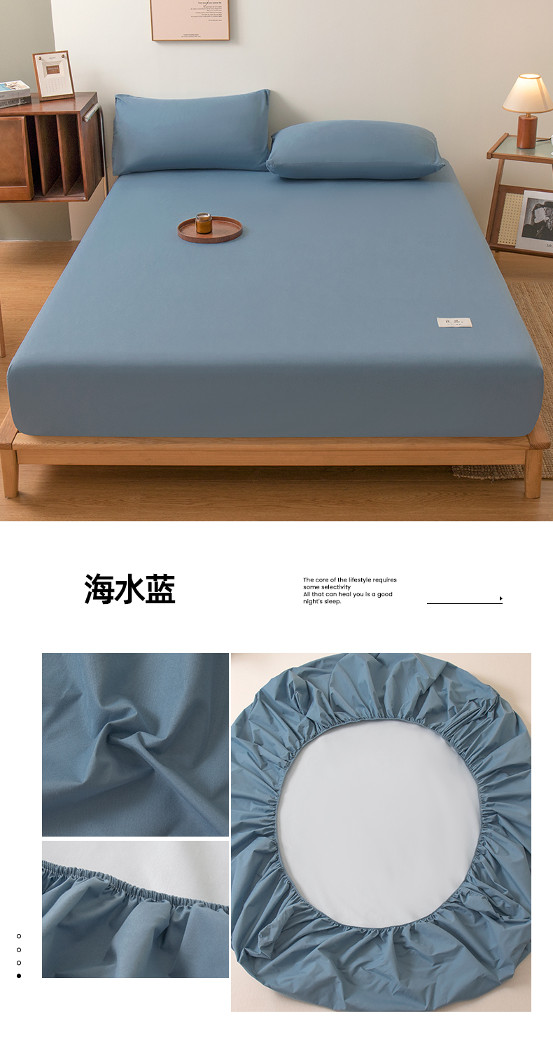 商品名称:暖季家纺 2025新款单层无印风防水床笠 防水-海水蓝