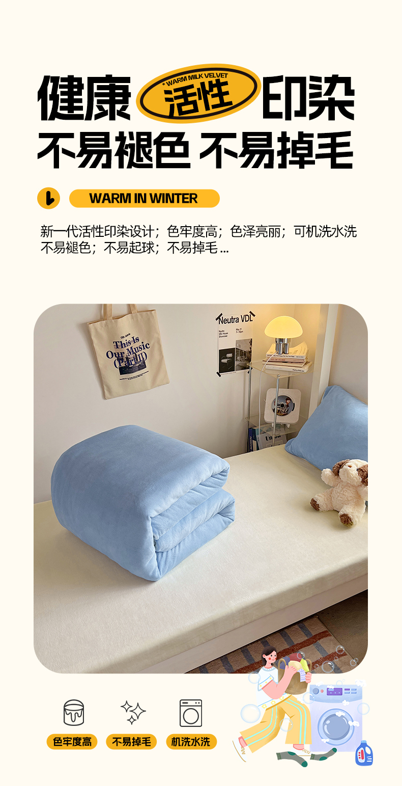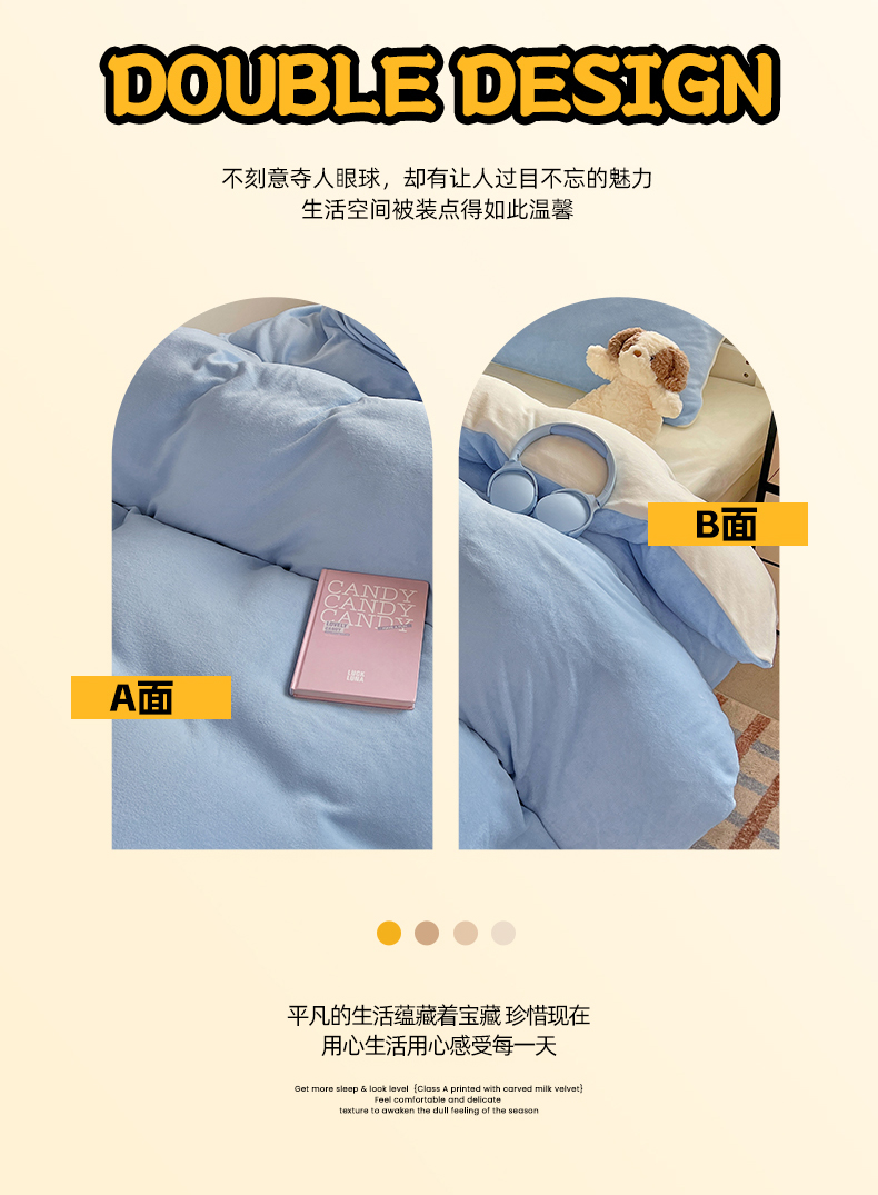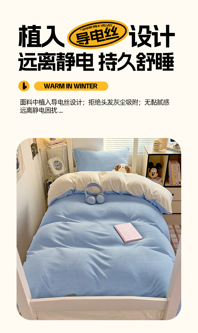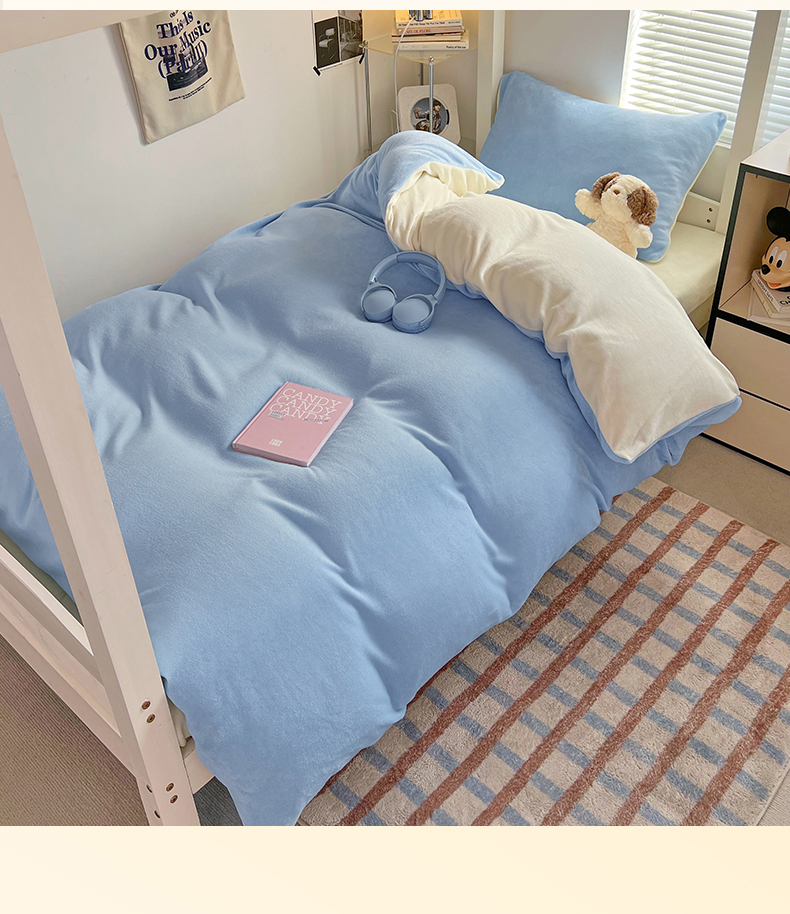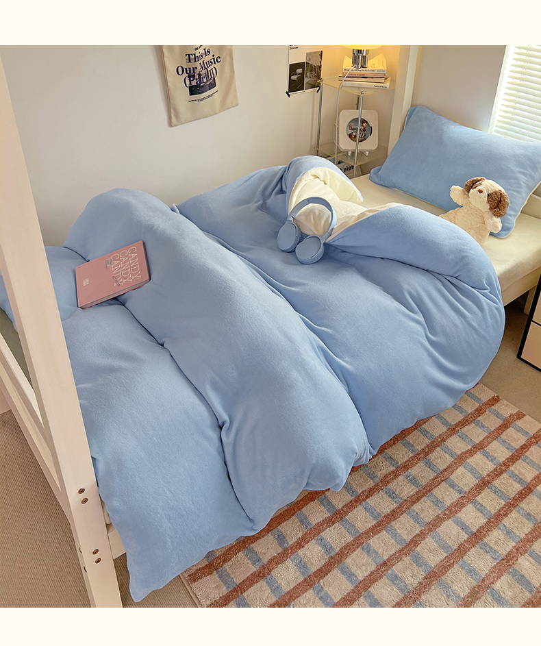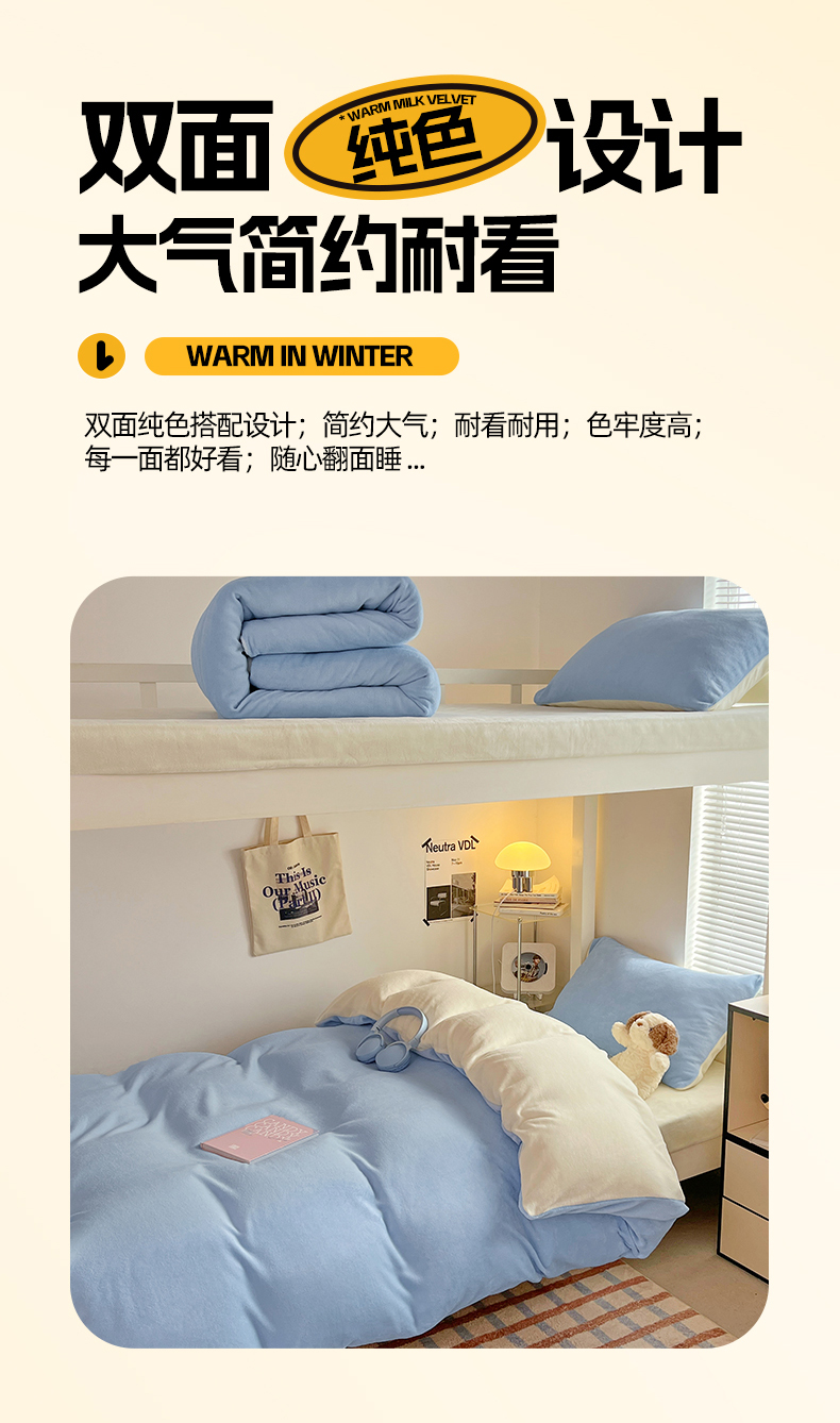 当前位置: 91家纺网 > 商品网购 > 床品套件 > 三件套 > 优卡迪家纺馆 2024新款牛奶绒纯色双拼宿舍床三件套(包含买家秀) 浅蓝奶白