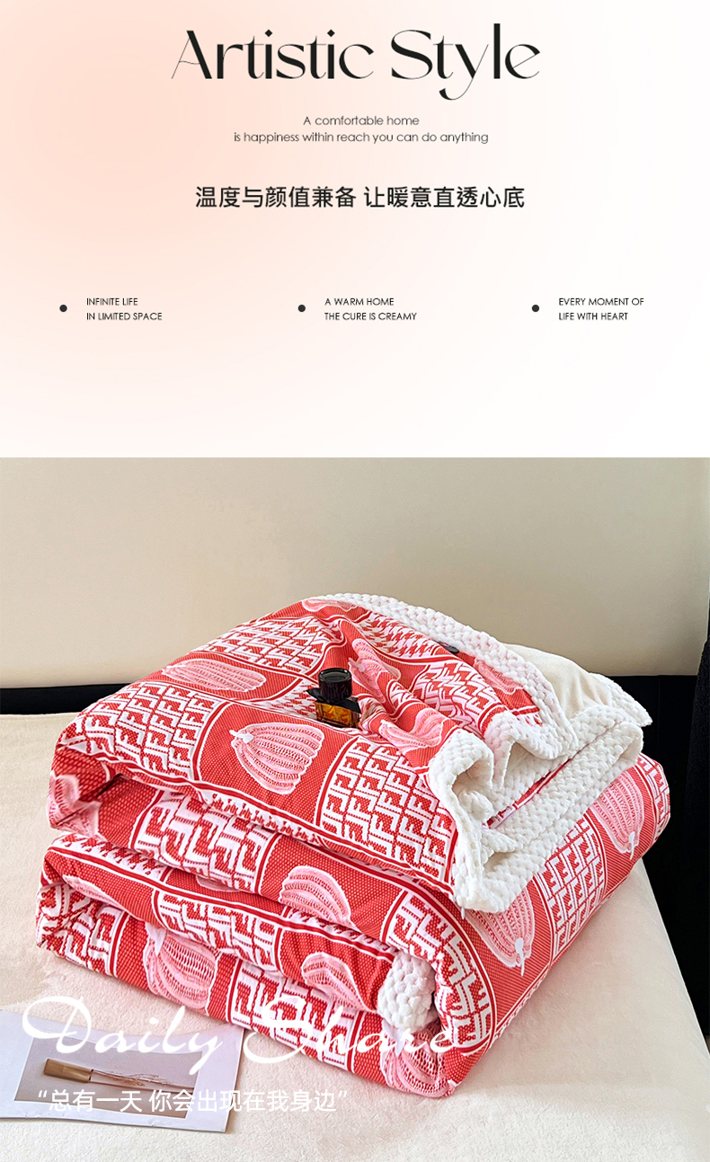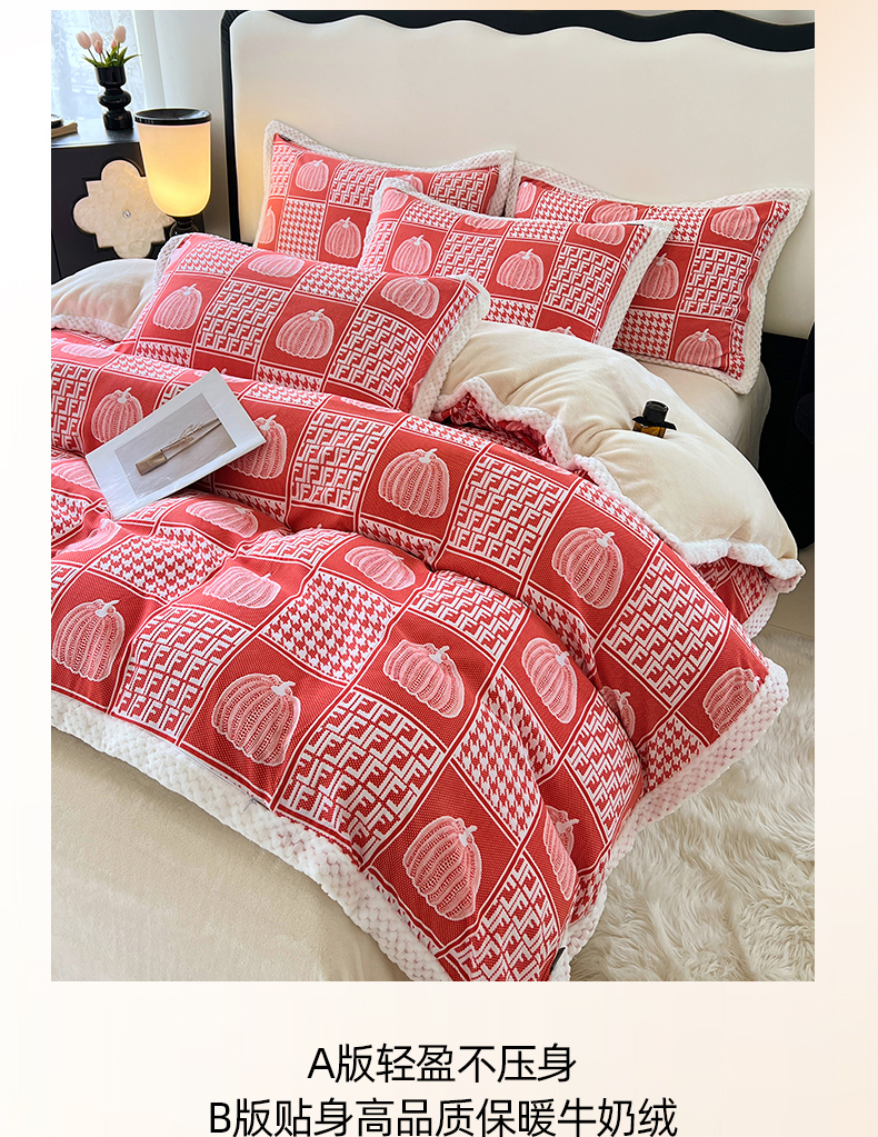yyds网供 2024新款棉加绒四件套多功能盖毯被套牛奶绒四件套床单款-南瓜 橙意南瓜