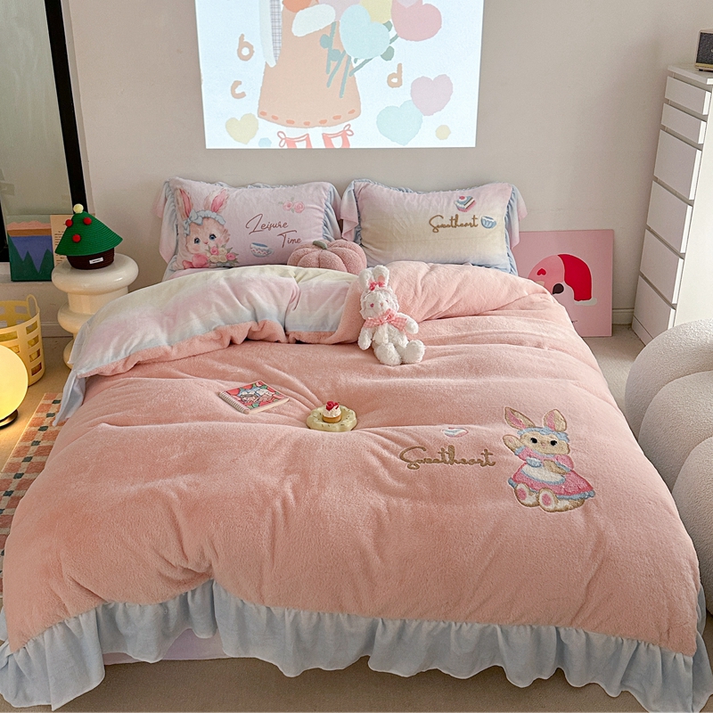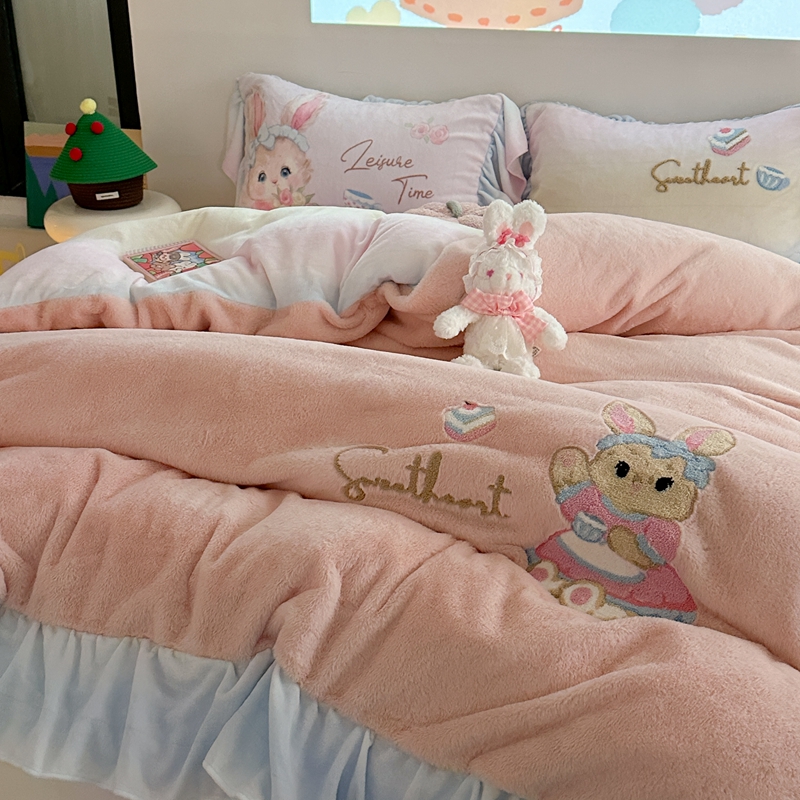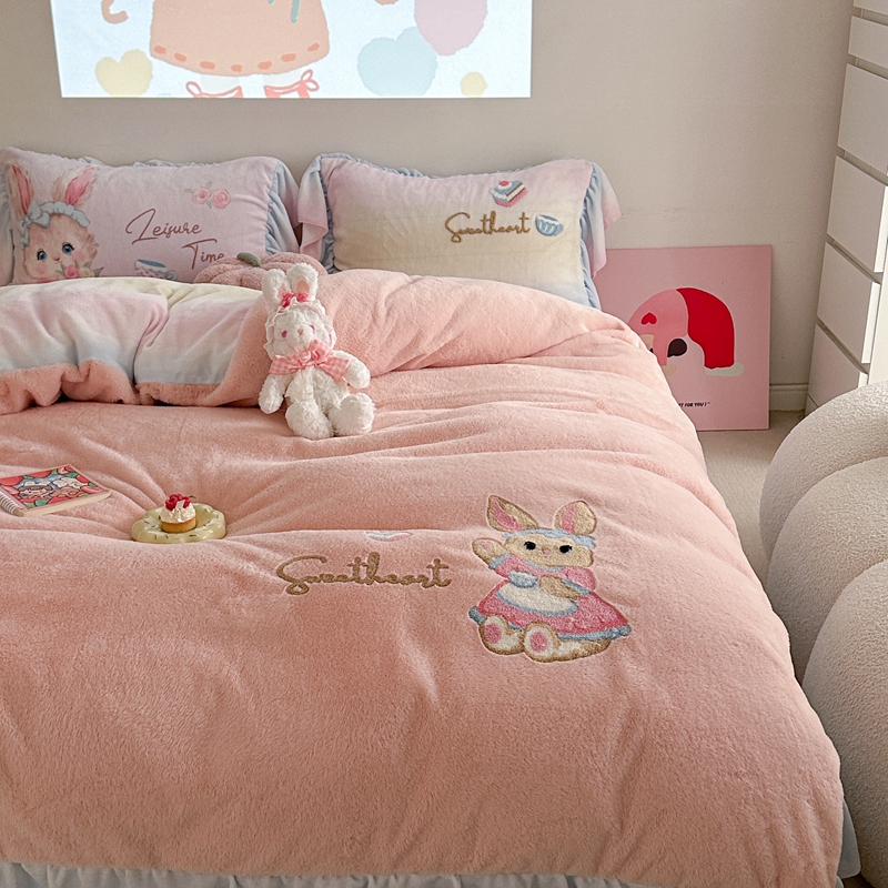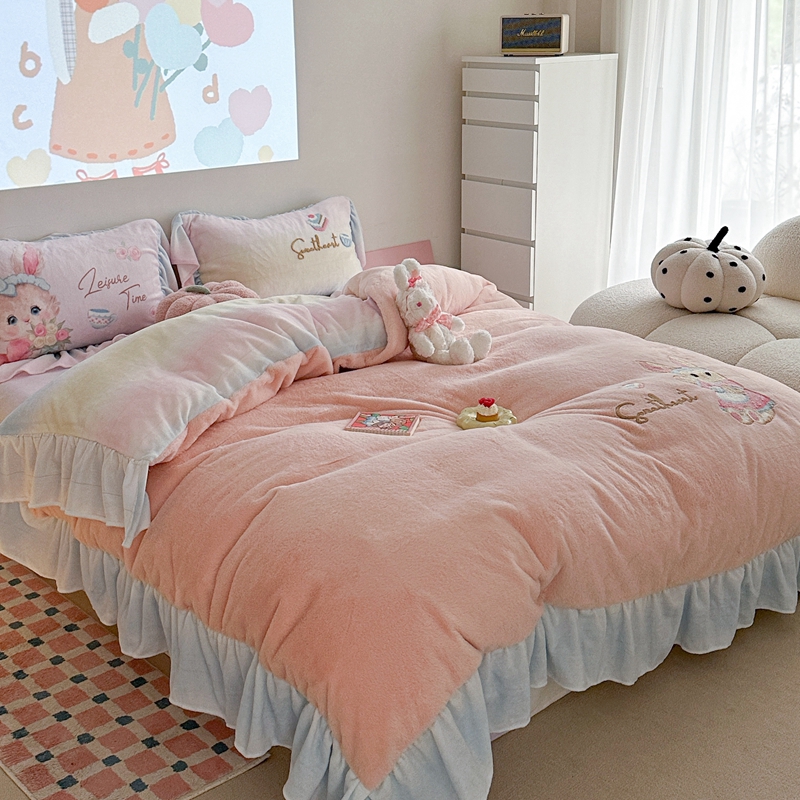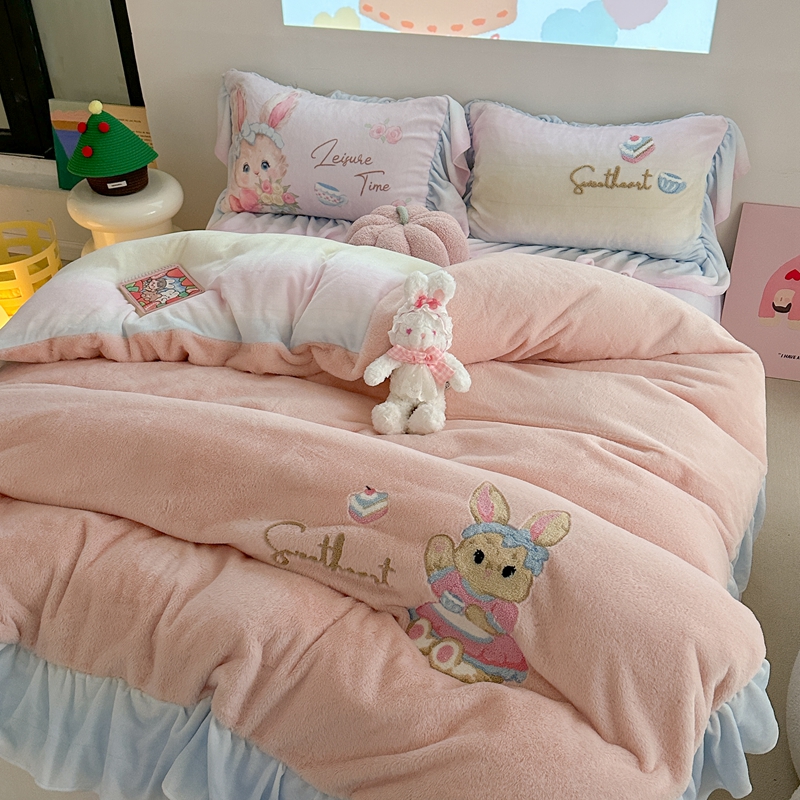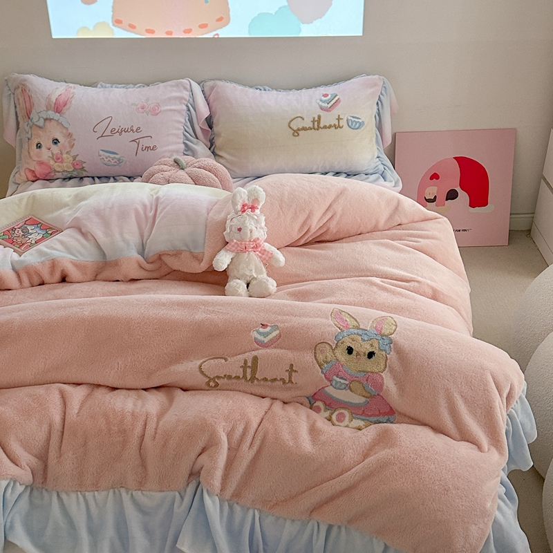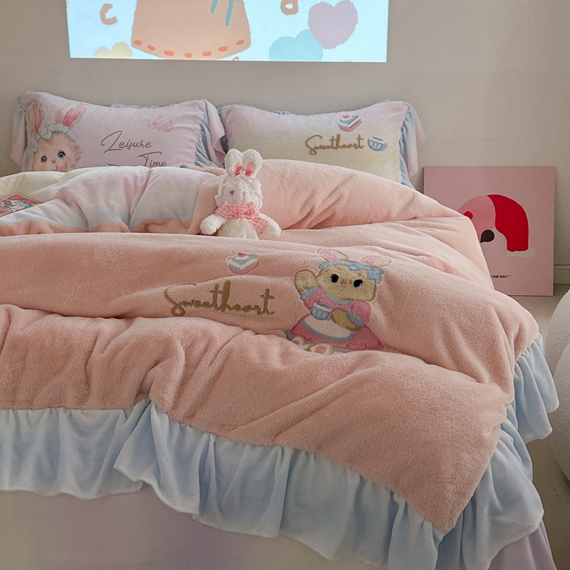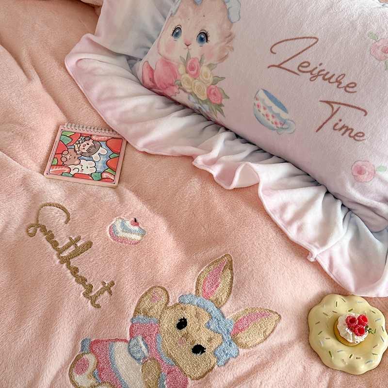柚子 2024新款仿羊绒萝莉风花边款四件套 萝莉兔