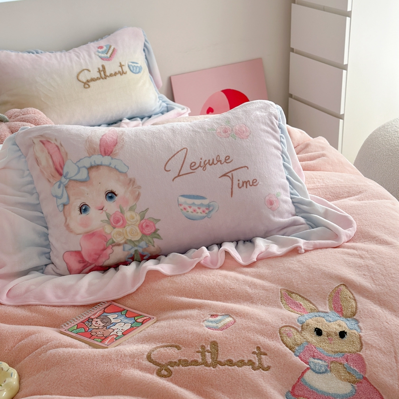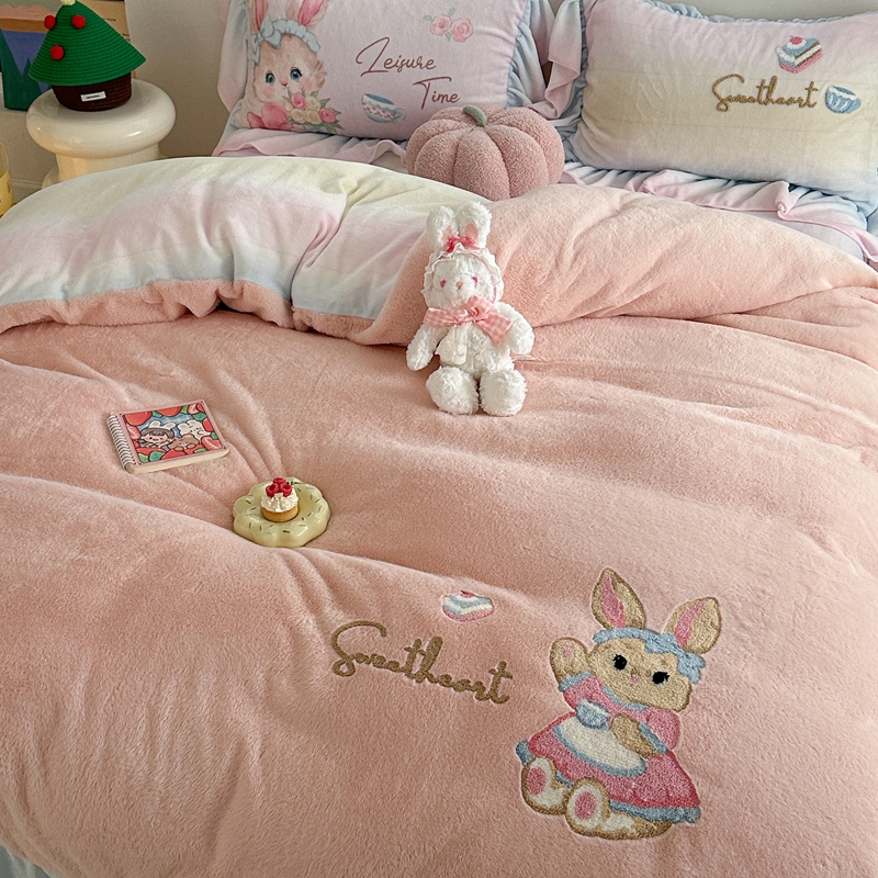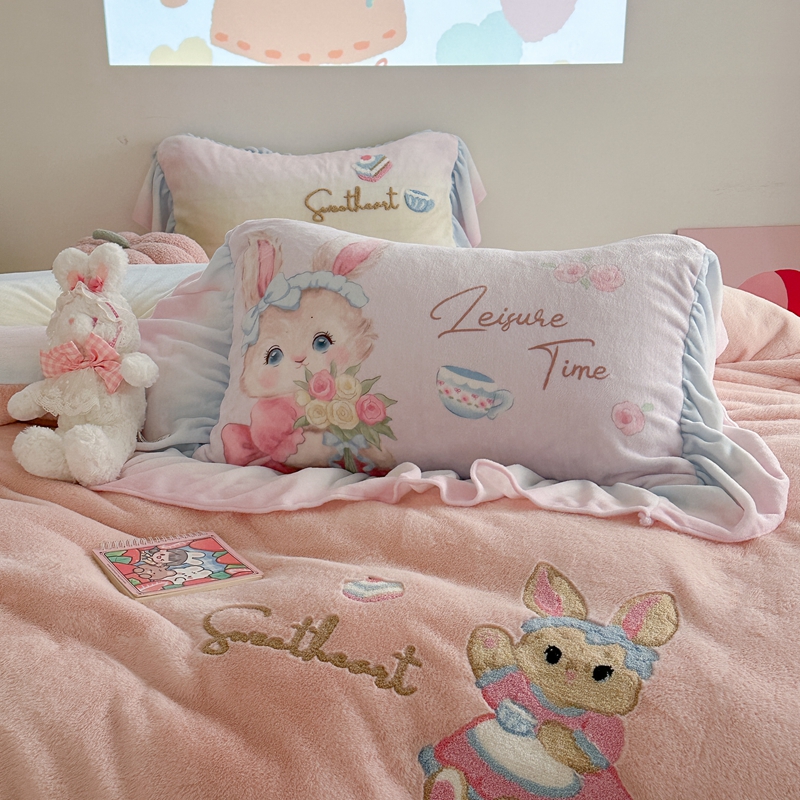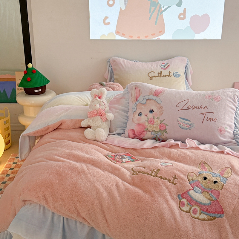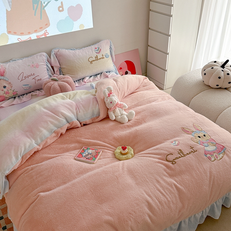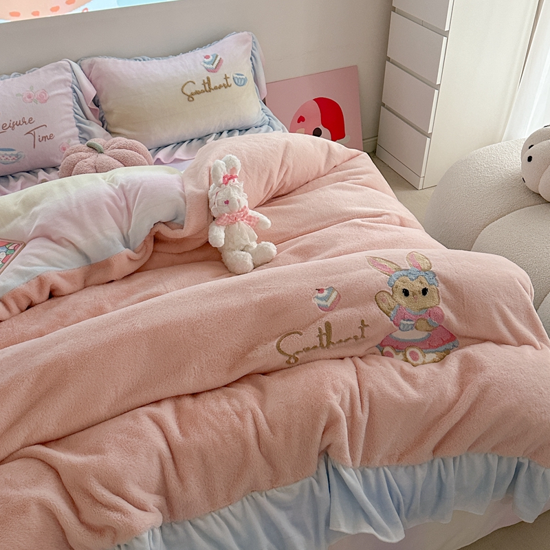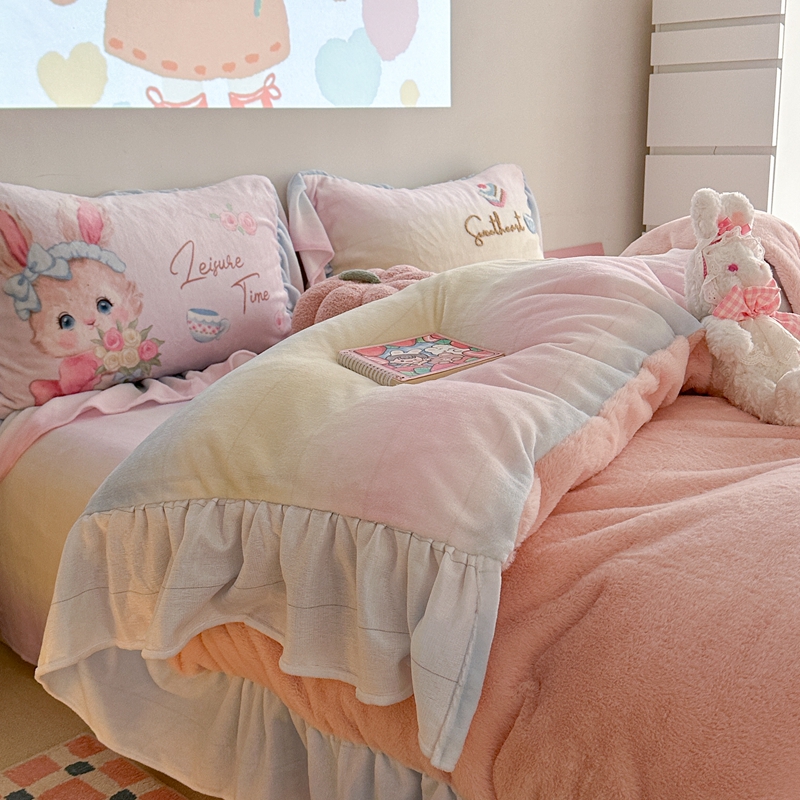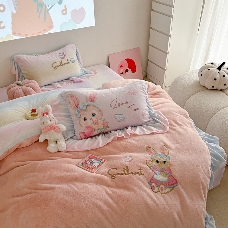 柚子 2024新款仿羊绒萝莉风花边款四件套 萝莉兔
