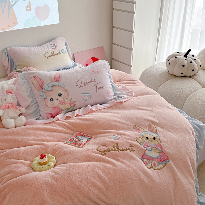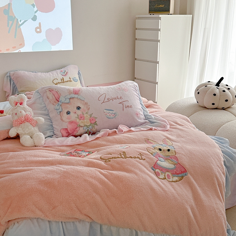 商品名称:柚子 2024新款仿羊绒萝莉风花边款四件套 萝莉兔