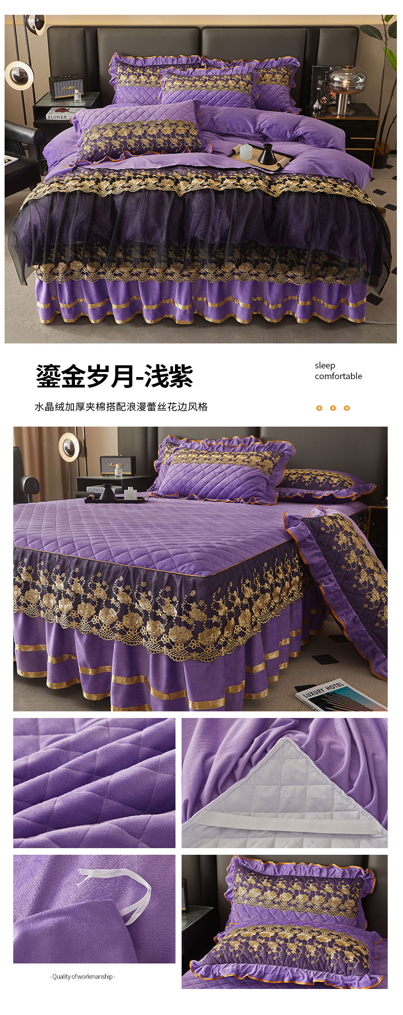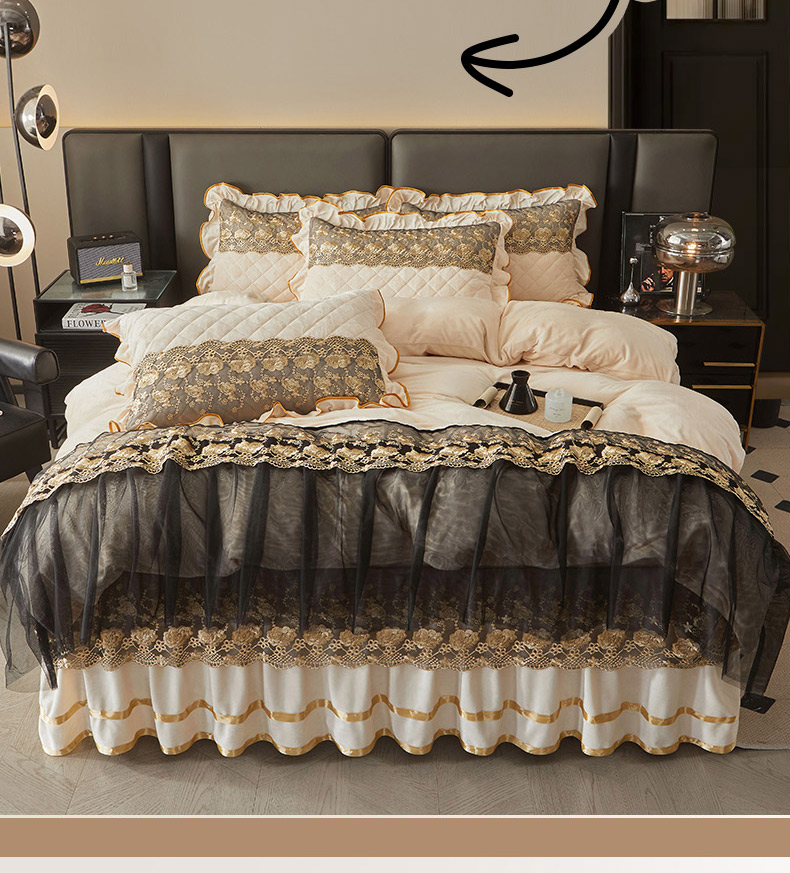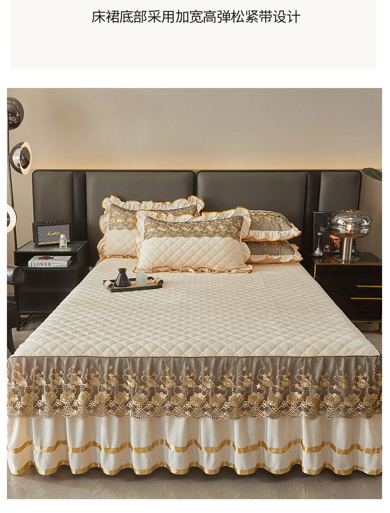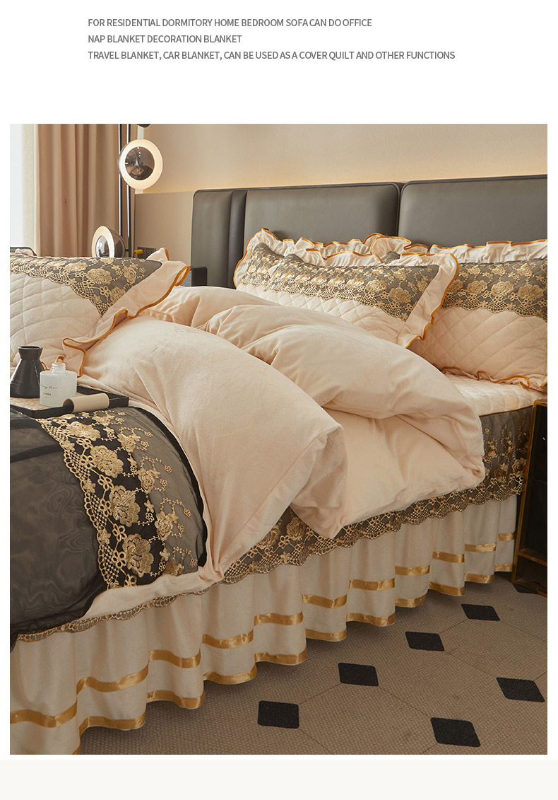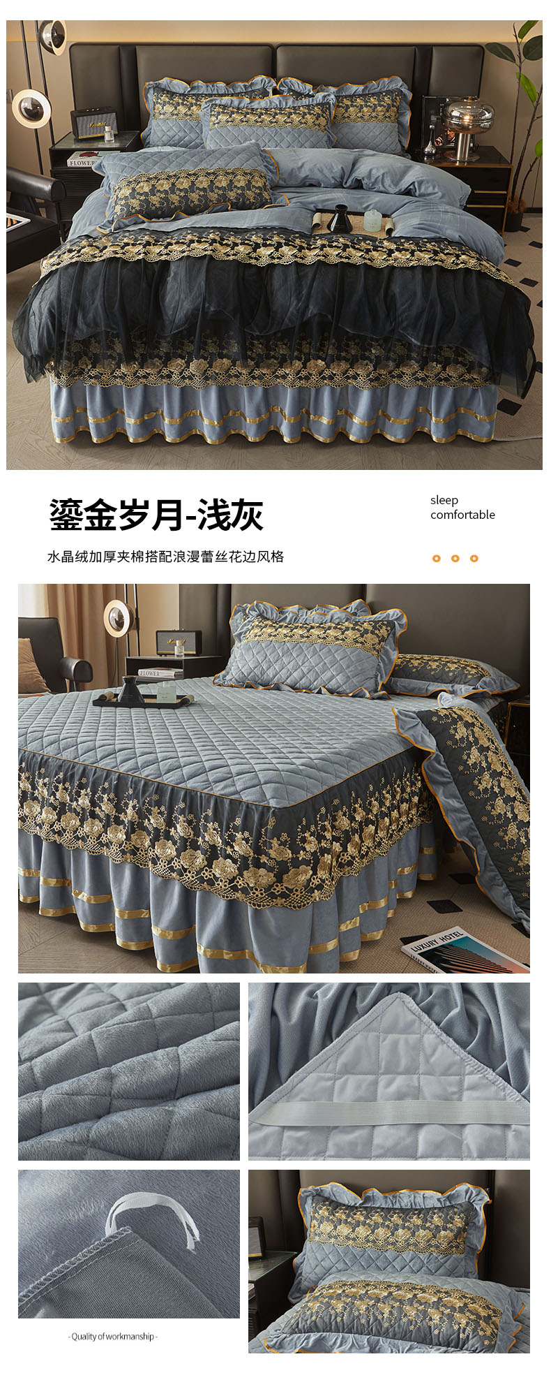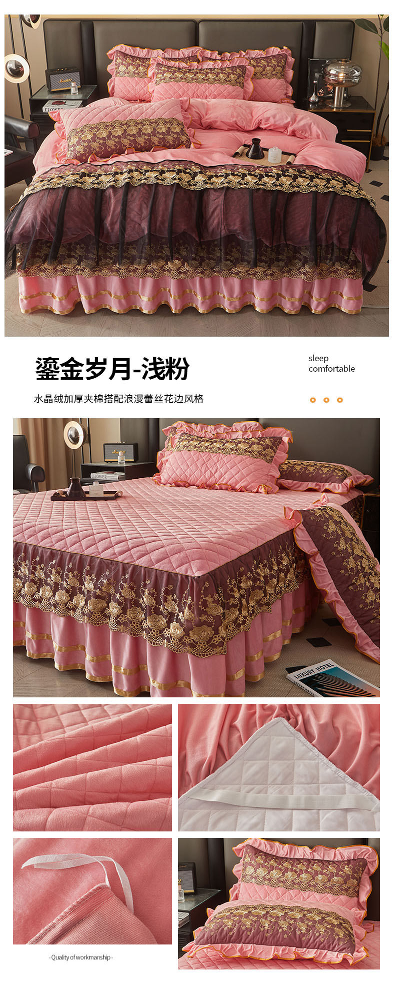 (总)恋尚 2024新款水晶绒保暖夹棉蕾丝花边床裙四件套--鎏金岁月