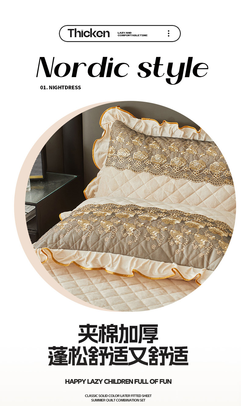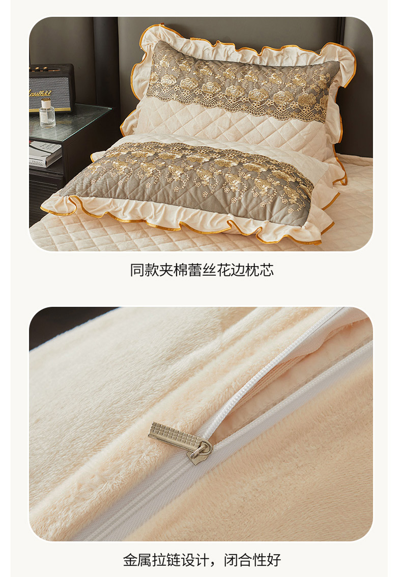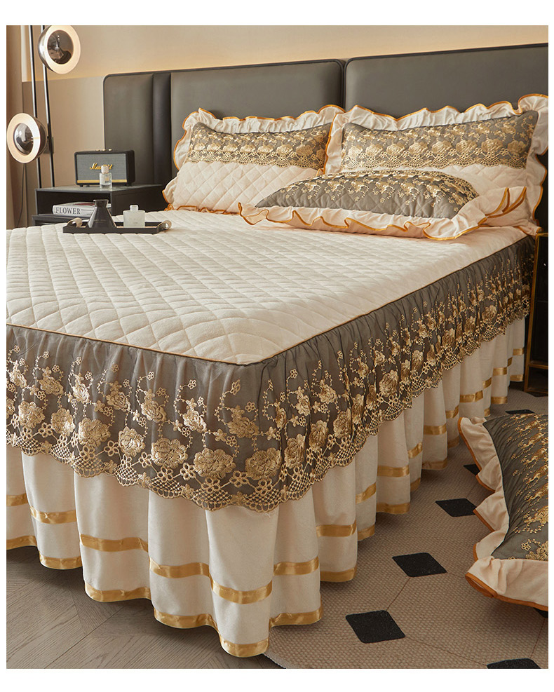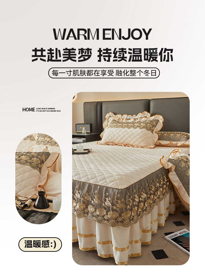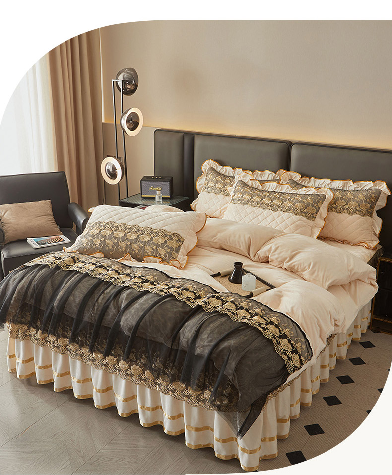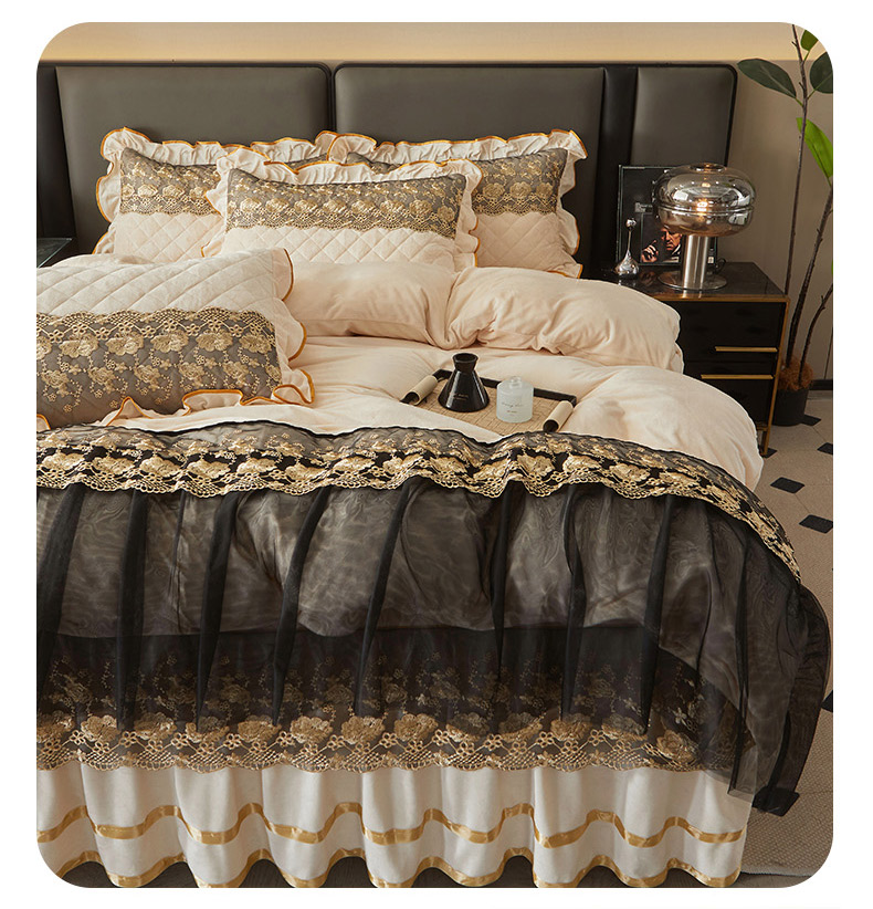 (总)恋尚 2024新款水晶绒保暖夹棉蕾丝花边床裙四件套--鎏金岁月