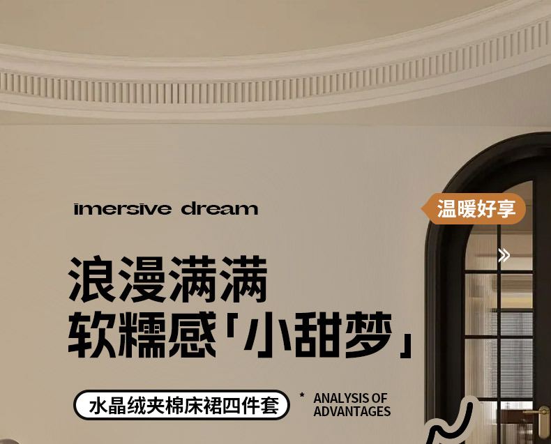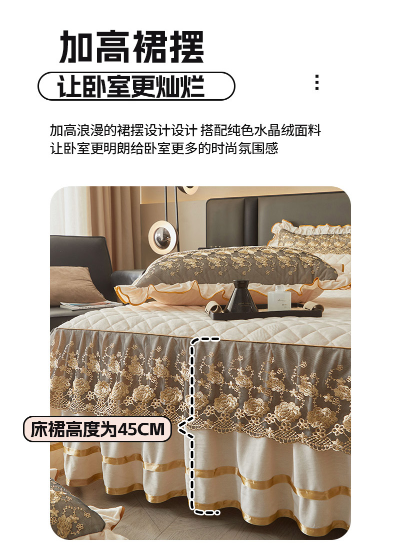 商品名称:(总)恋尚 2024新款水晶绒保暖夹棉蕾丝花边床裙四件套--鎏金岁月