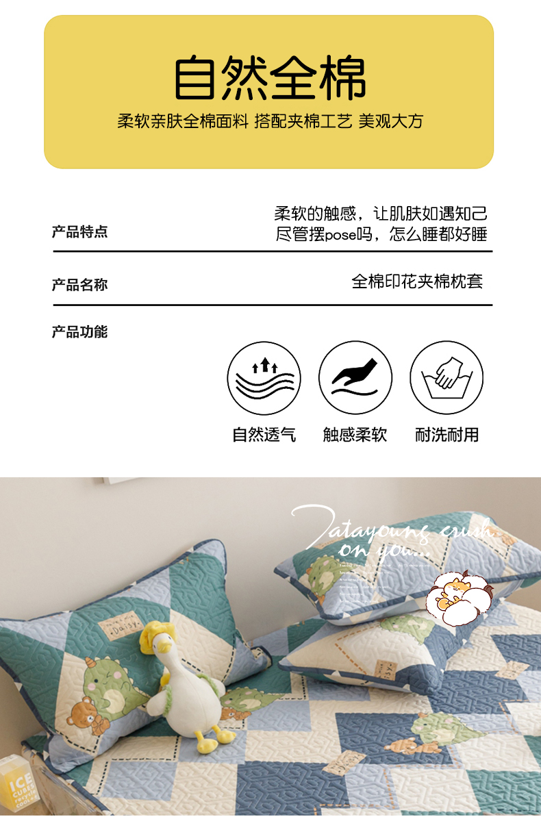 商品名称:2024新款全棉夹棉枕套-印花类 淘淘龙