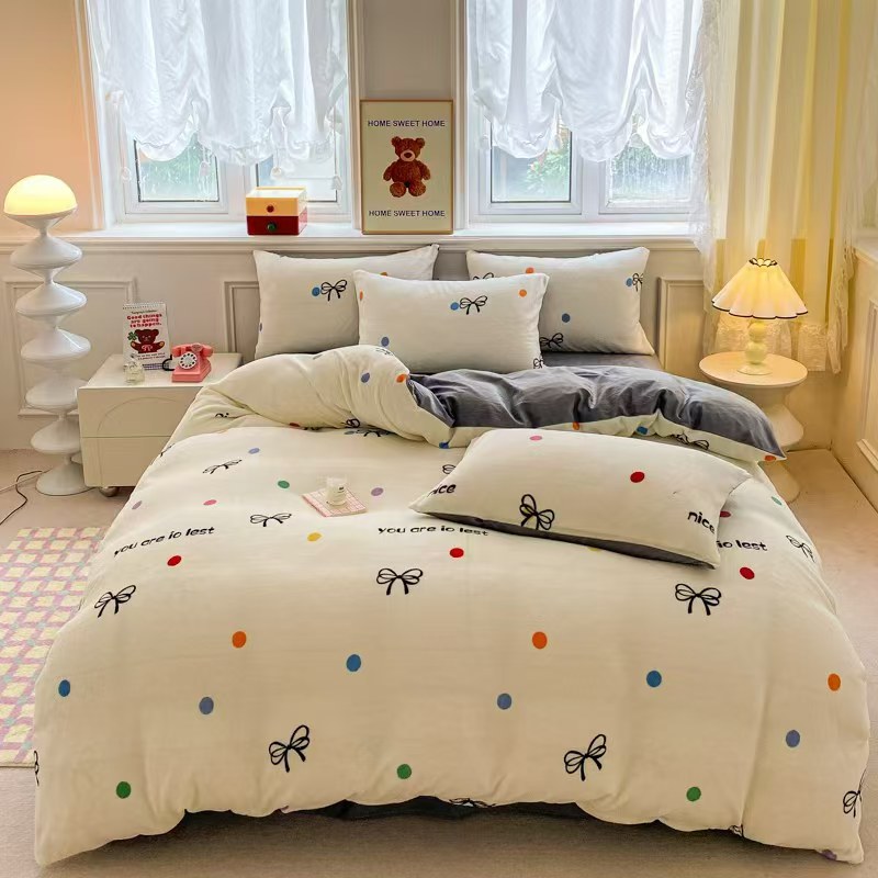 斯卡诺2025新款直播轻奢爆款小清新牛奶宝宝绒四件套 波点蝴蝶结