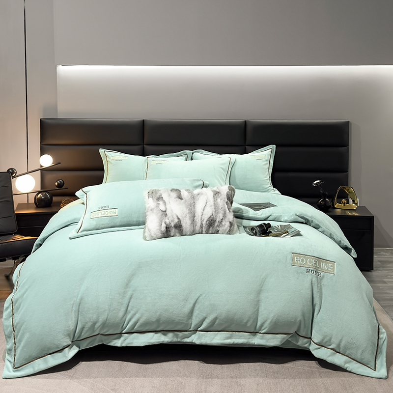 商品名称:2024新款轻奢小香风刺绣全消光A类高克重牛奶绒四件套-赛琳 水绿