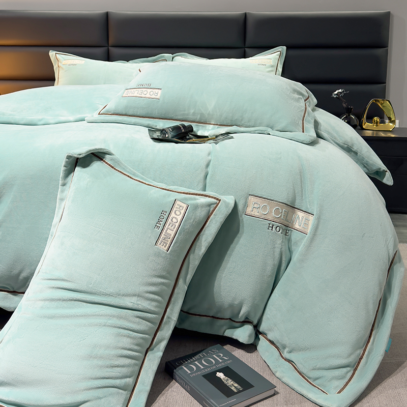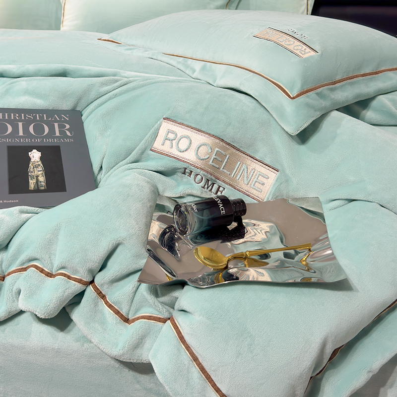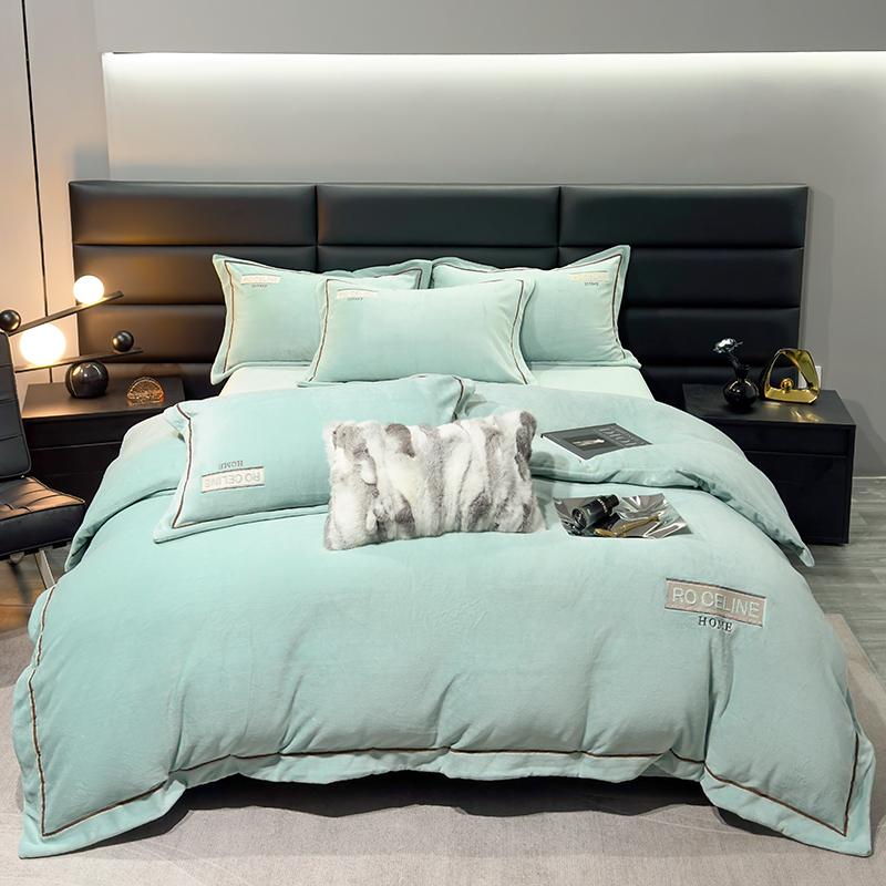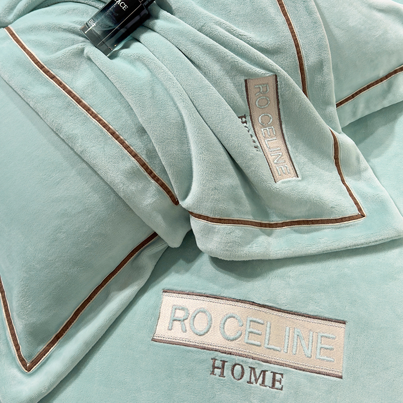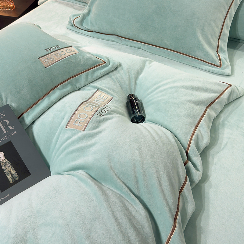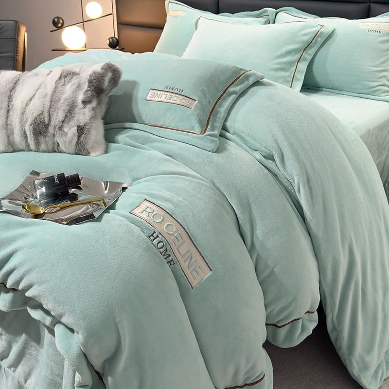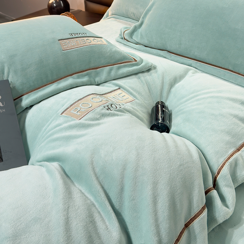 2024新款轻奢小香风刺绣全消光A类高克重牛奶绒四件套-赛琳 水绿