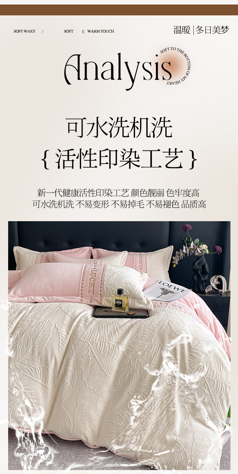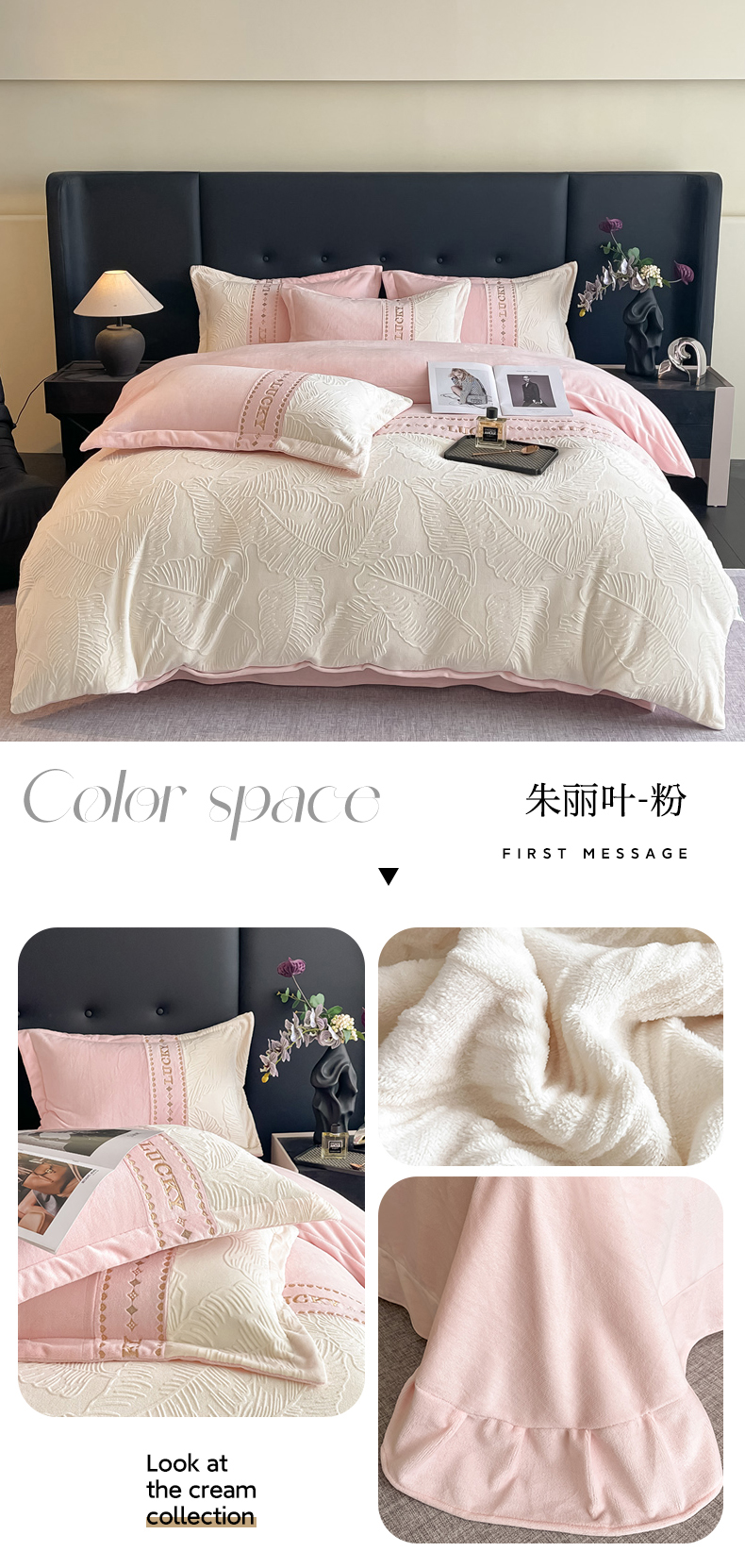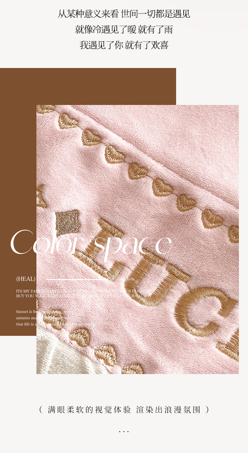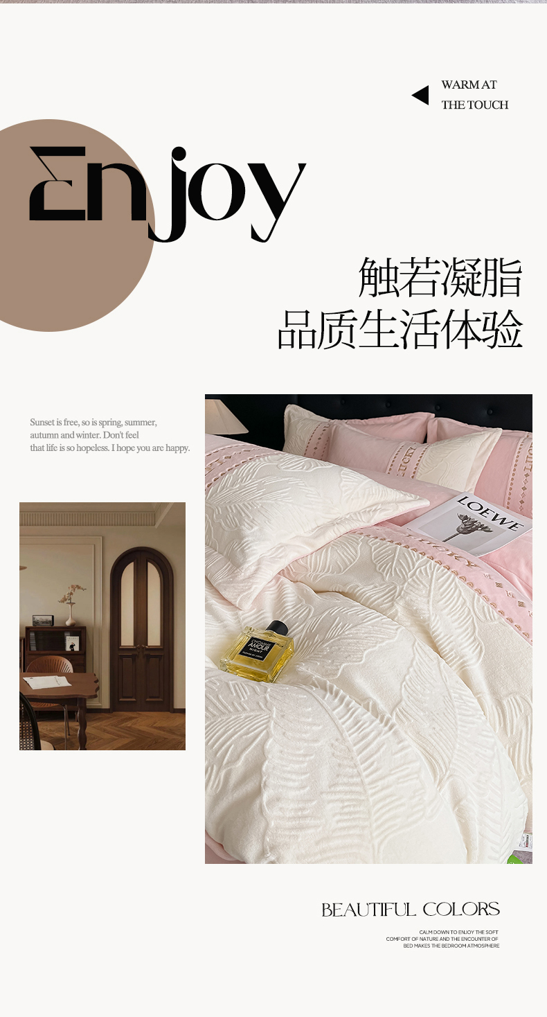 总金窝窝家纺2024重工刺绣280克A类婴儿牛奶绒刺绣四件套系列-美好生活,美好生活—粉
